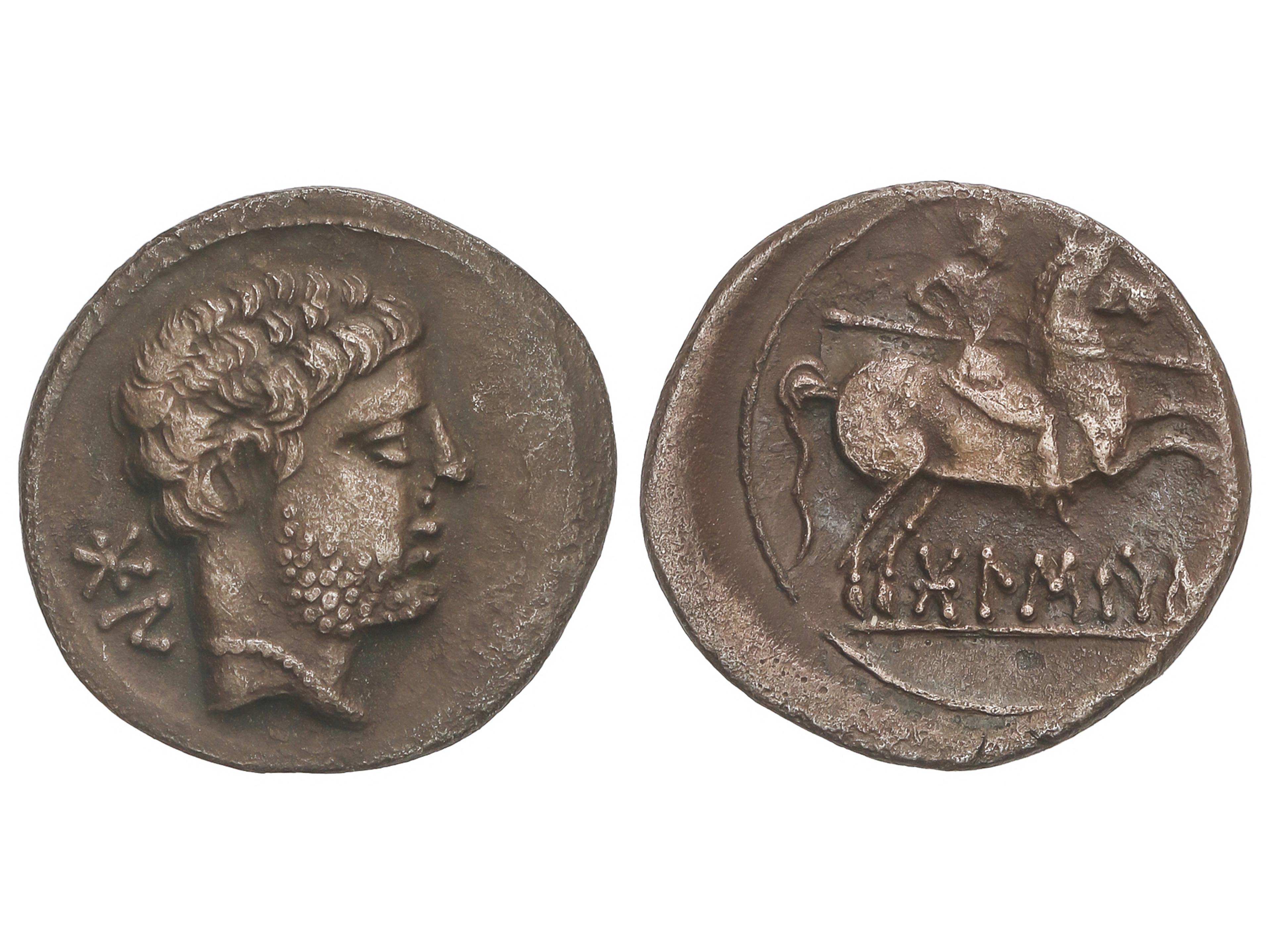 2017 imageDenario. 180-20 a.C. BOLSCAN (HUESCA). Anv.: Cabeza barbada a derecha, detrás letras ibéricas BoN. Rev.: Jinete con lanza a derecha, debajo leyenda ibérica. 3,54 grs. AR. Tipo Palenzuela. (Leves oxidaciones). Pátina. AB-1912; ACIP-1423. MBC+. (Image1)