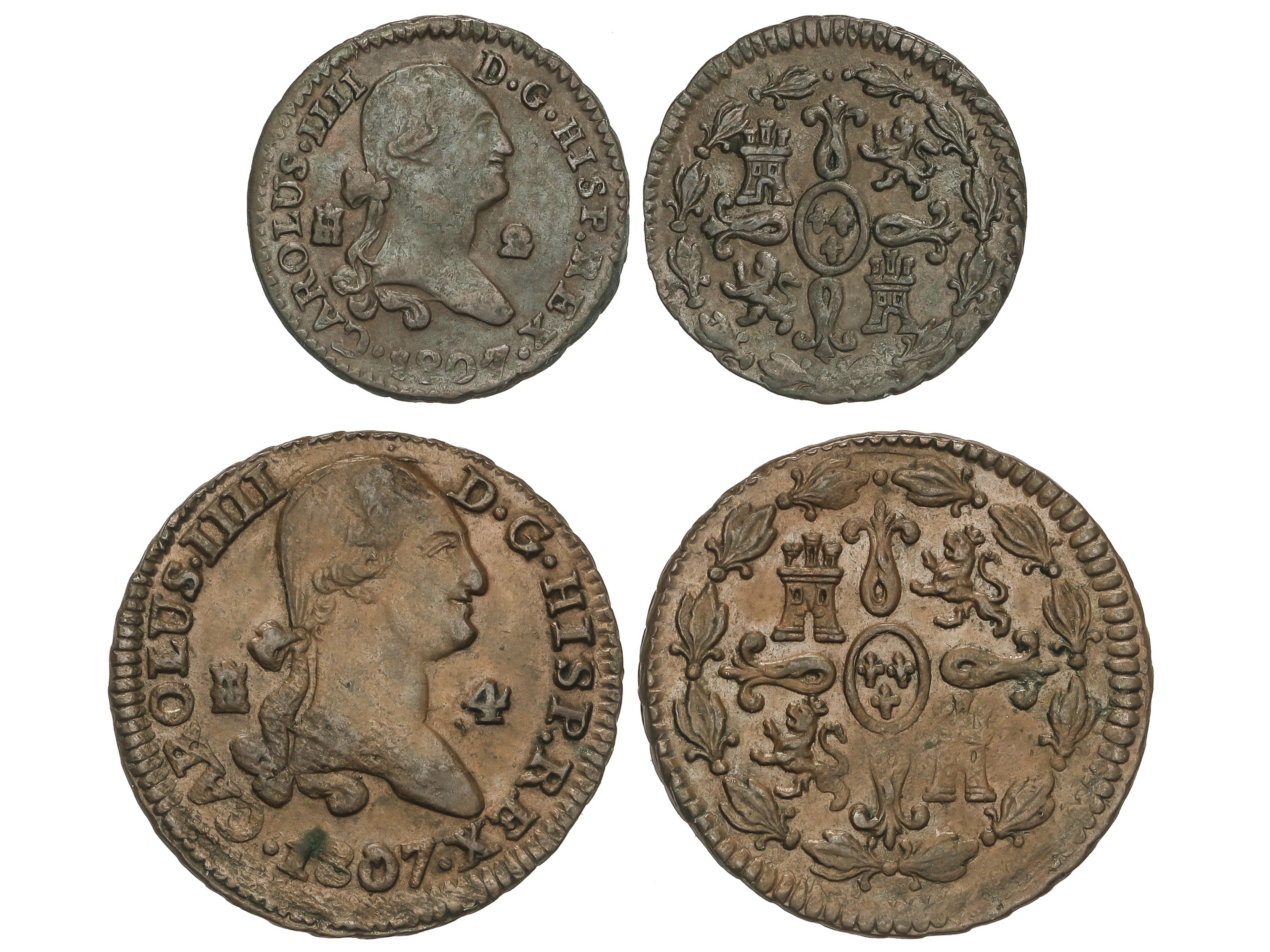 2173 imageLote 2 monedas 2 y 4 Maravedís. 1807. SEGOVIA. 2,45 y 5,32 grs. AC-40, 61. MBC a MBC+. (Image1)
