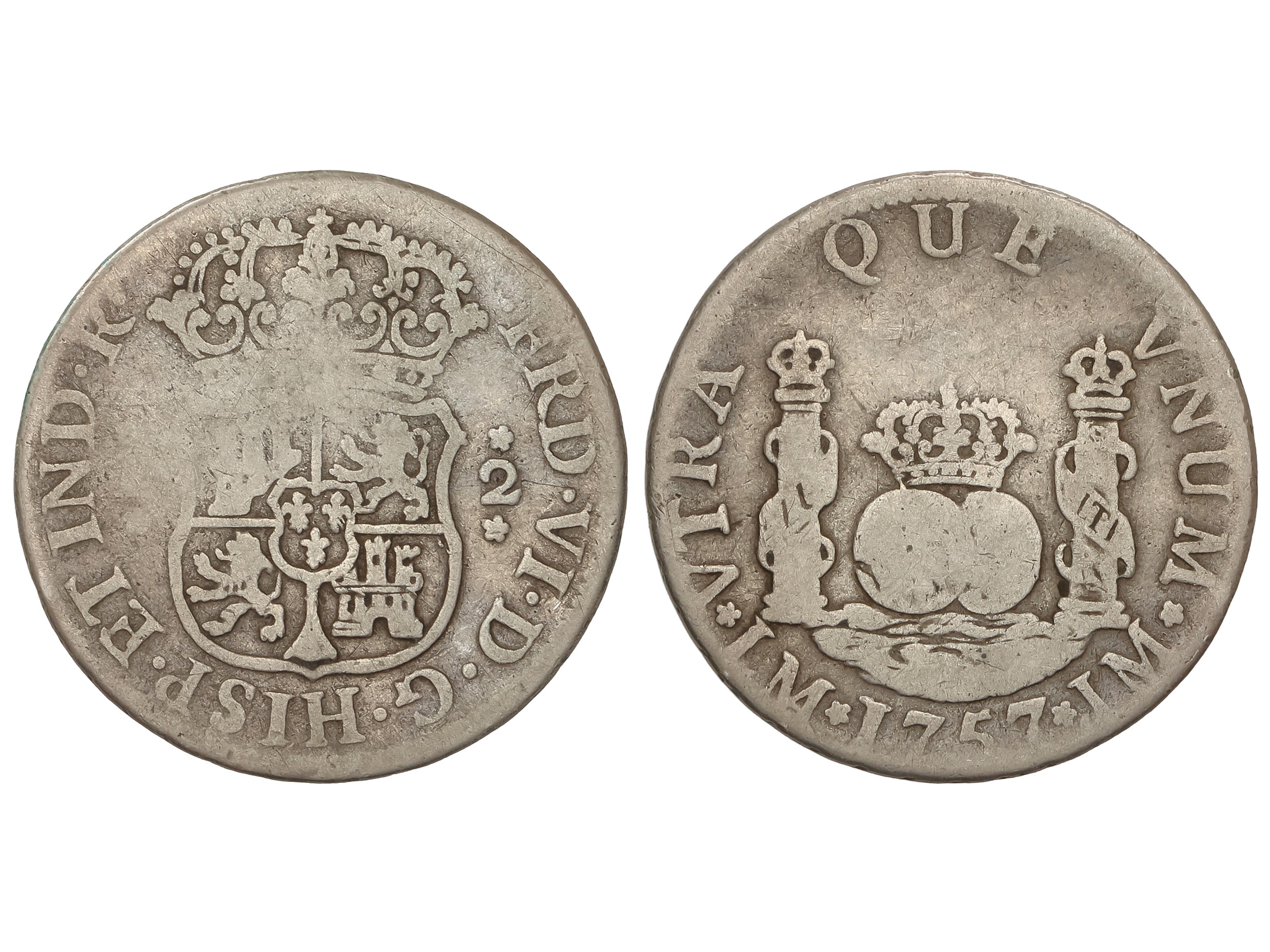 2167 image2 Reales. 1757. LIMA. J.M. 6,16 grs. Columnario. AC-275. MBC-. (Image1)