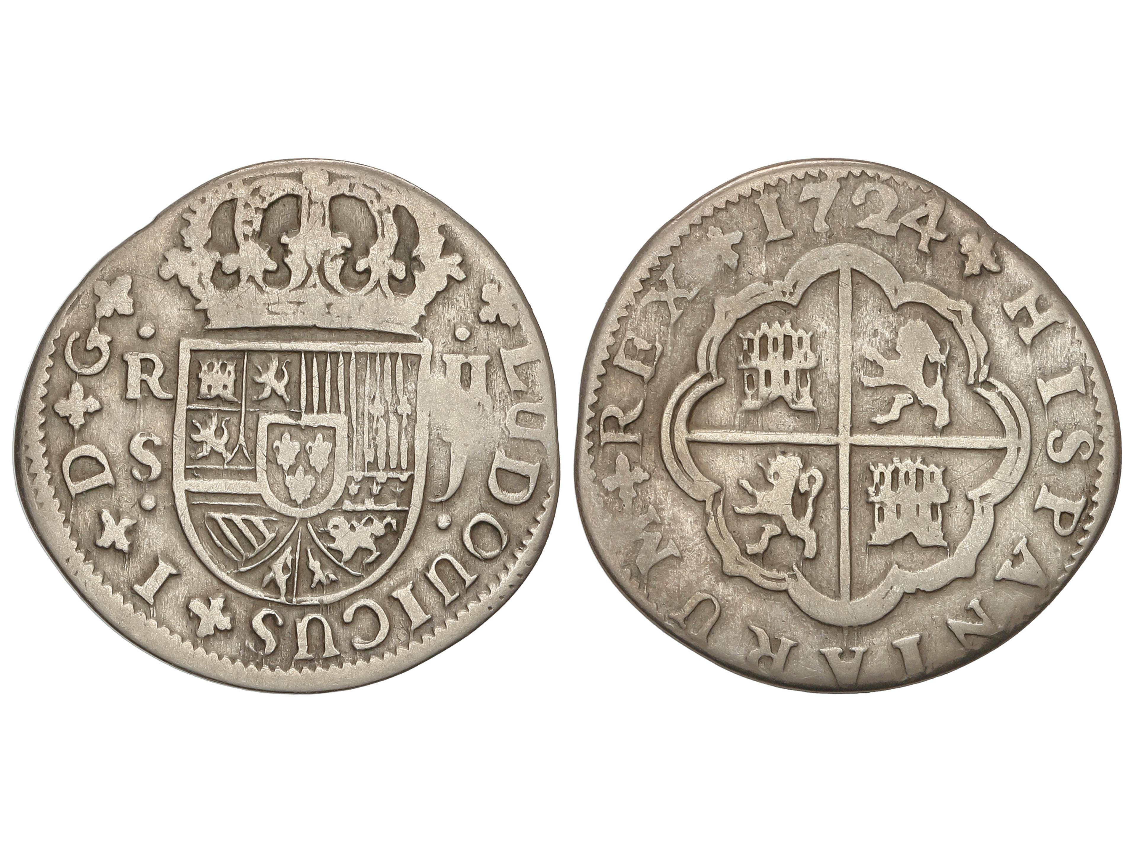 2164 image2 Reales. 1724. SEVILLA. J. 4,32 grs. Cospel algo irregular. AC-29. MBC-. (Image1)