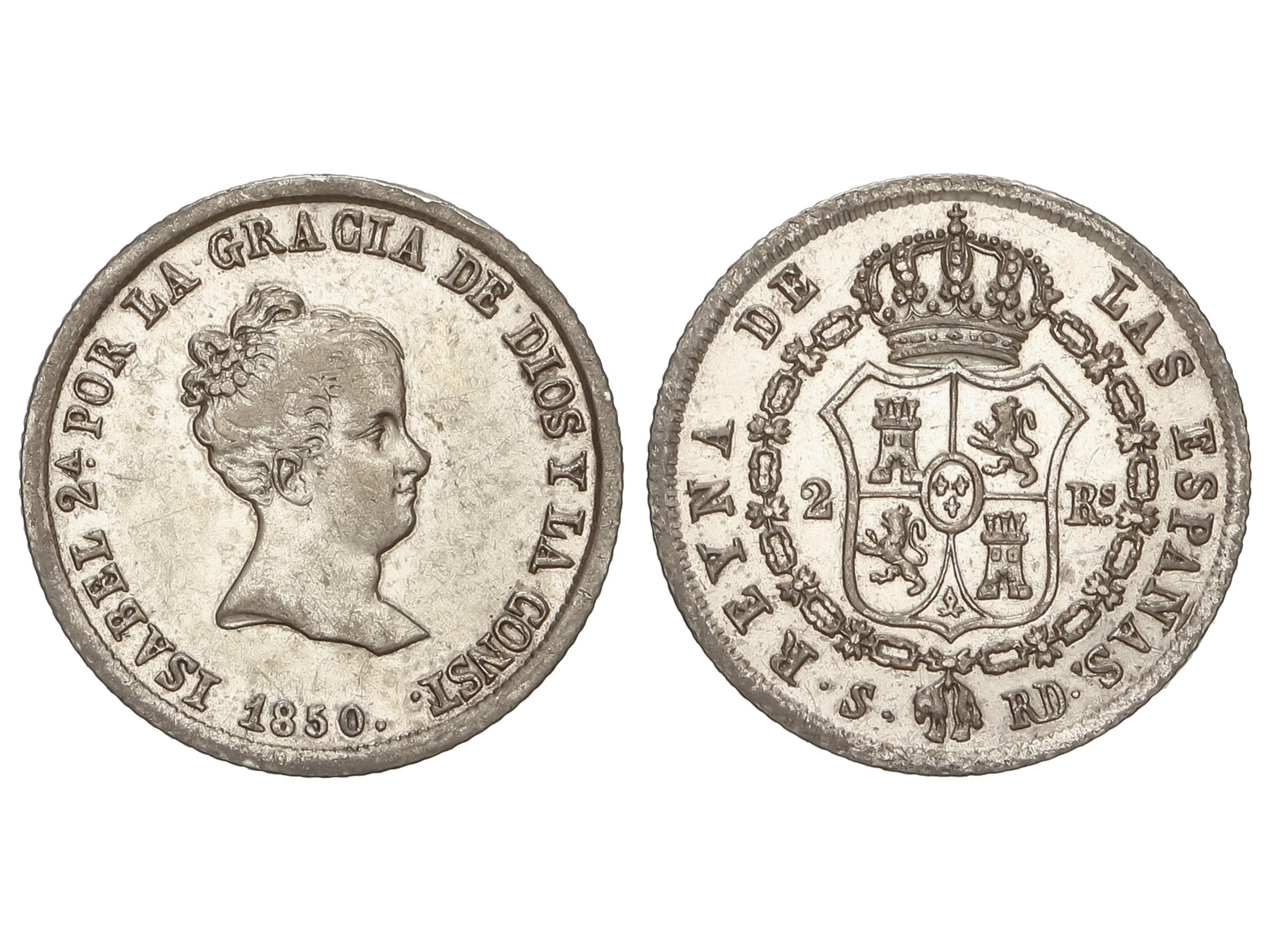 2 Reales. 1850. SEVILLA. R.D. 2,55 grs. Segundo busto. AC-387. MBC/MBC+. (Image1)