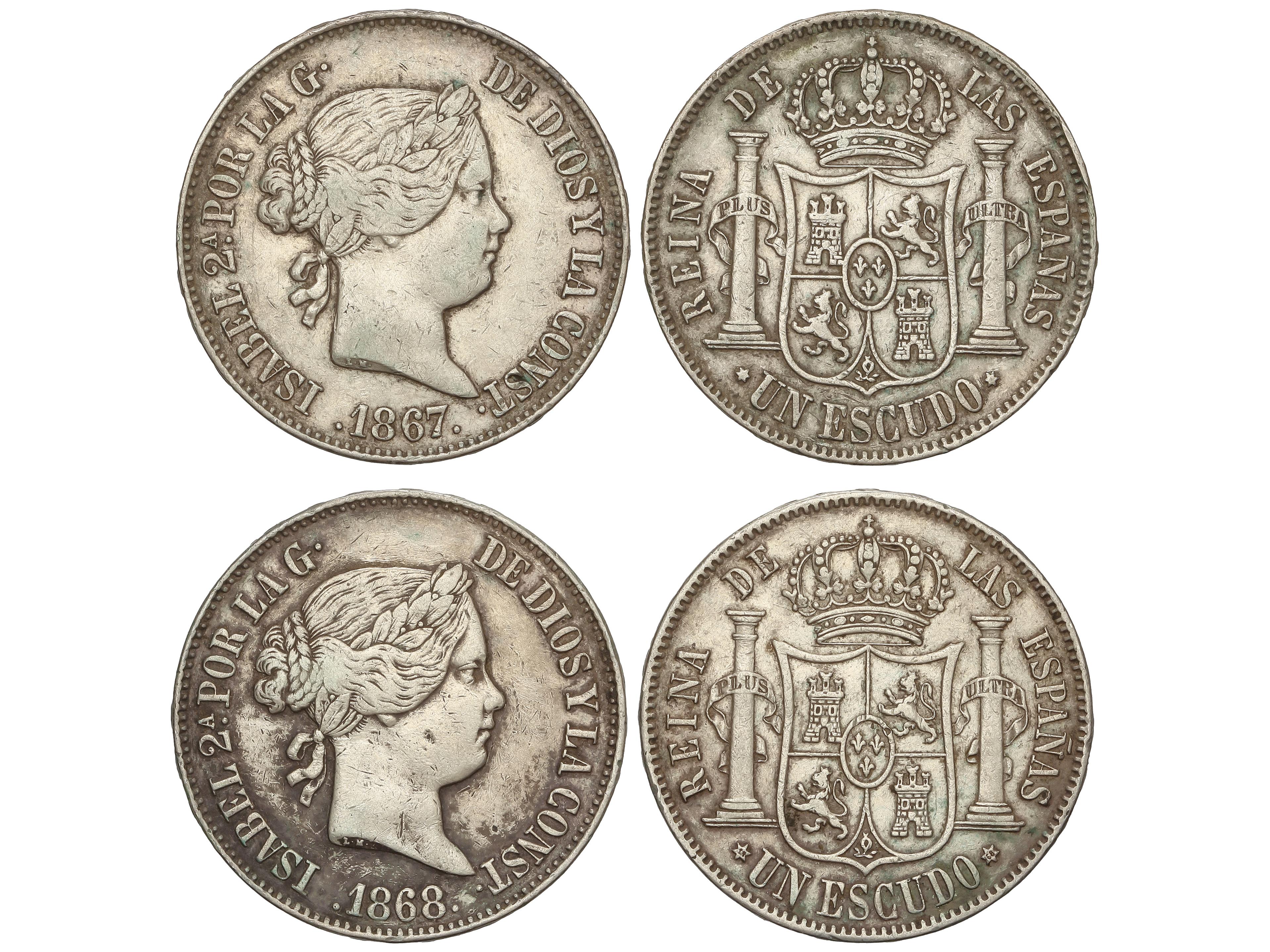 Lote 2 monedas 1 Escudo. 1867 y 1868. MADRID. (Golpecitos). AC-565, 567. MBC. (Image1)