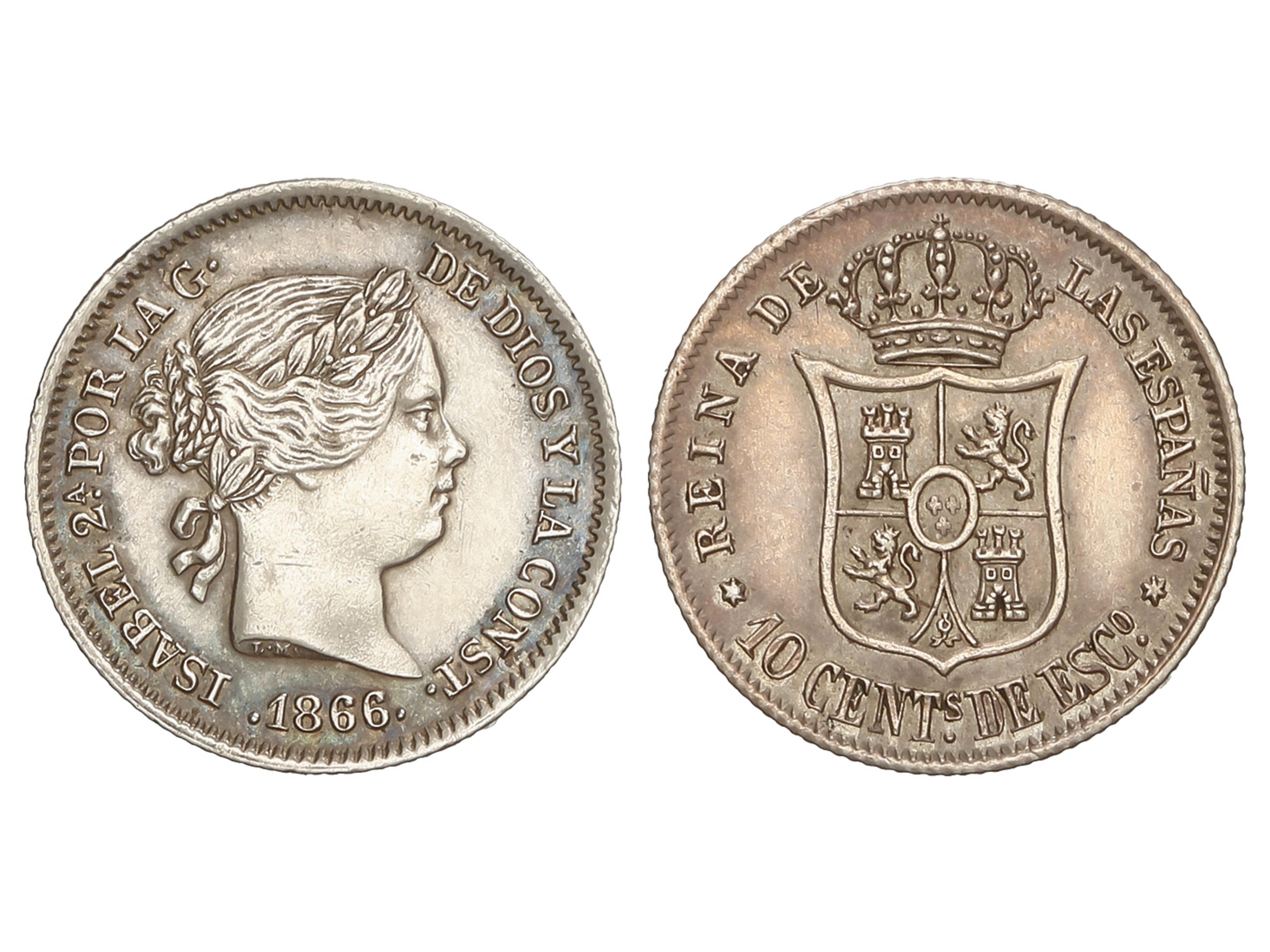 10 Céntimos de Escudo. 1866. MADRID. 1,33 grs. (Algo limpiada). AC-339. EBC. (Image1)