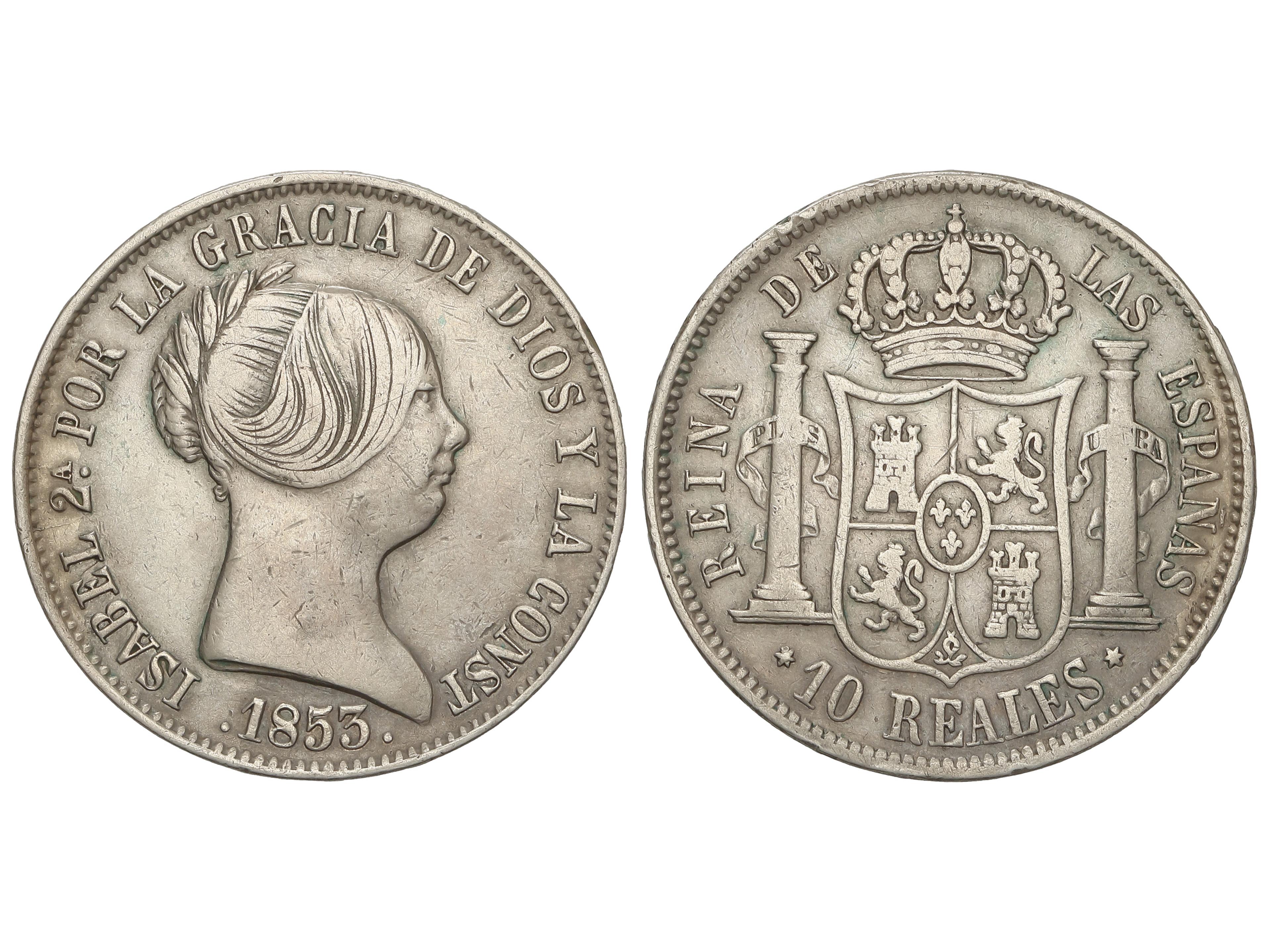 10 Reales. 1853. MADRID. 12,81 grs. (Pequeños golpecitos y algo limpiada). AC-528. MBC. (Image1)