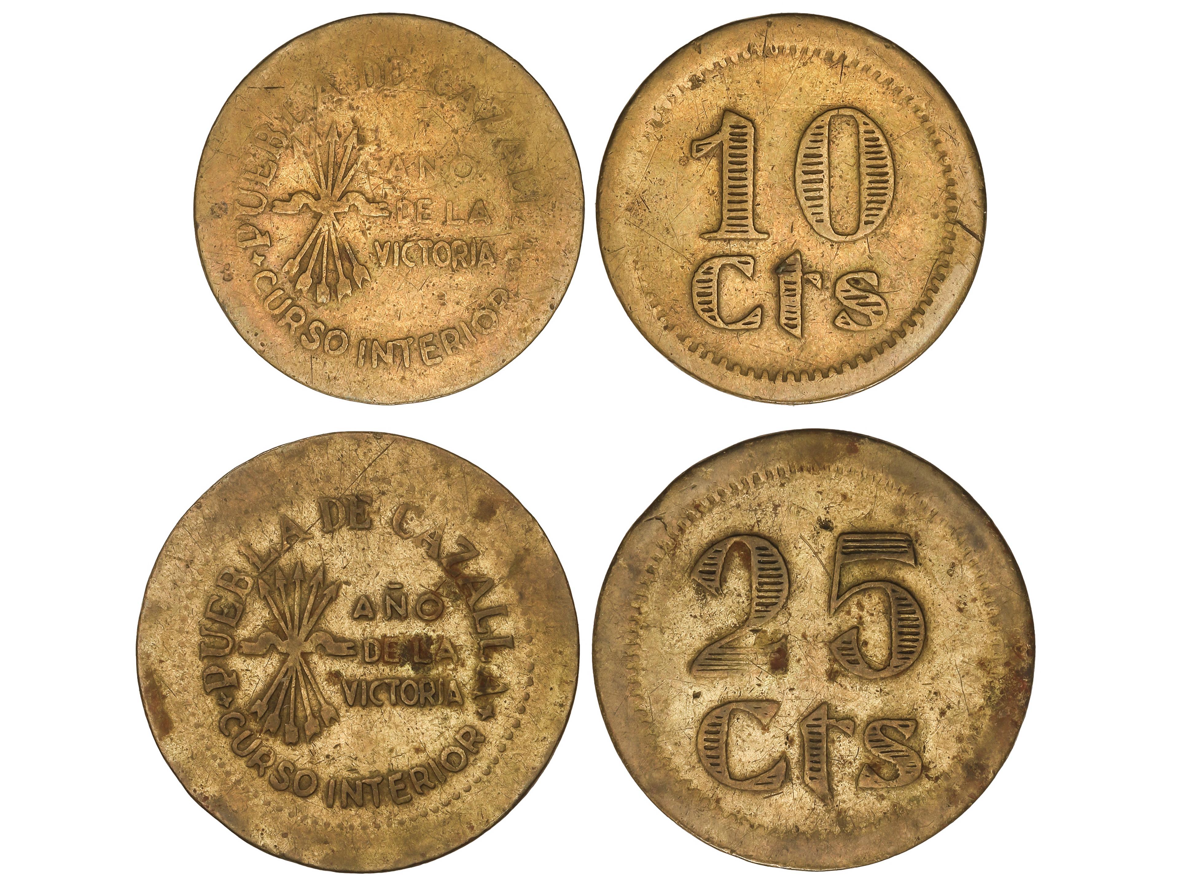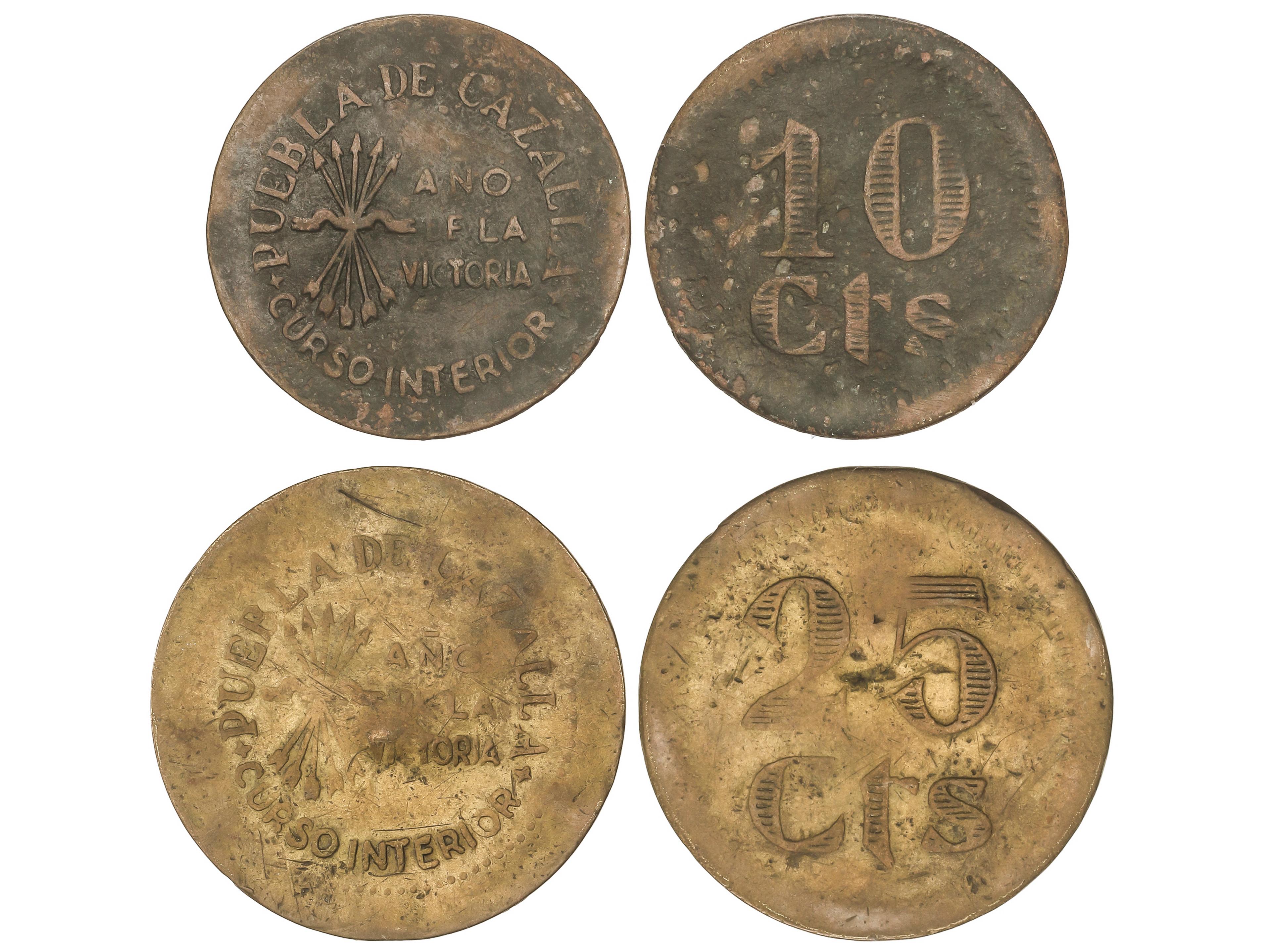 2279 imageSerie 2 monedas 10 y 25 Céntimos. PUEBLA DE CAZALLA. Latón. AC-47, 49; HG-236/7. MBC-. (Image1)