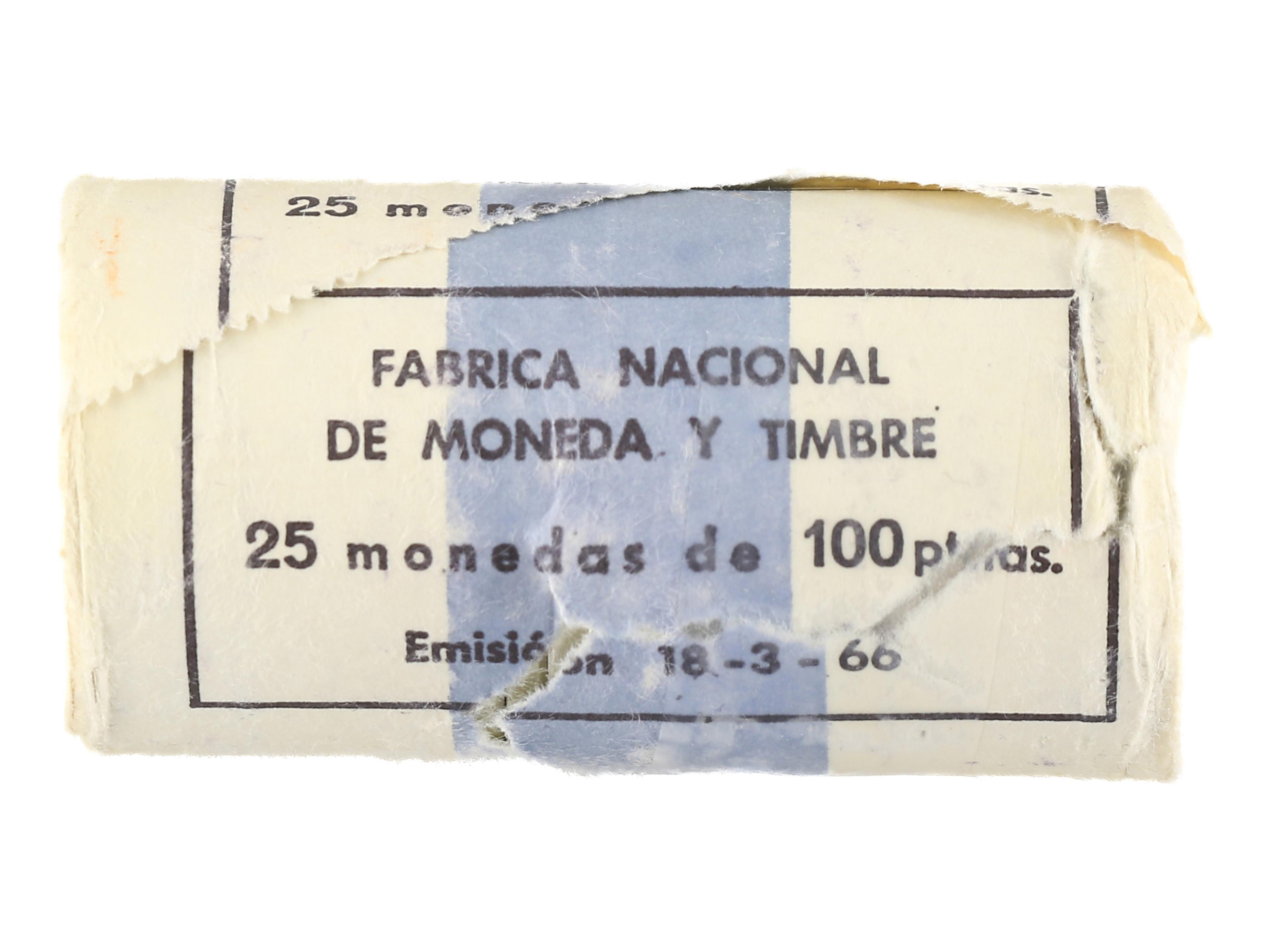 2287 imageLote 25 monedas 100 Pesetas. 1966 (*19-68). En cartucho original F.N.M.T. (Abierto, roto). SC. (Image1)