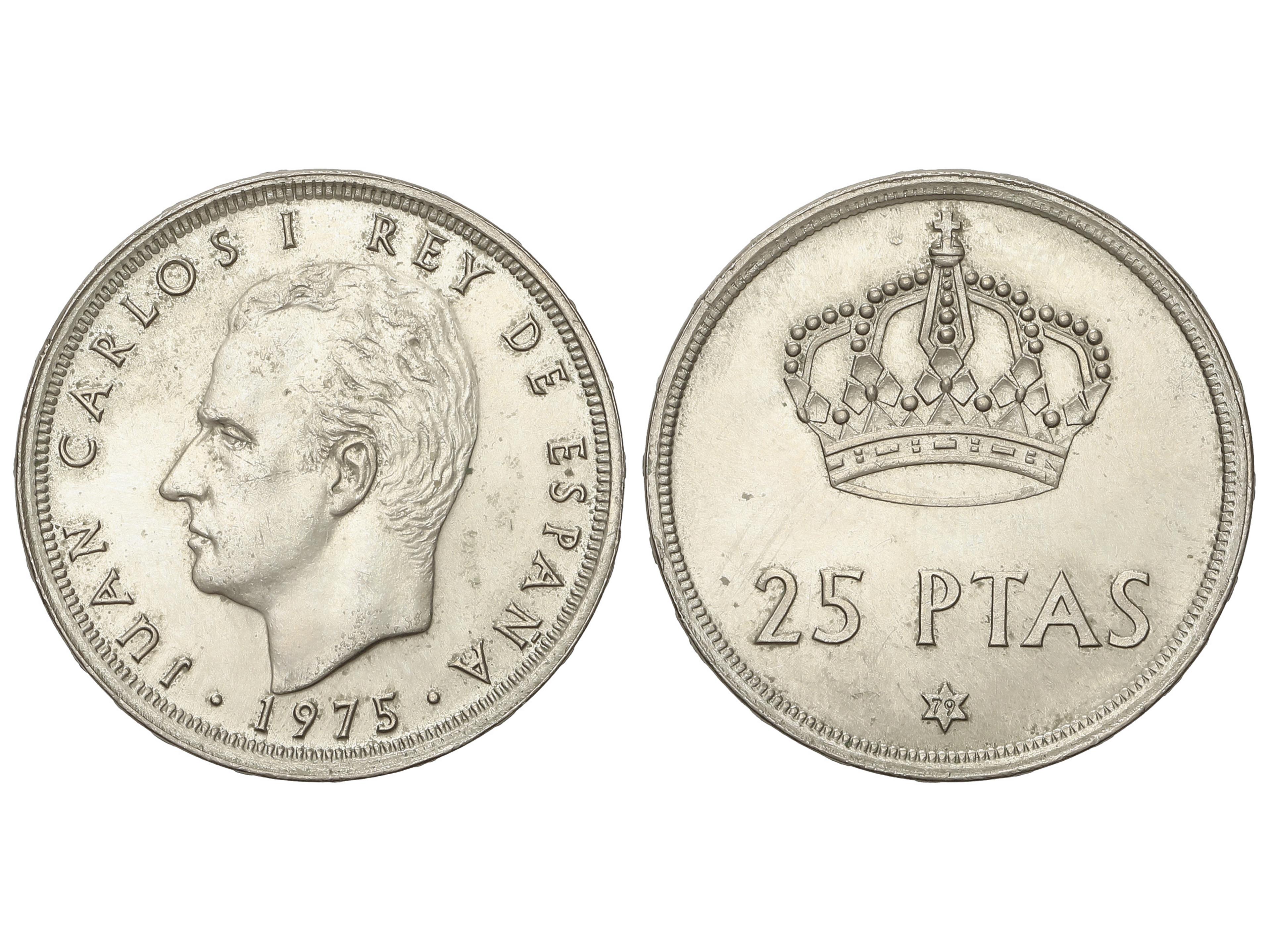 2289 image25 Pesetas. 1975 (*79). ERROR: Reverso girado 190º aproximadamente. JBM-75.4.1. SC. (Image1)