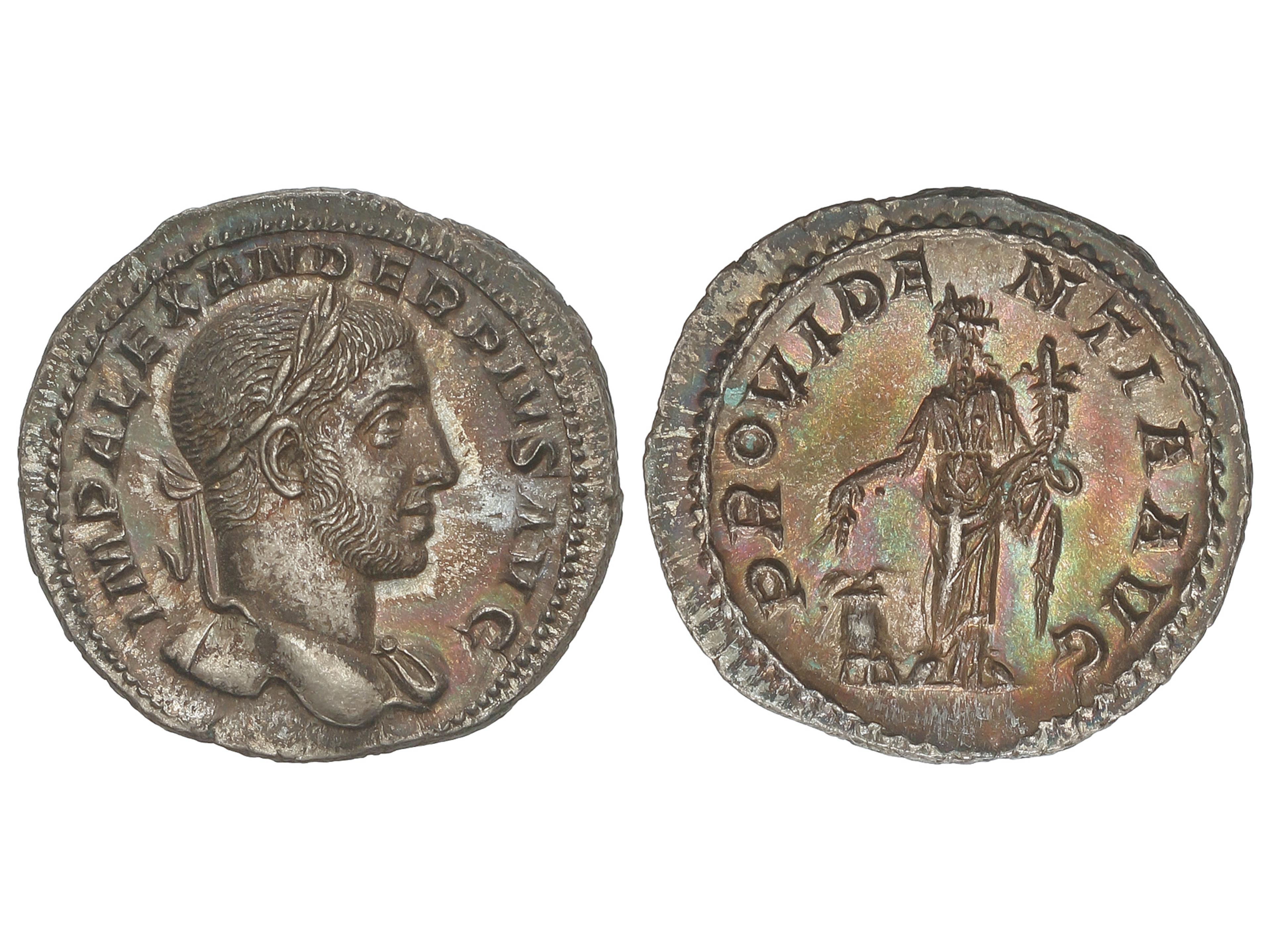 124 imageDenario. 231-235 d.C. ALEJANDRO SEVERO. Anv.: IMP. ALEXANDER PIVS AVG. Busto laureado a derecha. Rev.: PROVIDENTIA AVG. Providencia en pie a izquierda. 3,10 grs. AR. Bella pátina irisada. BONITA PIEZA. C-501; RIC-205; BMC-875. EBC+. (Image1)