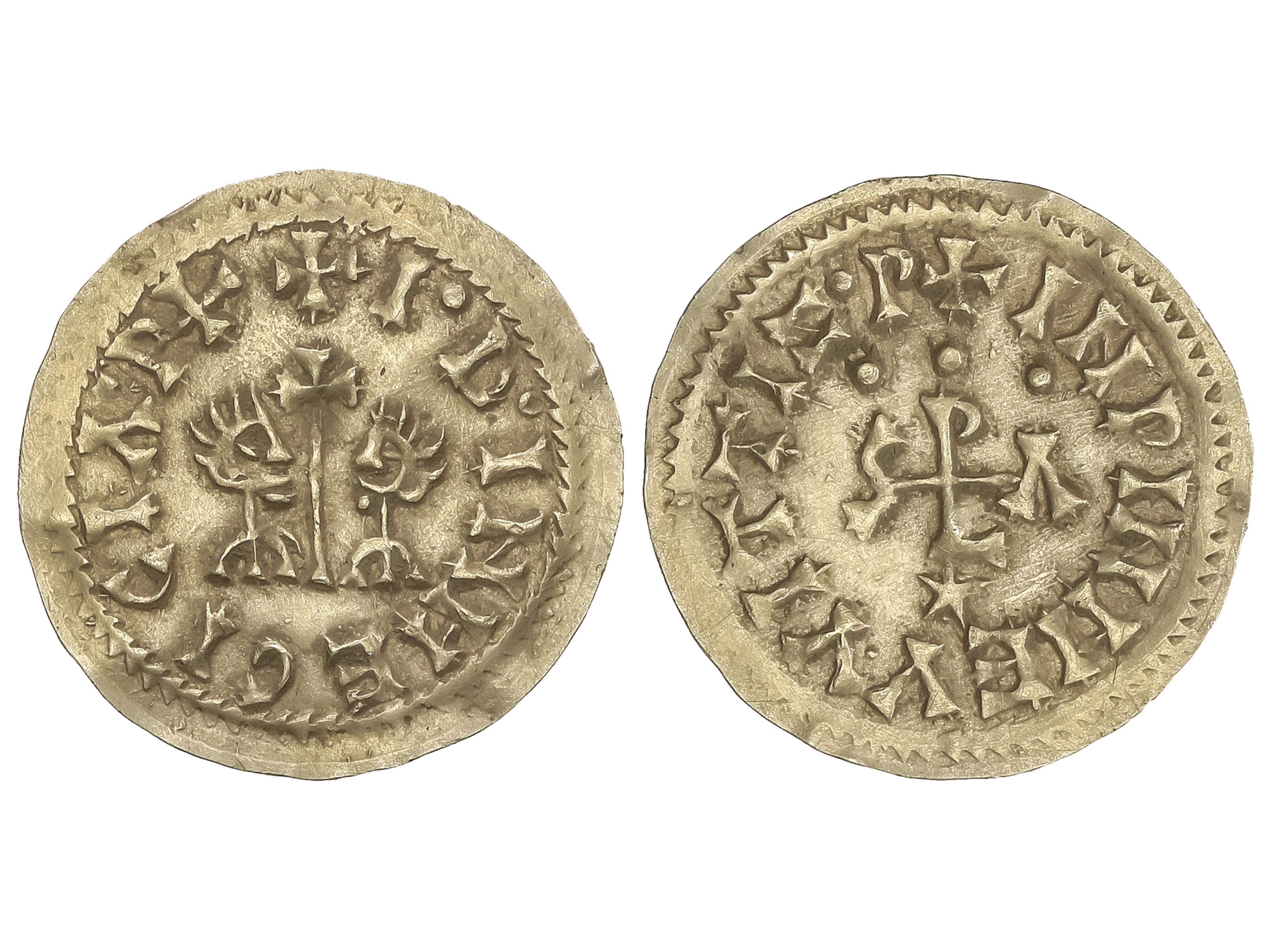 136 imageSemissis o 1/2 Dinar. 95-98 H. (713-717 d.C.). al-Walid I ibn ´ Abd al-Malik o Suleiman ibn ´ Abd al-Malik. Ceca incierta en norte de África. Anv.: S [[h7]]S NISVNS CV (NN) alrededor de SIMI[[h0]]IS (todas las S excepto la primera en la leyenda central retrógradas) ``non est Deus nisi unus cui non est alius similis´´. Rev.: (NN) [[a8]]S [[h7]]S NISV [[h7]]SCVI N S A (todas las S retrógradas) ``non est Deus nisi unus Deus cui non Socius Alius´´. Cruz transformada sobre tres escalones. 2,07 grs. AU. La característica más distintiva de estas monedas es la cruz cristiana modificada, generalmente situada en el anverso. Esta cruz suele estar dispuesta sobre tres escalones, elemento que probablemente posee un significado religioso, y tal vez también jerárquico o imperial. La modificación del diseño original de la cruz parece reflejar una fusión entre la iconografía cristiana bizantina y ciertas influencias árabes. Los califatos, aunque mayoritariamente islámicos, gobernaban amplios territorios donde persistían tradiciones cristianas, lo que favoreció la conservación —aunque transformada— de motivos bizantinos en las emisiones locales. La cruz de tres escalones deriva directamente de la cruz bizantina tradicional, frecuente en las monedas de los emperadores orientales. Con la expansión árabe y la absorción de los antiguos dominios bizantinos, los nuevos gobernantes adoptaron y reinterpretaron estos símbolos, introduciendo ligeras variaciones en su forma y proporción. Los escalones podrían aludir a una elevación espiritual o jerarquía divina, nociones que podían armonizar tanto con las concepciones cristianas como con las islámicas del poder y la autoridad religiosa. En el aspecto ponderal, el número de escalones bajo la barra central también adquiere relevancia: indica la denominación de la pieza y corresponde, respectivamente, a fracciones de dinar —semisses y tremisses—, reflejando un sistema metrológico heredado de la tradición bizantina. MUY RARA. Bernardi-21; Walker, Arab-Byzantine, 168; A-120.1. MBC+. (Image1)