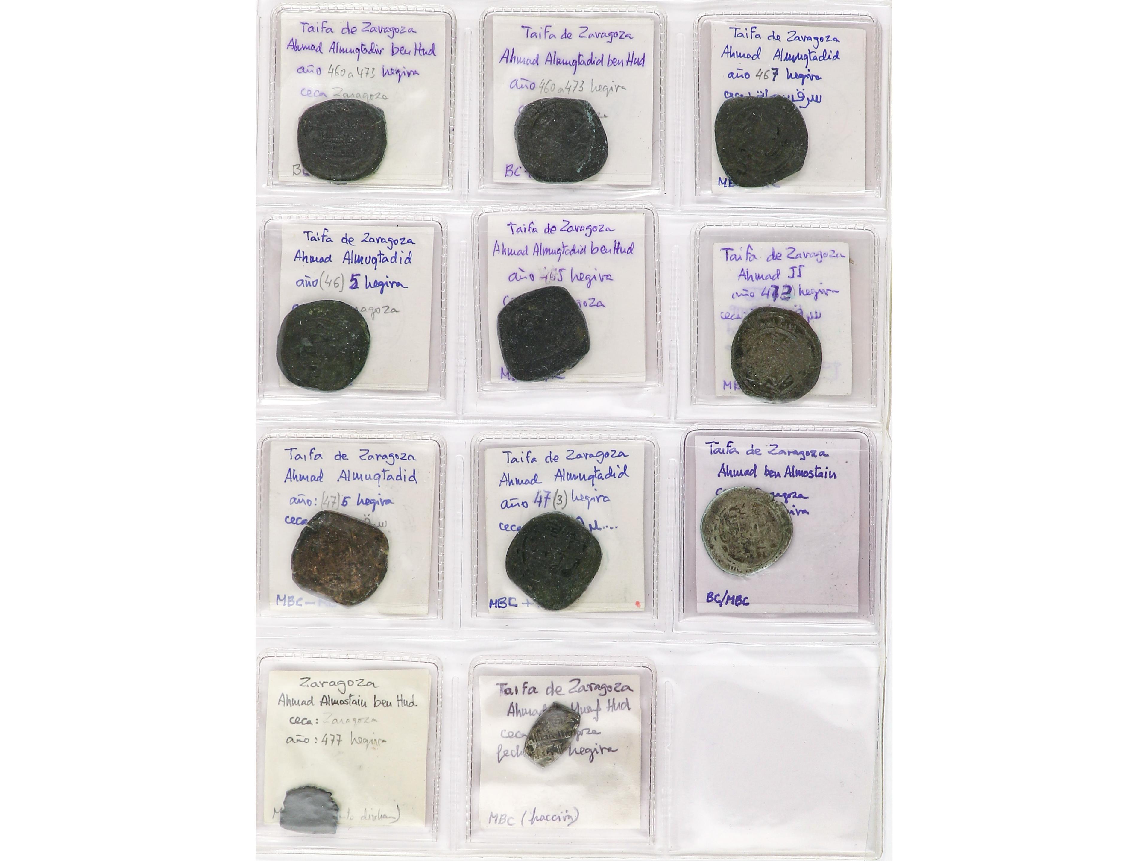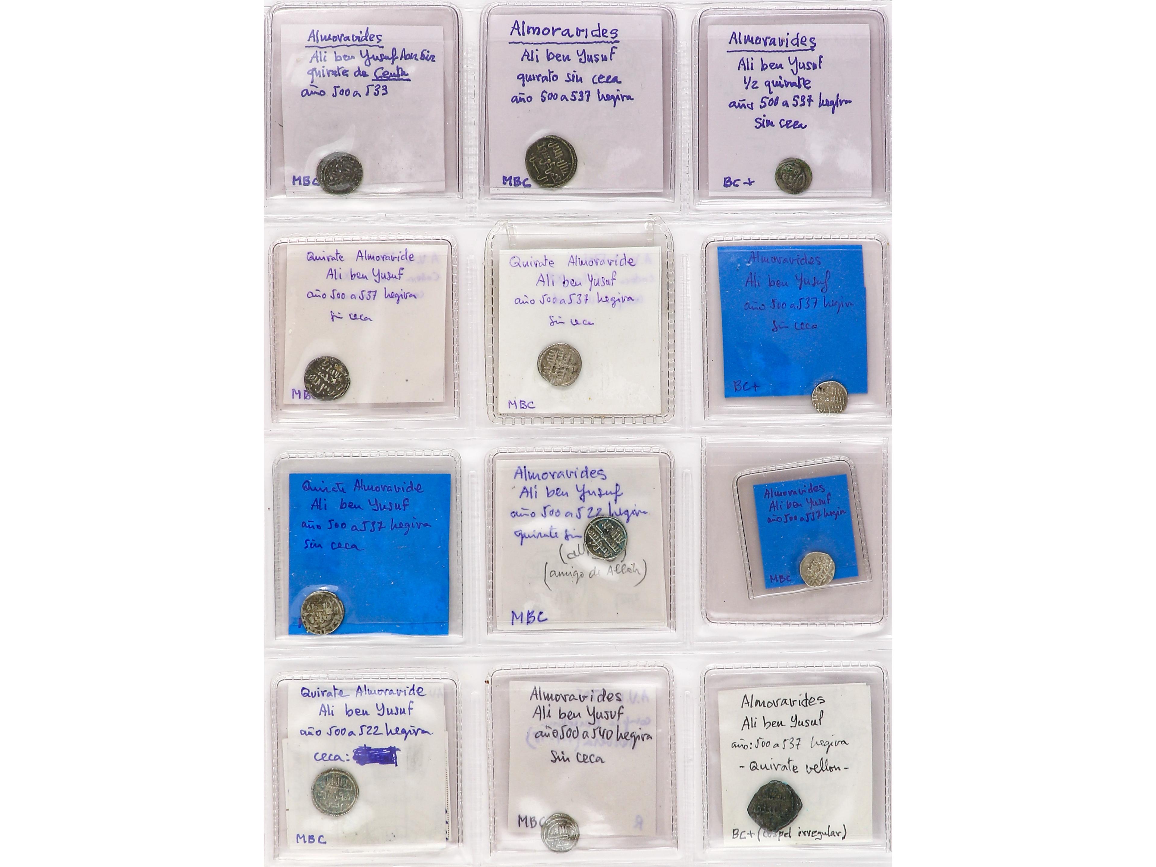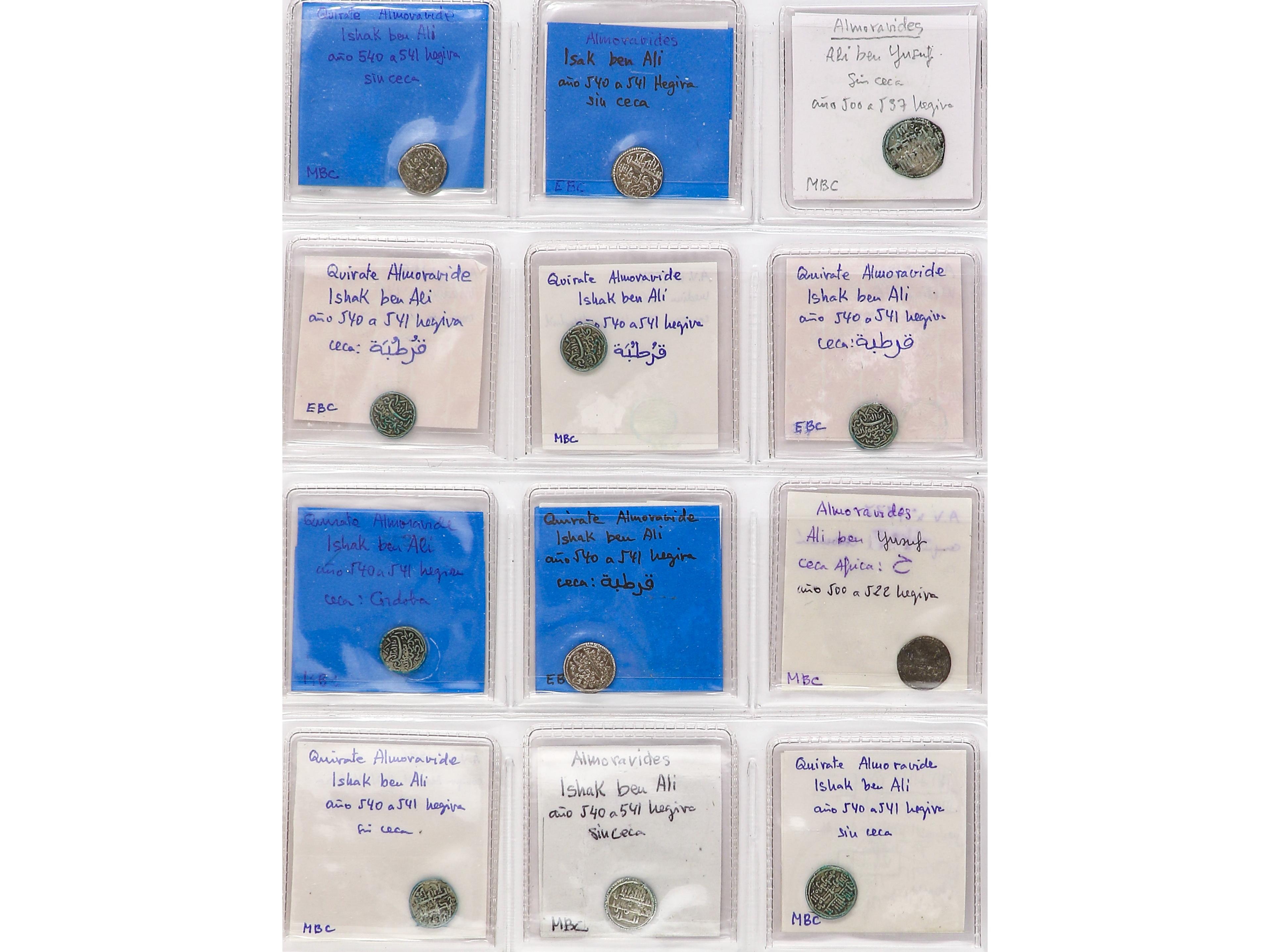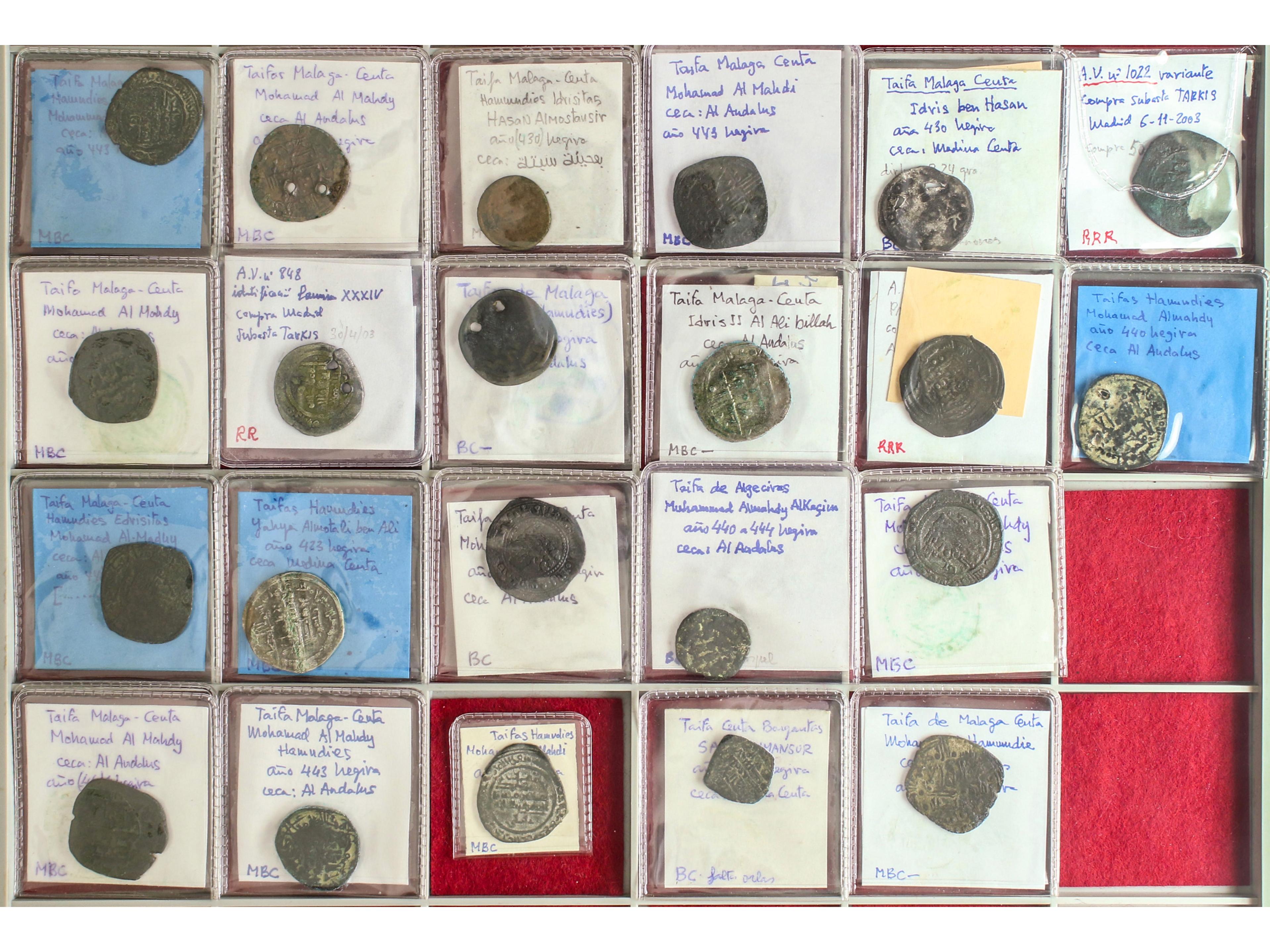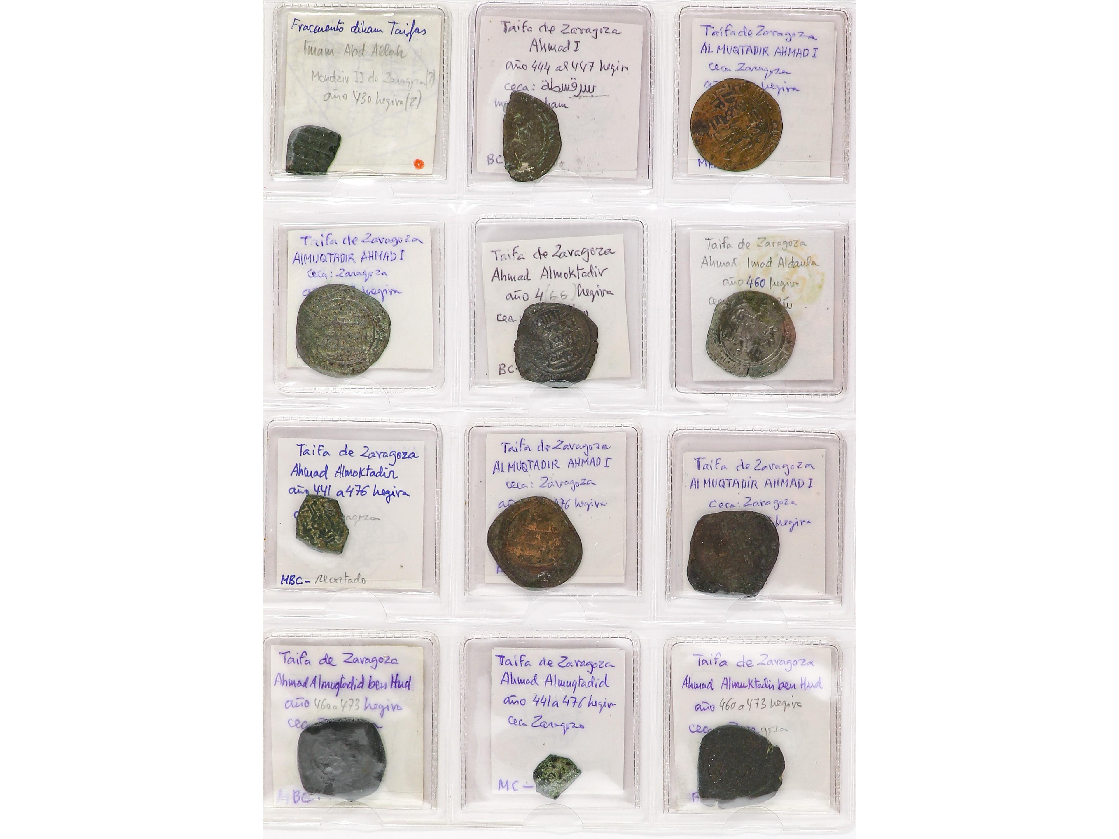 2422 imageLote 19 monedas. De diferentes reyes y en diferentes conservaciones de la Taifa de Almeria y de la Taifa de Sevilla. Incluye: (6) Dirhams y fracciones de Dirham de Granada; (13) Dirhams y fracciones de Dirham de Almeria, dos con perforaciones. Todas con etiquetas del coleccionista. Lote muy interesante. IMPRESCINDIBLE EXAMINAR. BC-/MBC-. (Image1)