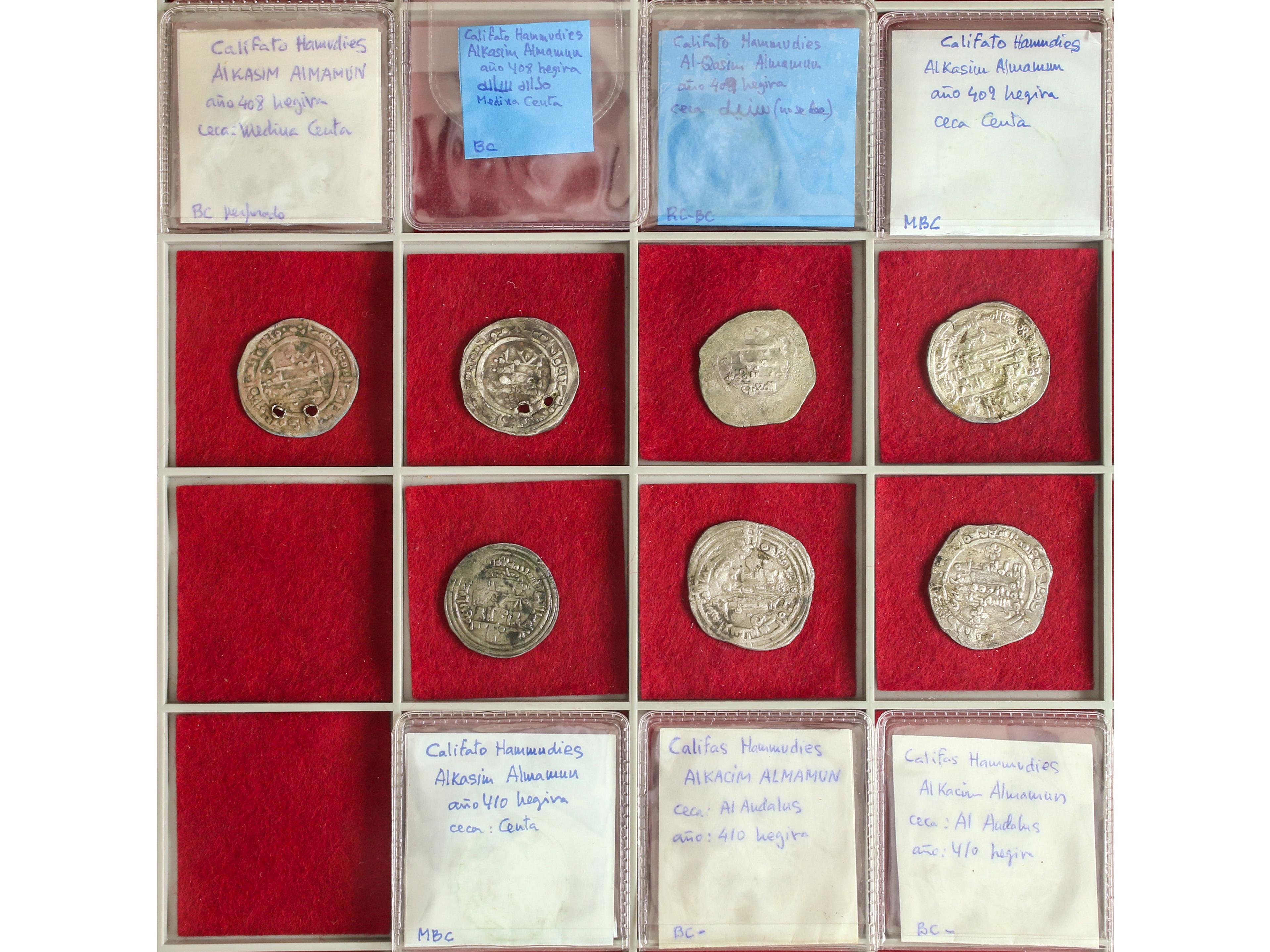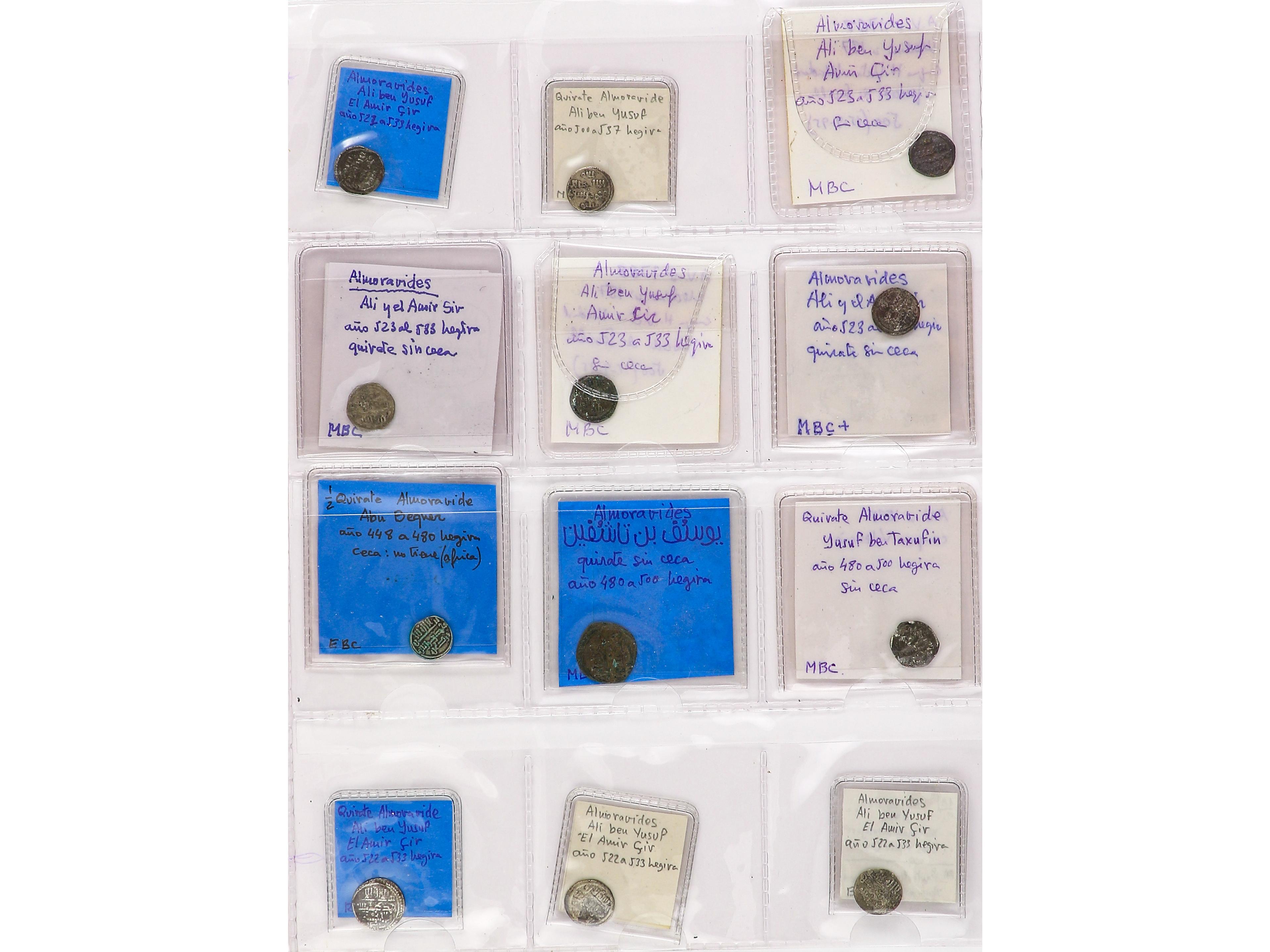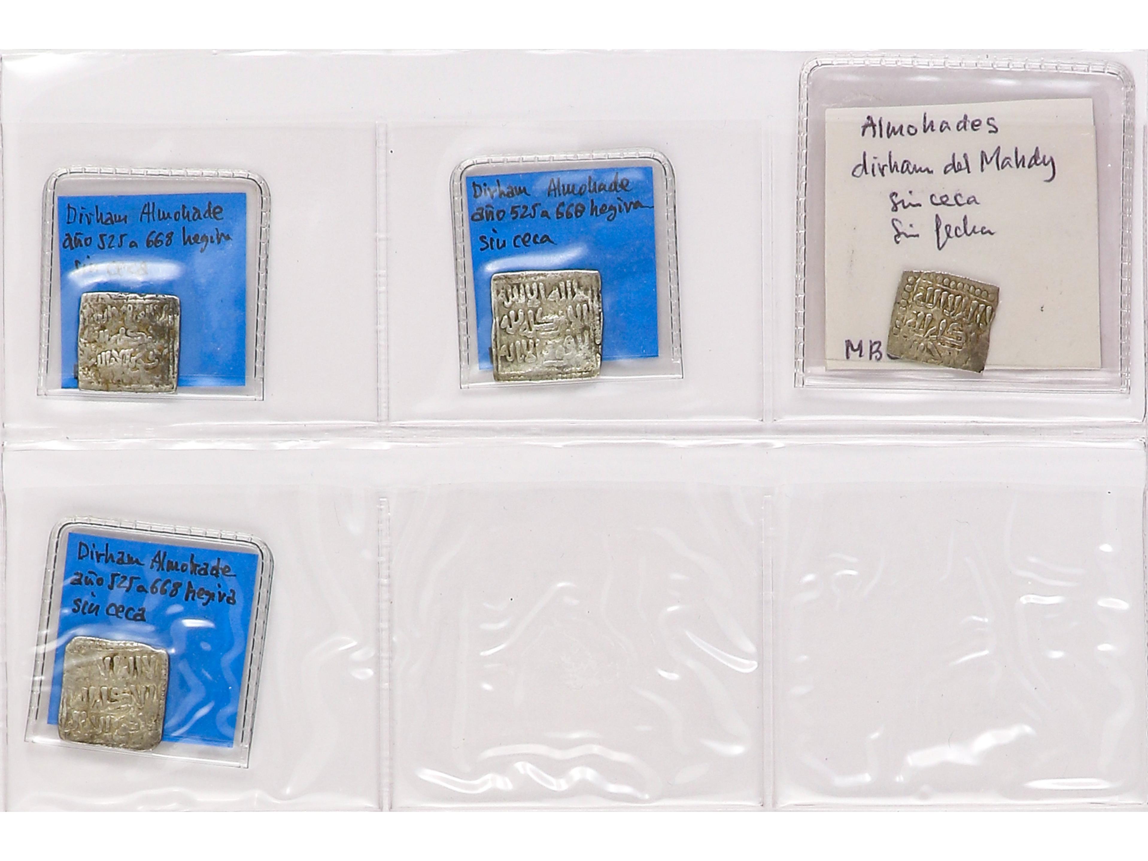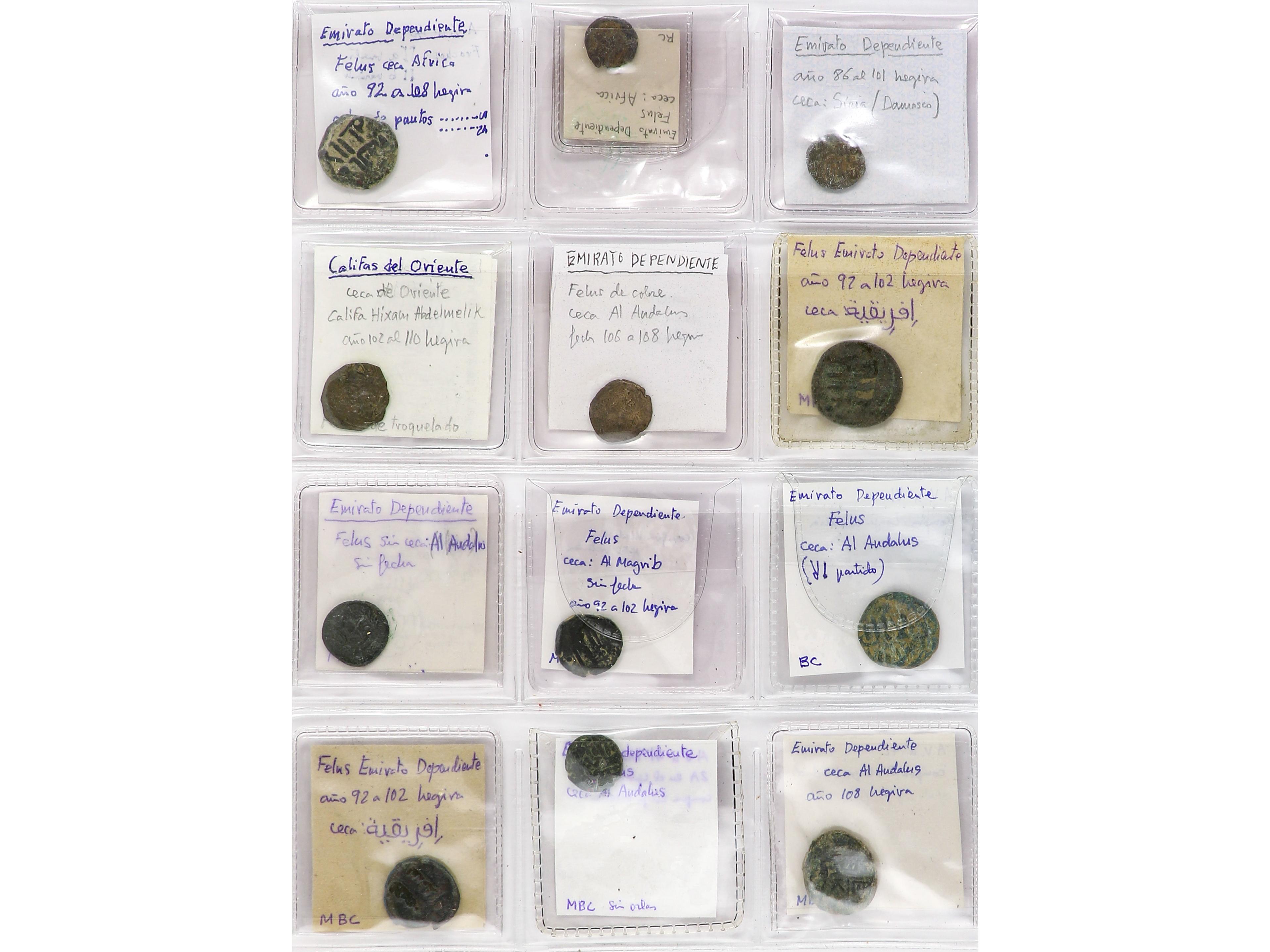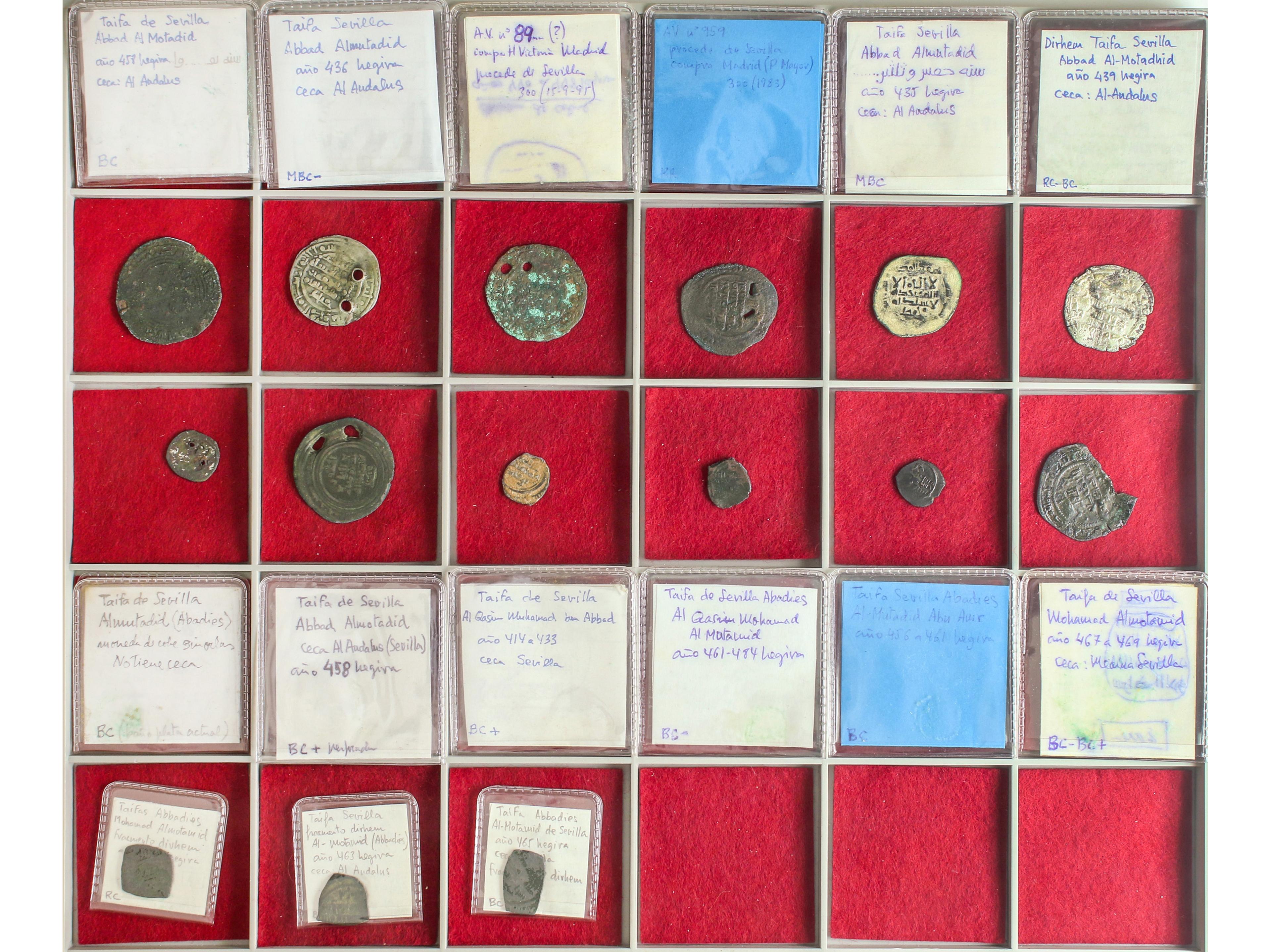 2422 imageLote 19 monedas. De diferentes reyes y en diferentes conservaciones de la Taifa de Almeria y de la Taifa de Sevilla. Incluye: (6) Dirhams y fracciones de Dirham de Granada; (13) Dirhams y fracciones de Dirham de Almeria, dos con perforaciones. Todas con etiquetas del coleccionista. Lote muy interesante. IMPRESCINDIBLE EXAMINAR. BC-/MBC-. (Image1)