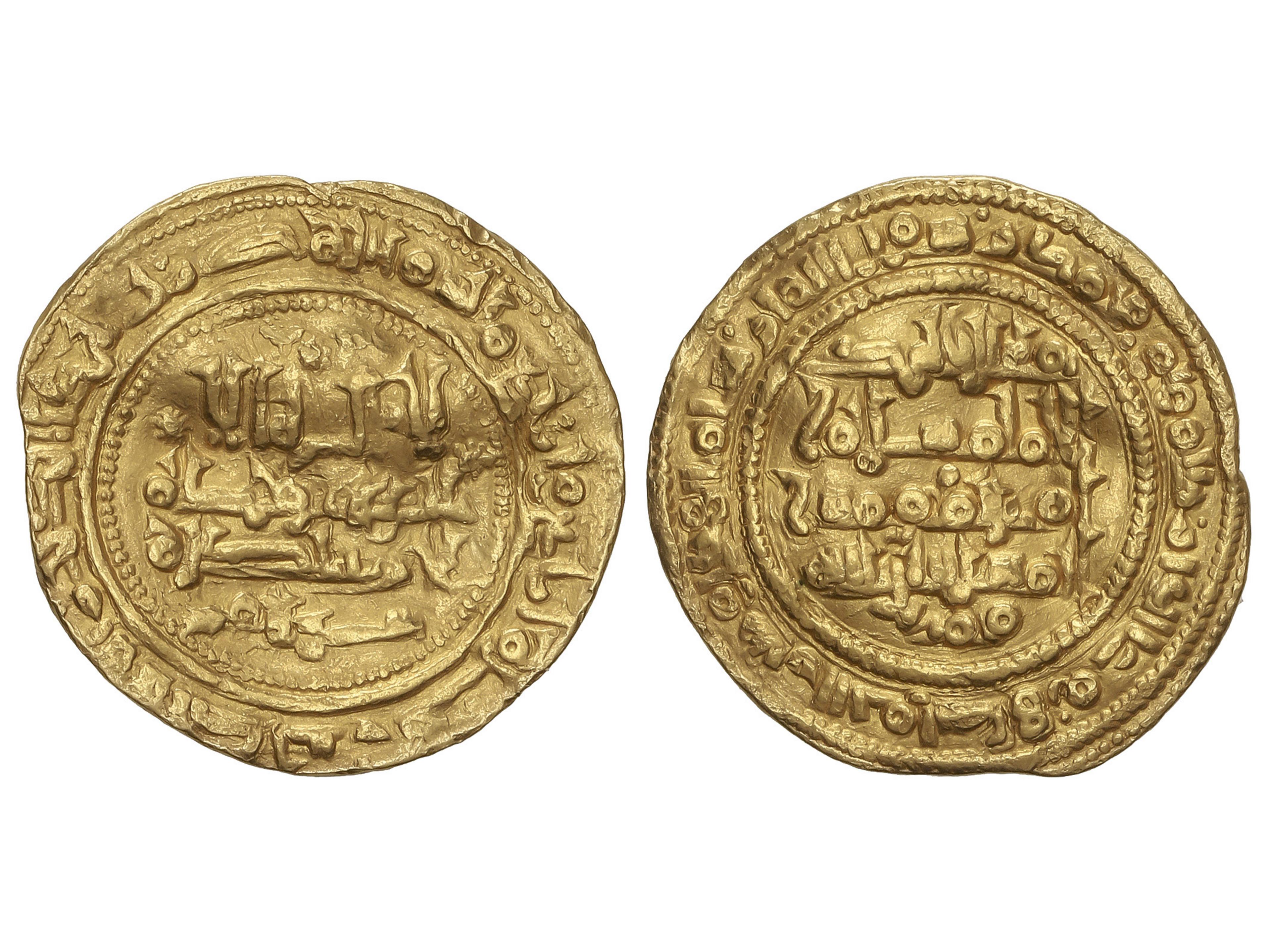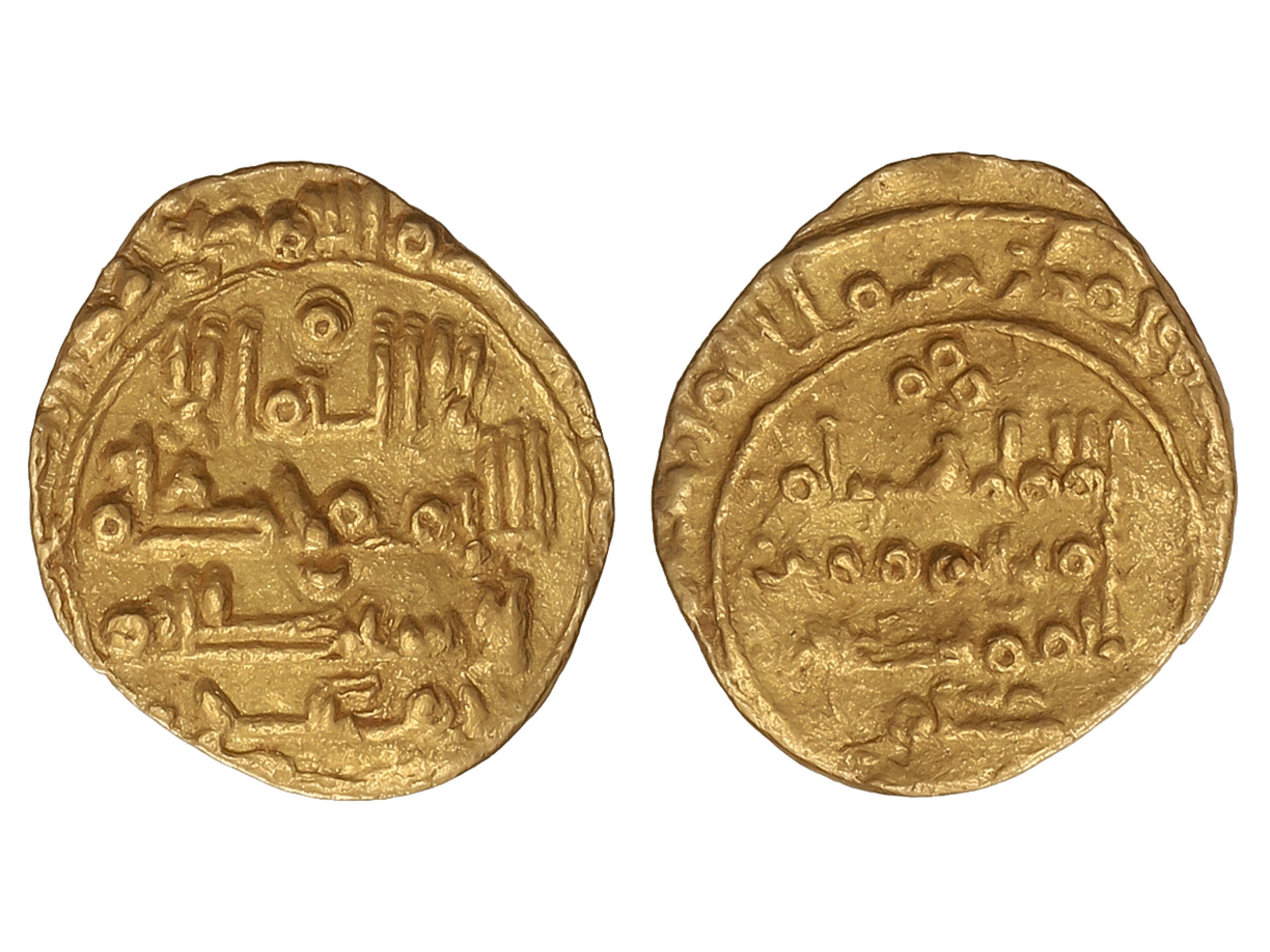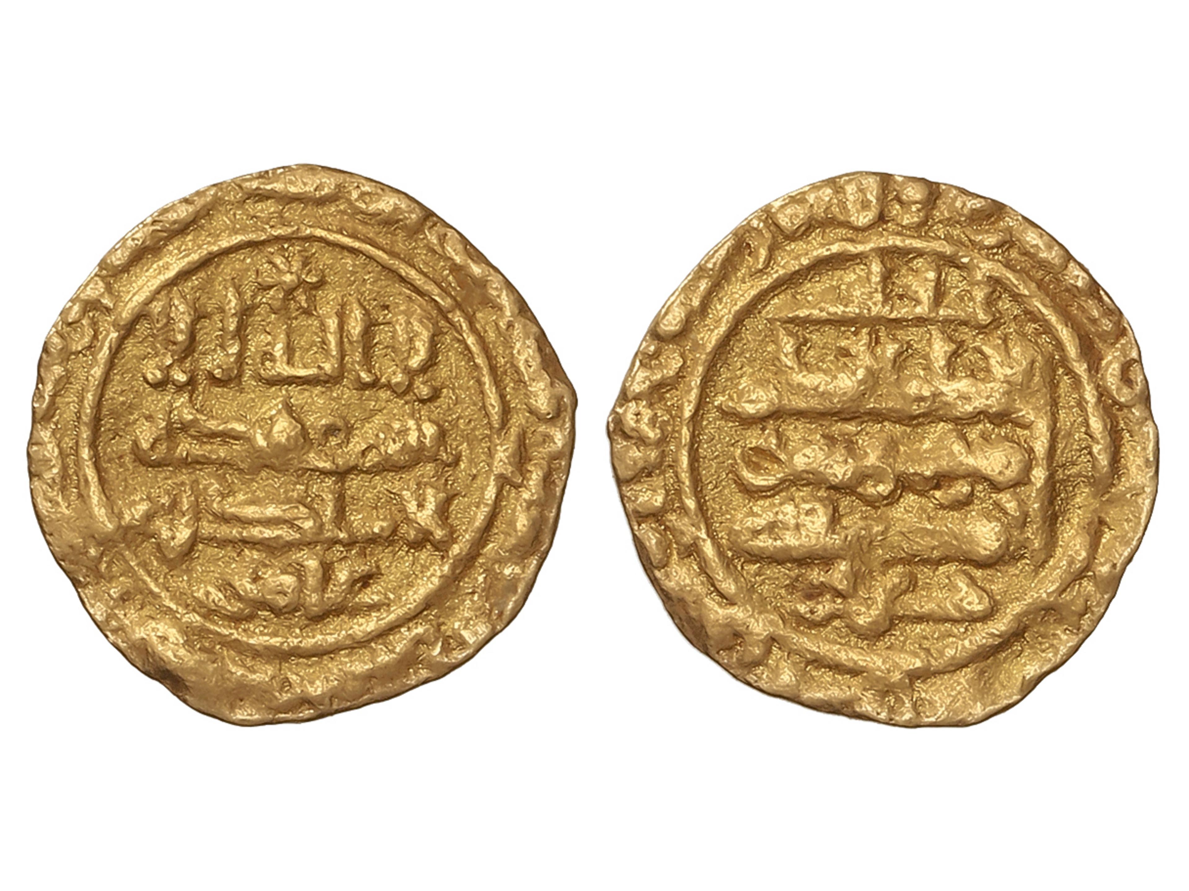 durante tres décadas. En los primeros años en las monedas se observa una estructura y distribución no bien definidas. Estas primeras escasas acuñaciones sirvieron de prototipos para poder definir ya a finales del 321H las definitivas en oro y en
