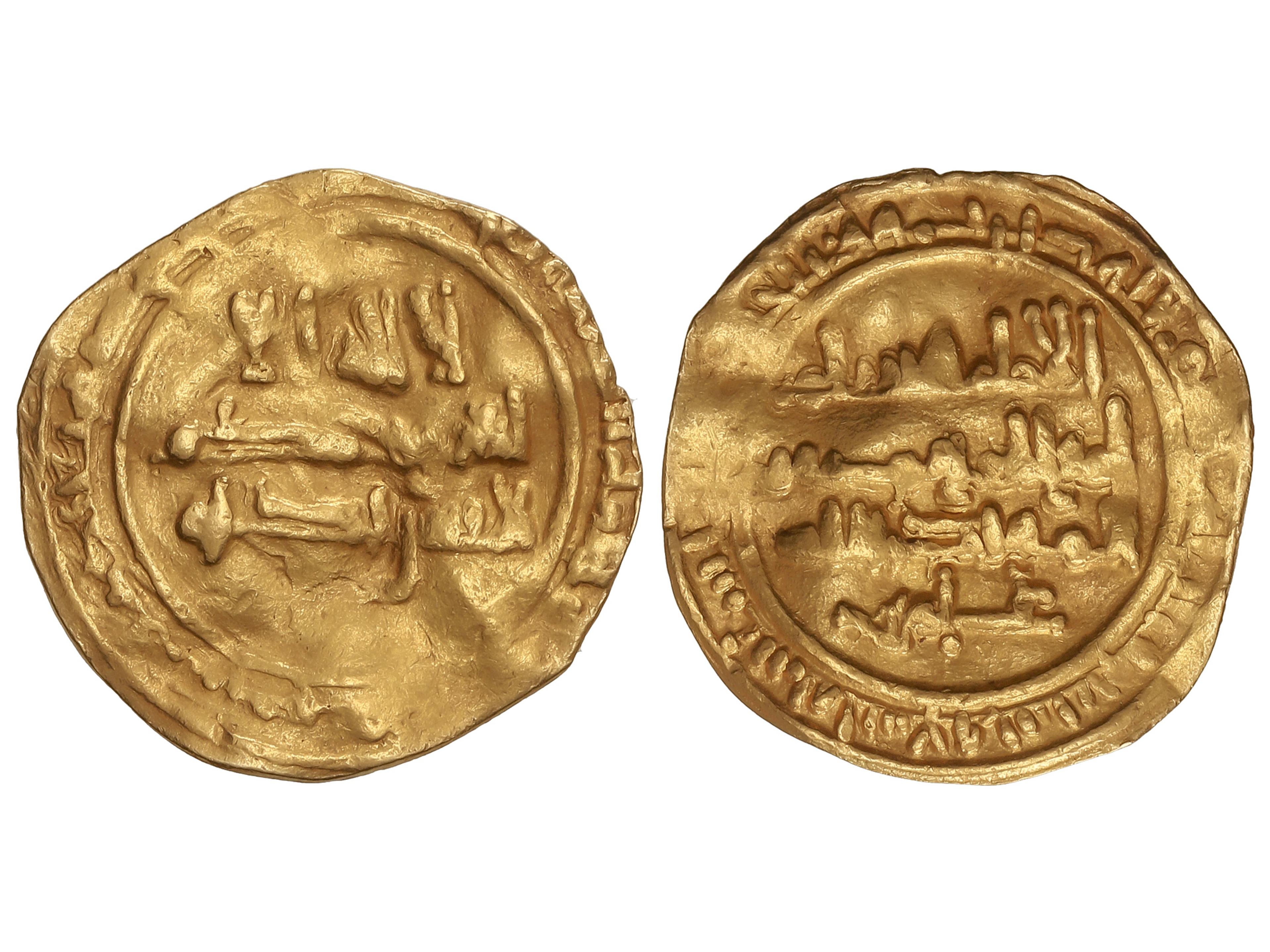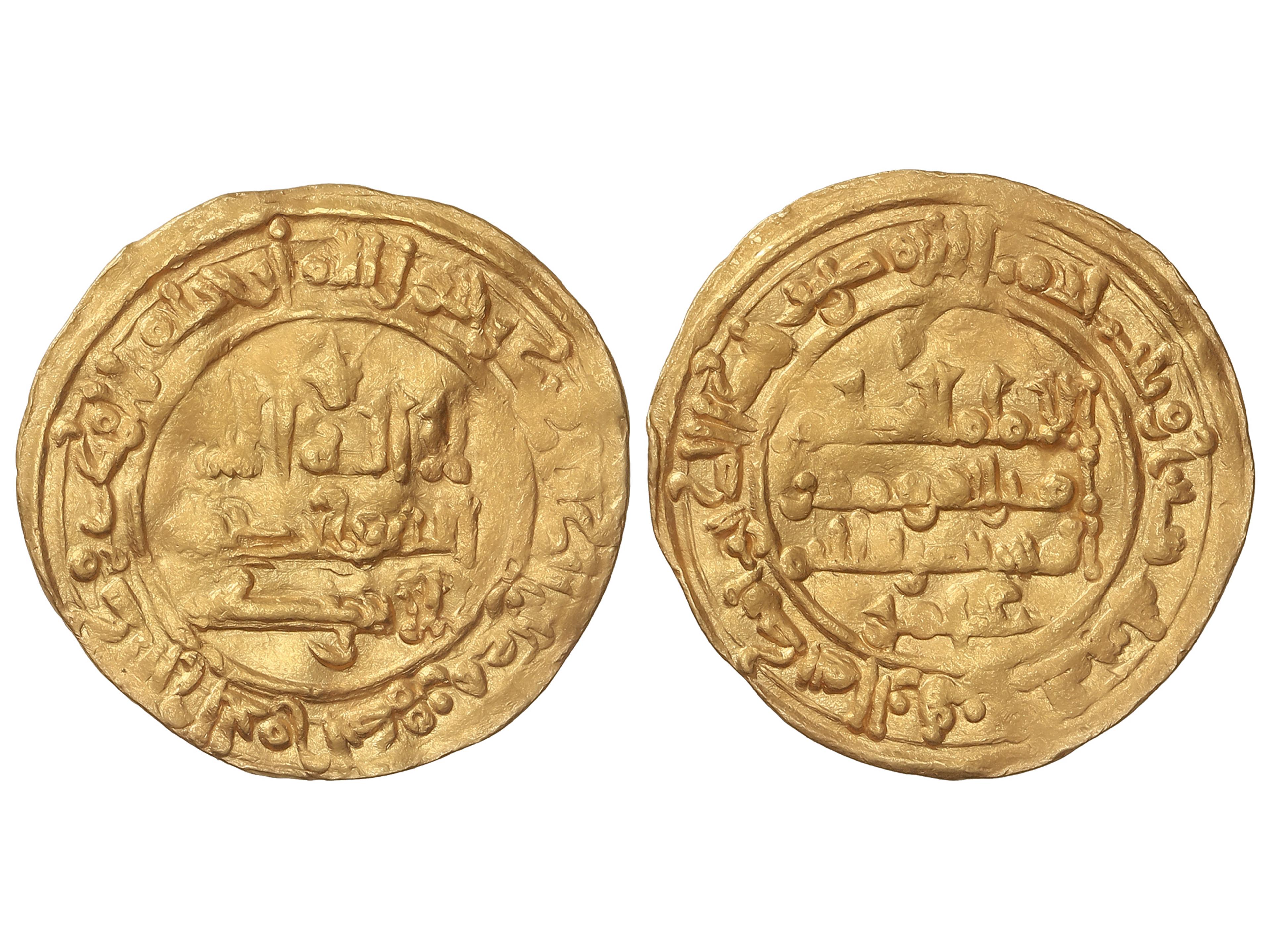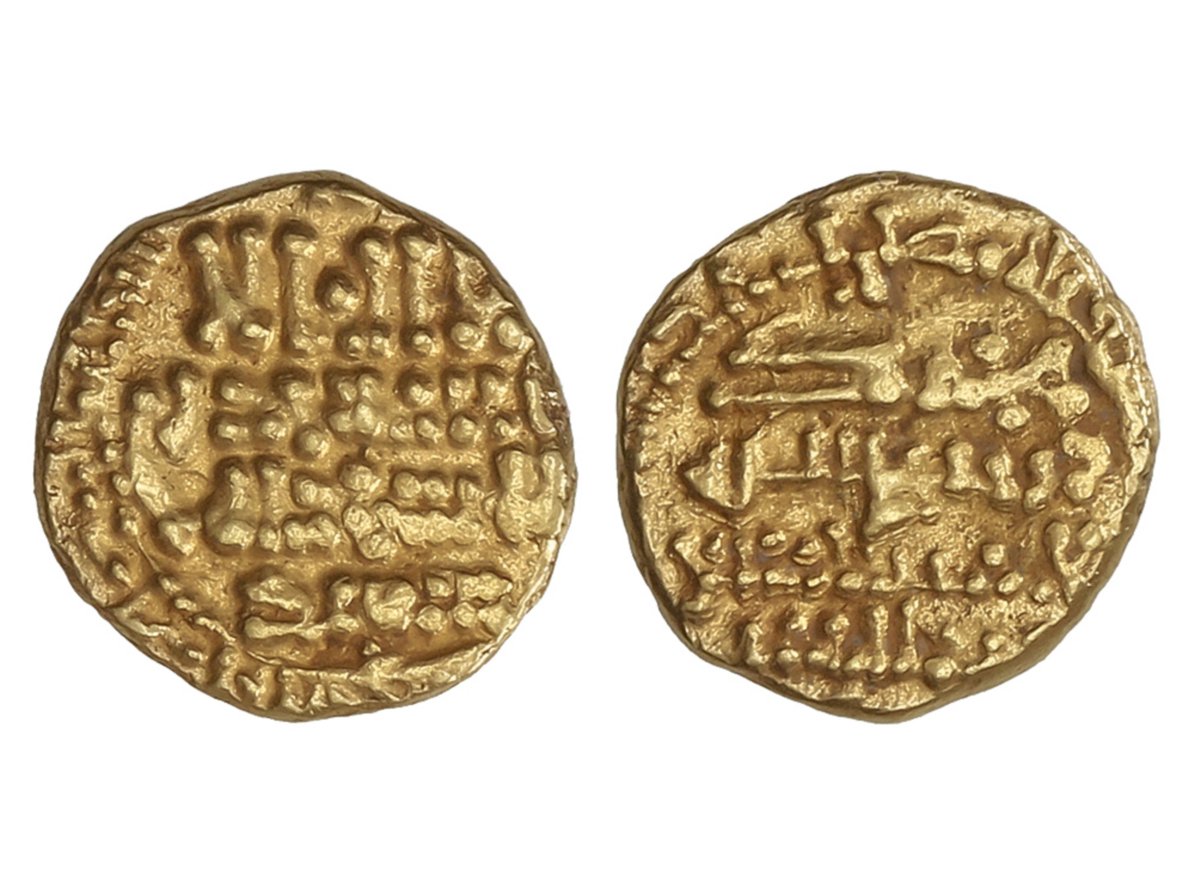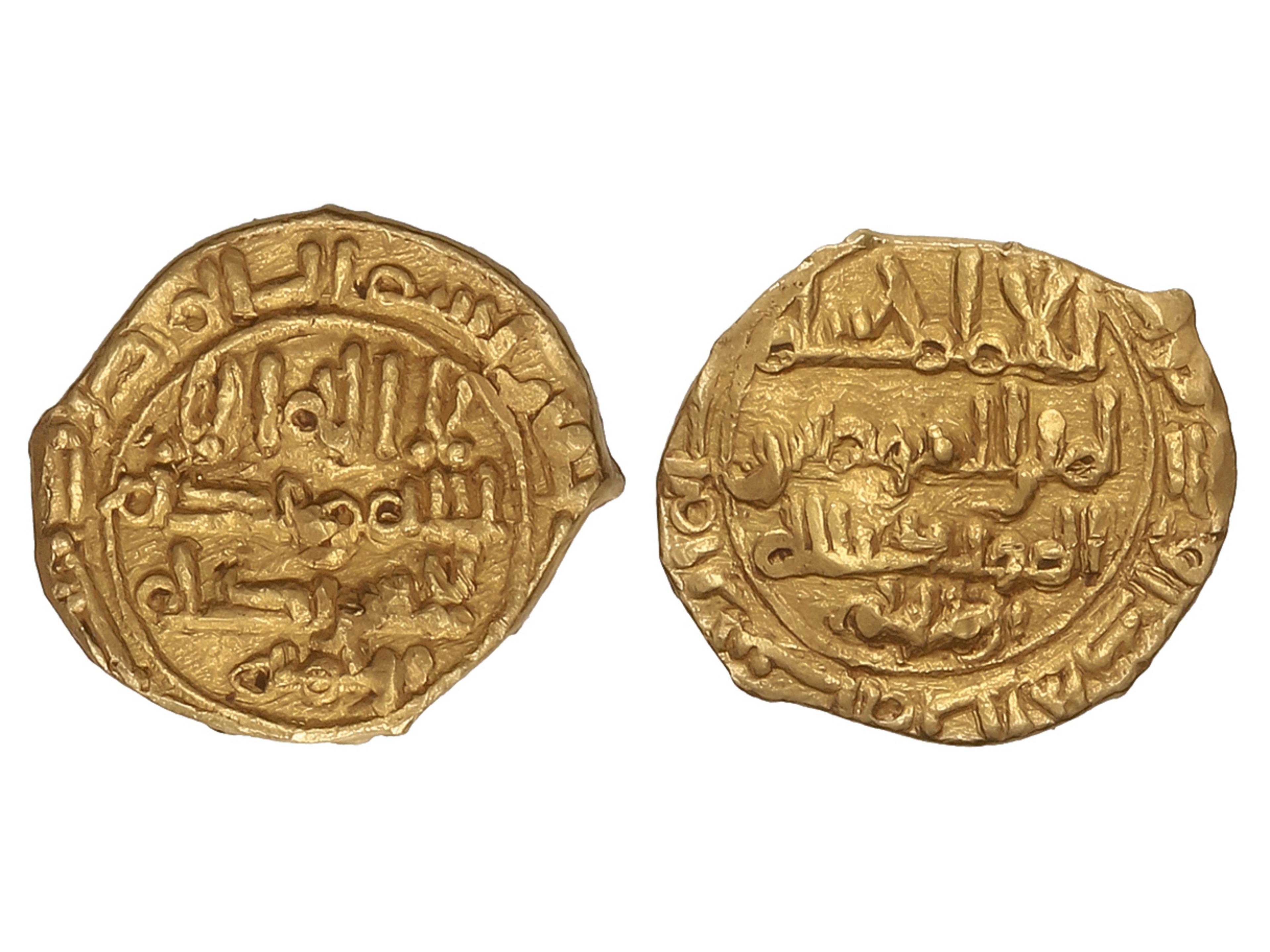 durante tres décadas. En los primeros años en las monedas se observa una estructura y distribución no bien definidas. Estas primeras escasas acuñaciones sirvieron de prototipos para poder definir ya a finales del 321H las definitivas en oro y en
