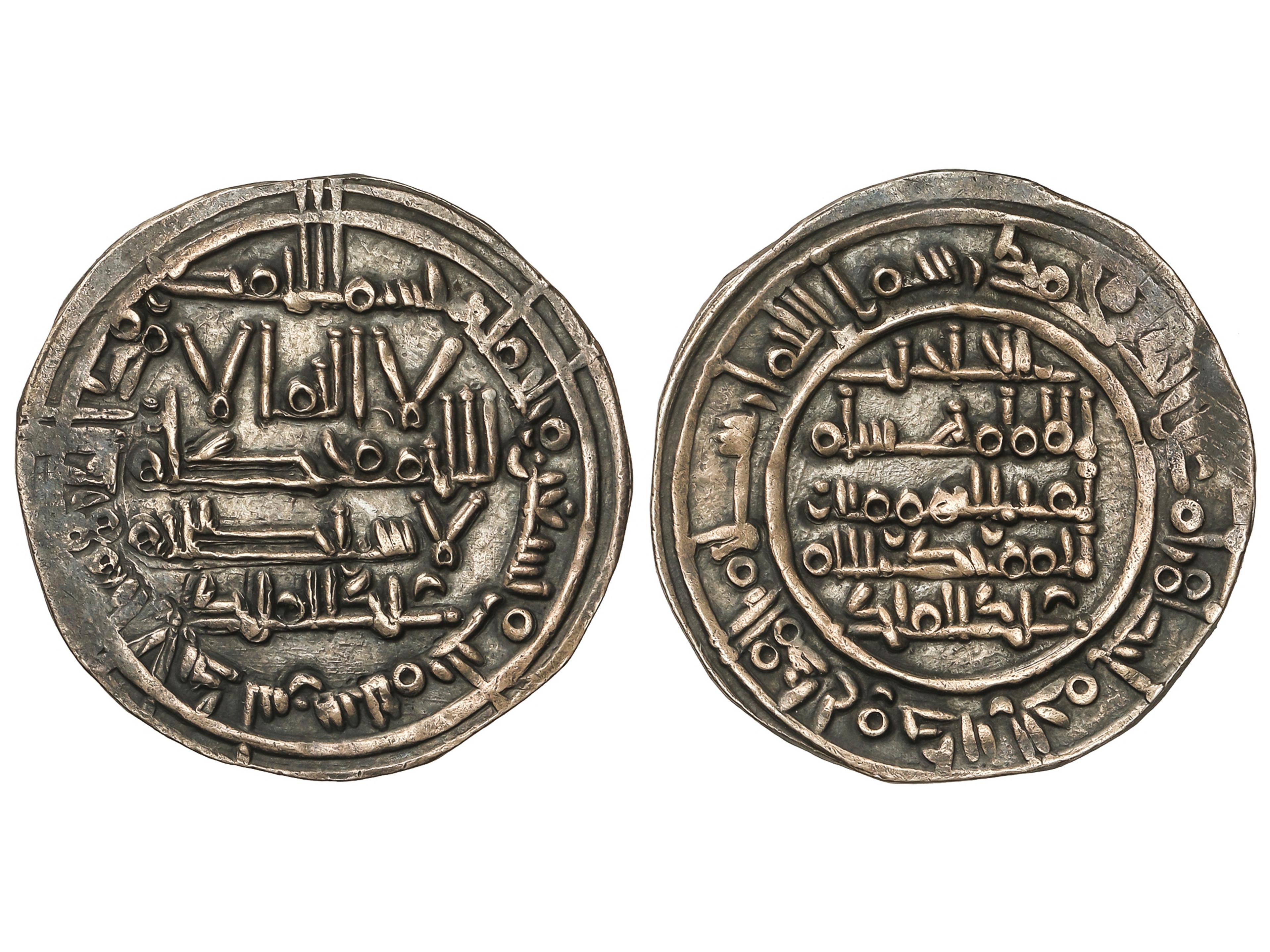 ejemplar conocido de una de las monedas más raras atribuidas a Sulayman. Fue acuñada en su nombre por uno de los príncipes independientes, al parecer solo en este año, durante la desintegración del Califato de Córdoba, en el tumultuoso período de la