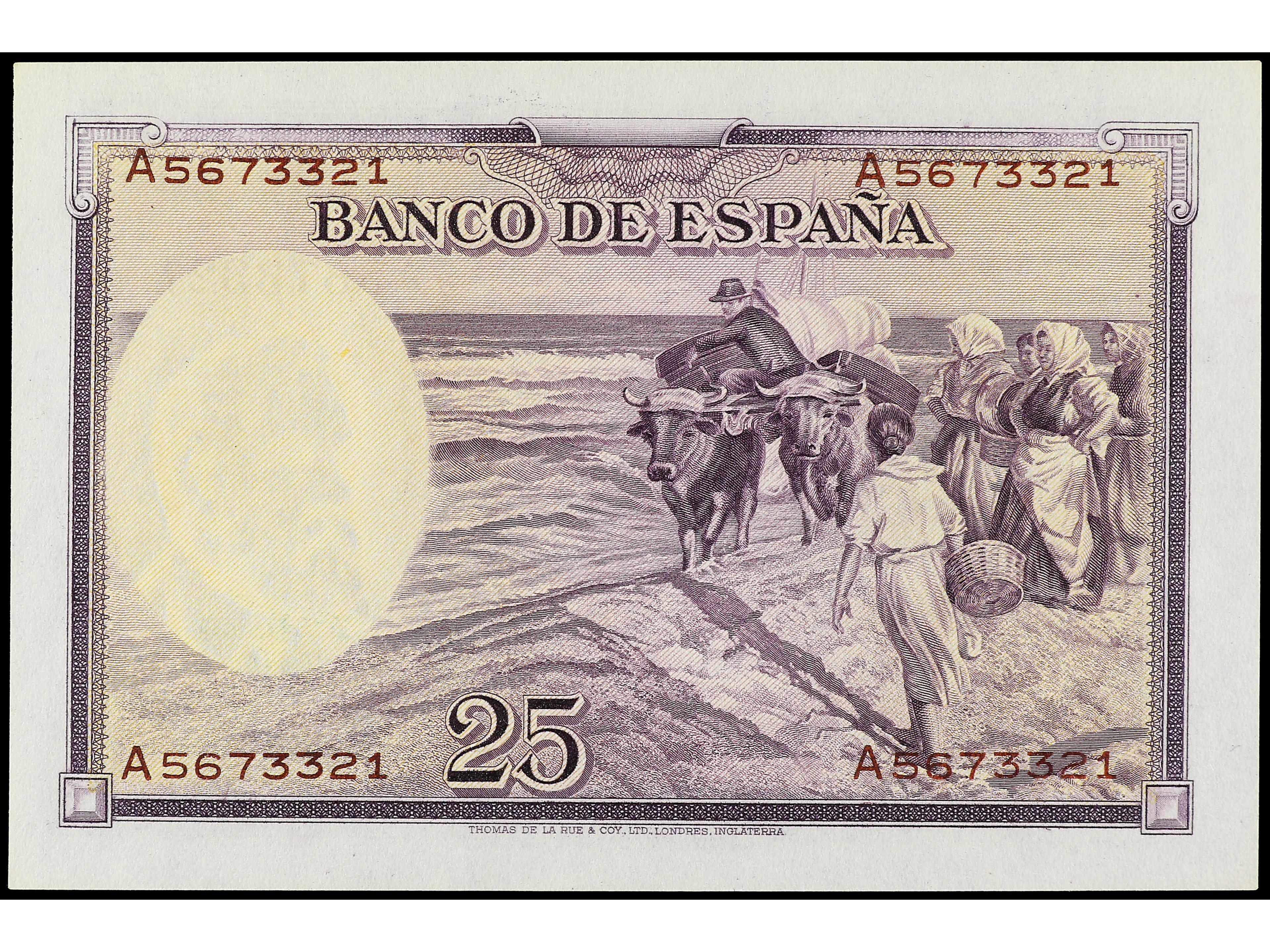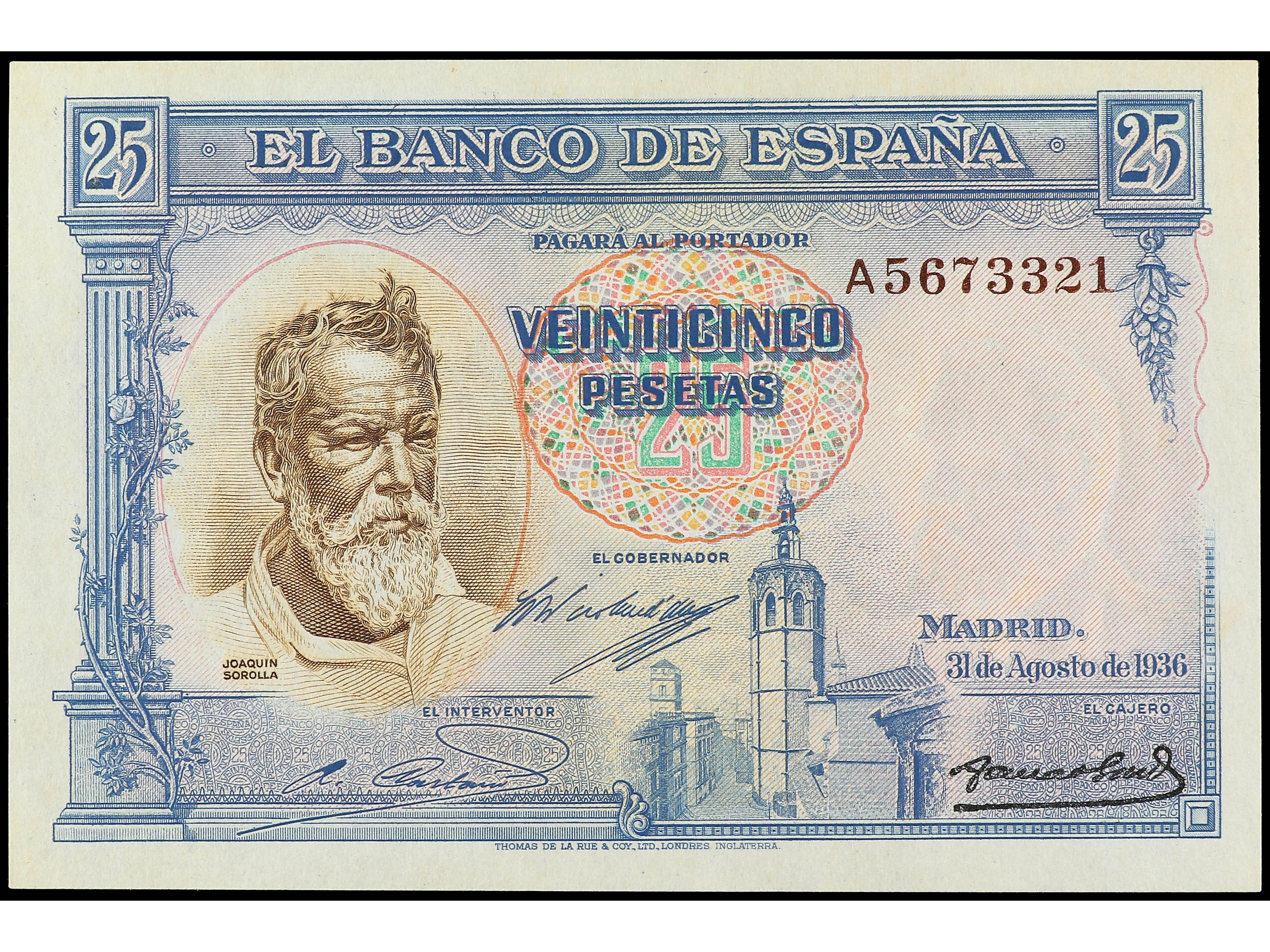 25 Pesetas. 31 Agosto 1936. Sorolla. Serie A. (Arruguitas). Ed-367a. SC. (Image1) (Image2)