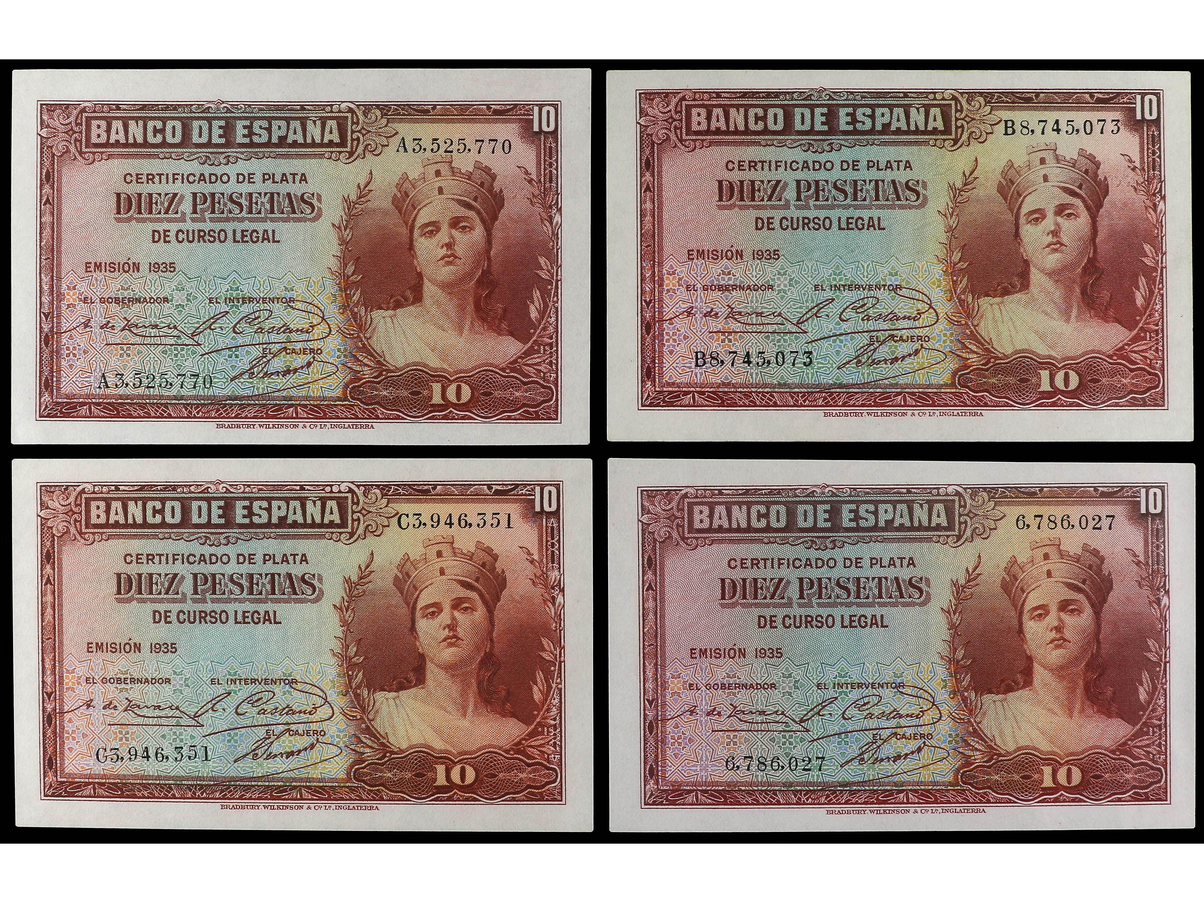 Lote 4 monedas 10 Pesetas. 1935. Sin Serie y Series A, B y C. (Arrugas). Ed-364, 364a, 364b. SC. (Image1)