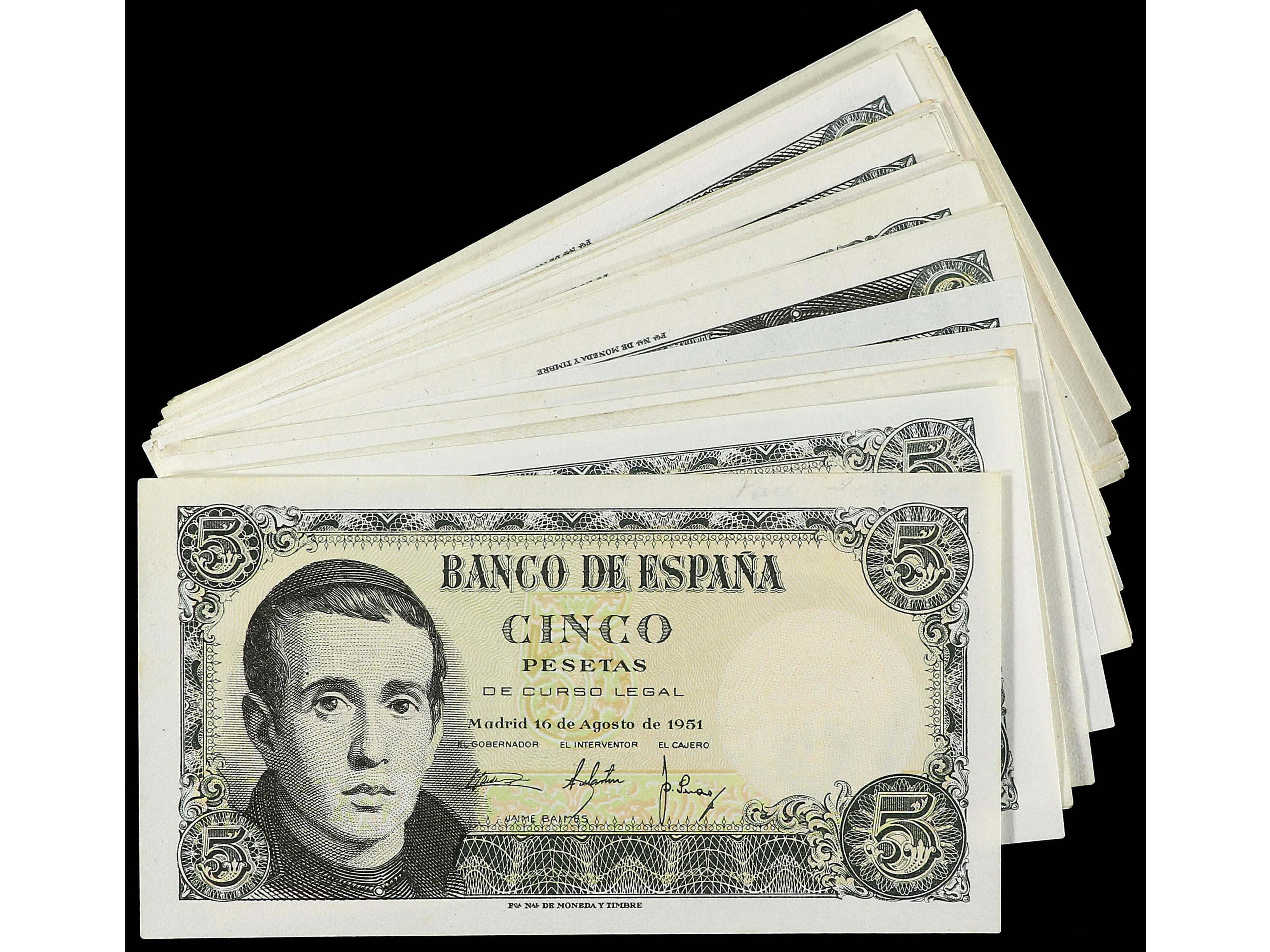 3132 imageLote 38 billetes 5 Pesetas. 16 Agosto 1951. Balmes. Sin Serie y Serie: A, B, C, D, E, F, G, H, I, J, K, L, M, N, P, Q, R, S, T, U, V, W, X, Y, Z, 1A, 1B, 1C, 1D, 1E, 1F, 1G, 1H, 1I, 1J, 1K, 1L. A EXAMINAR. Ed-459, 459a, 459b. EBC- a SC-. (Image1)