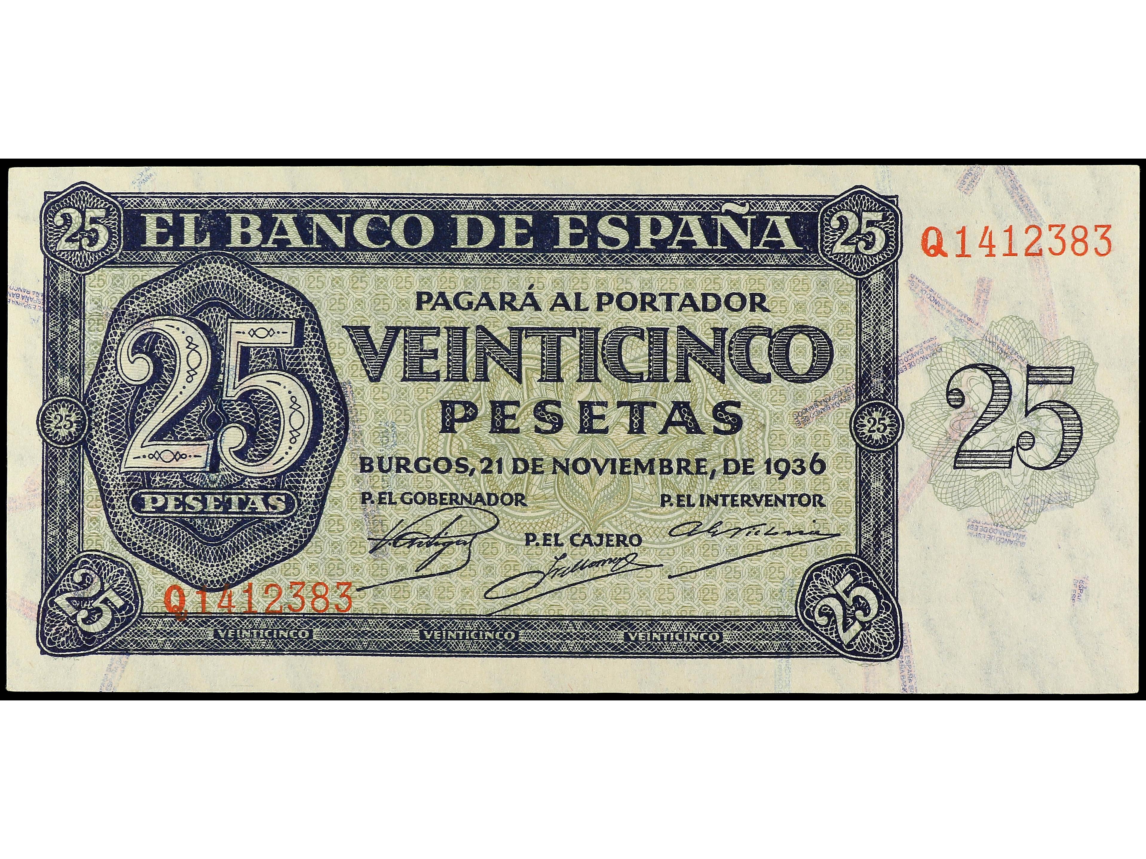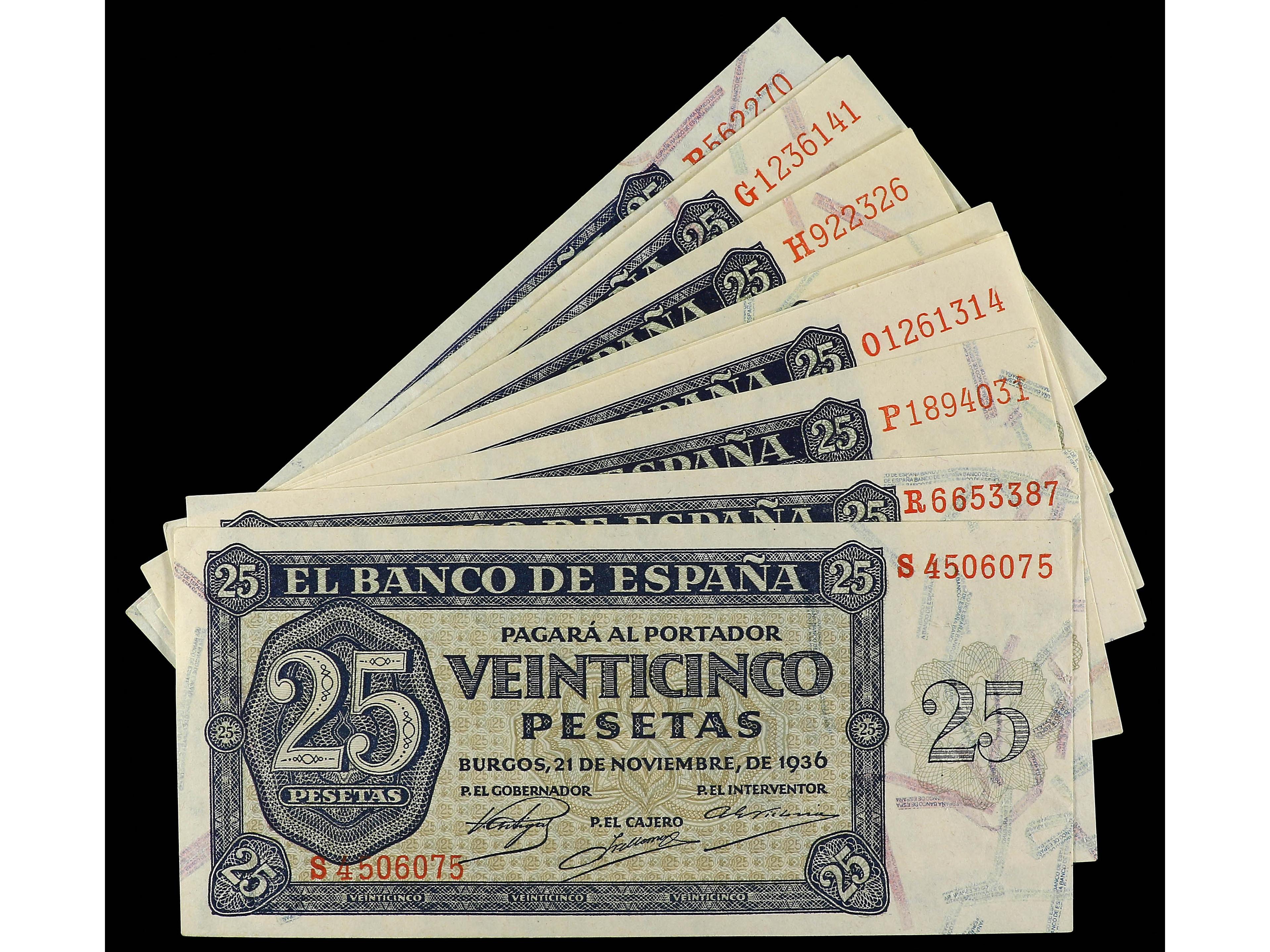 3140 imageLote 10 billetes 25 Pesetas. 21 noviembre 1936. Series B, F, G, H, M, N, O, P, R, S. A EXAMINAR. Ed-419a. EBC- a EBC+. (Image1)