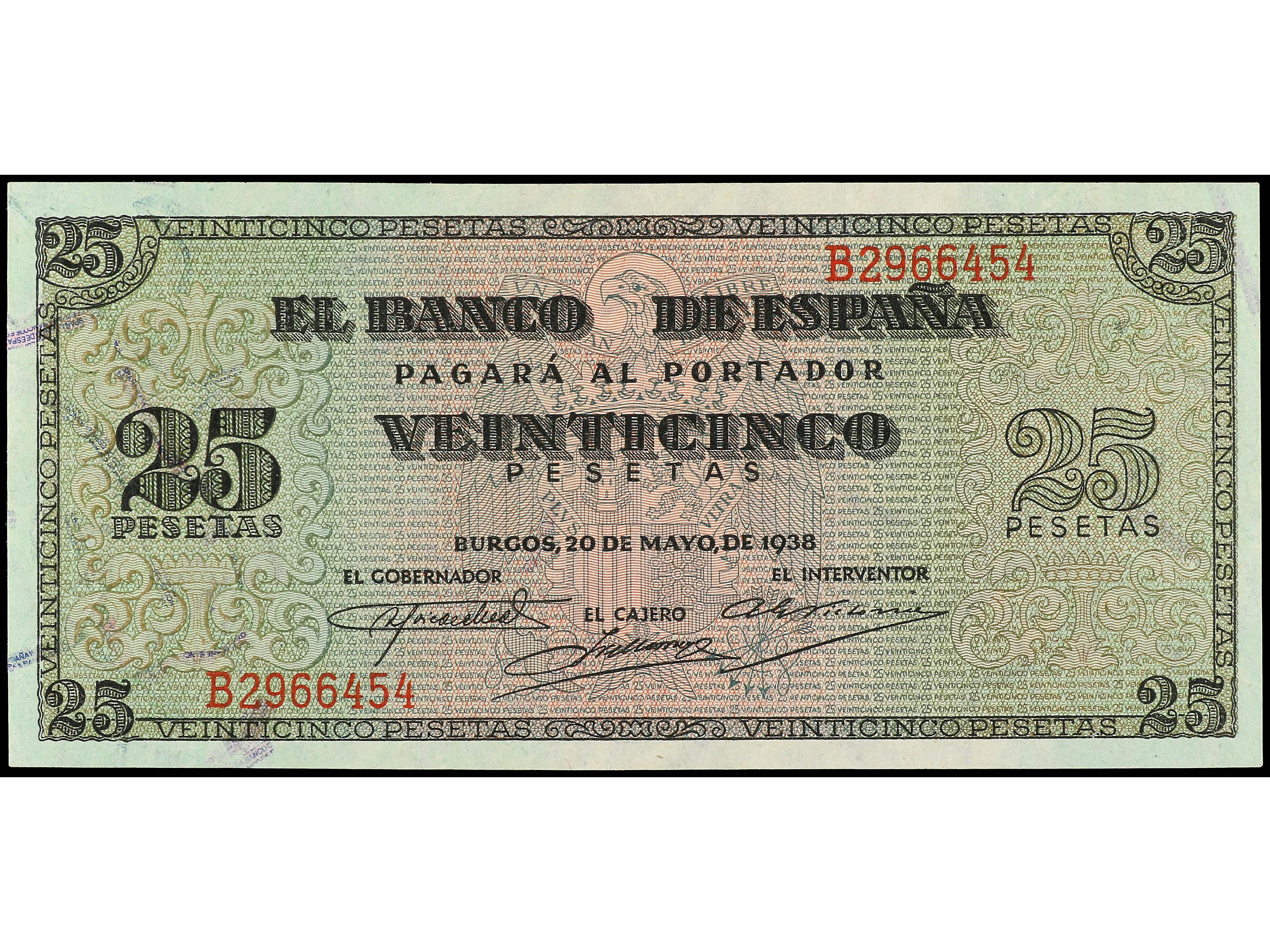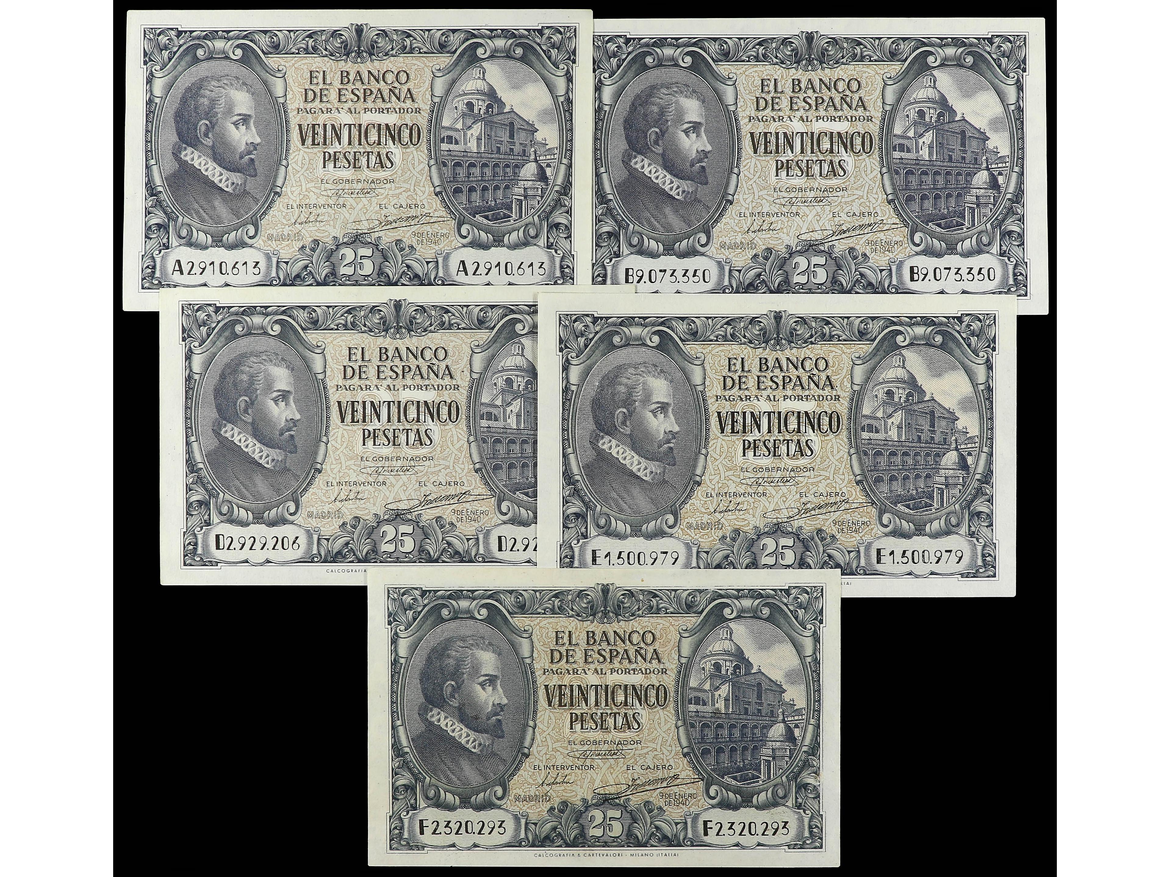 3146 imageLote 5 billetes 25 pesetas. 9 Enero 1940. Herrera. Series A, B, D, E, F. A EXAMINAR. Ed-436, 436a. EBC- a EBC. (Image1)