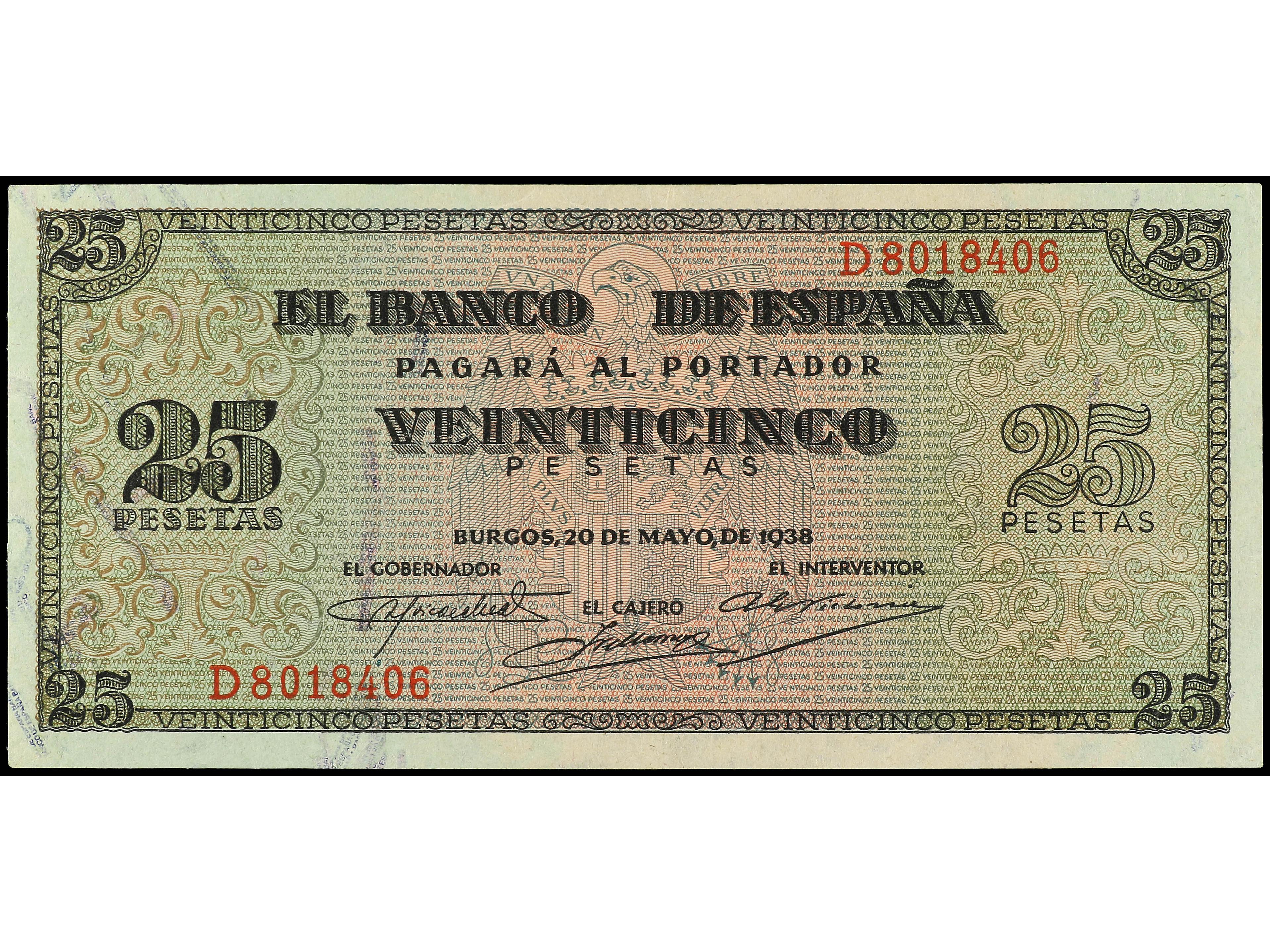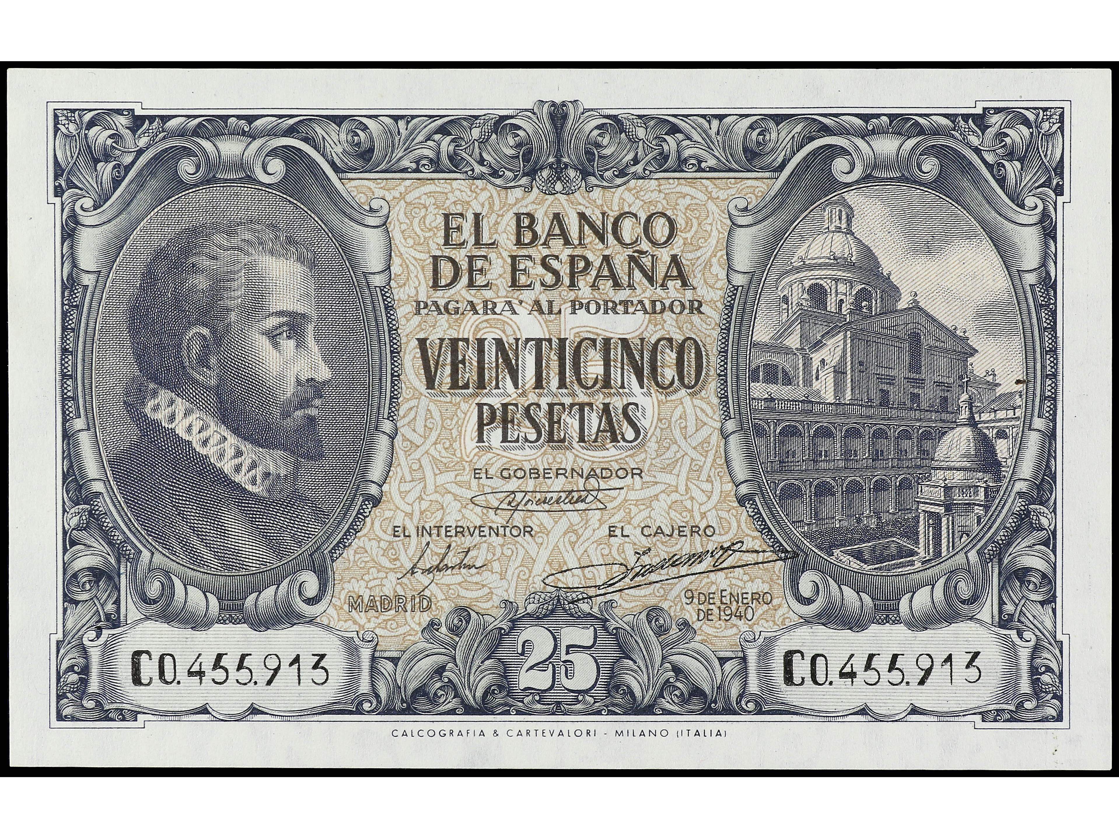 3145 image25 pesetas. 9 Enero 1940. Herrera. Serie C. (Arruguitas). Ed-436a. SC-. (Image1) (Image2)