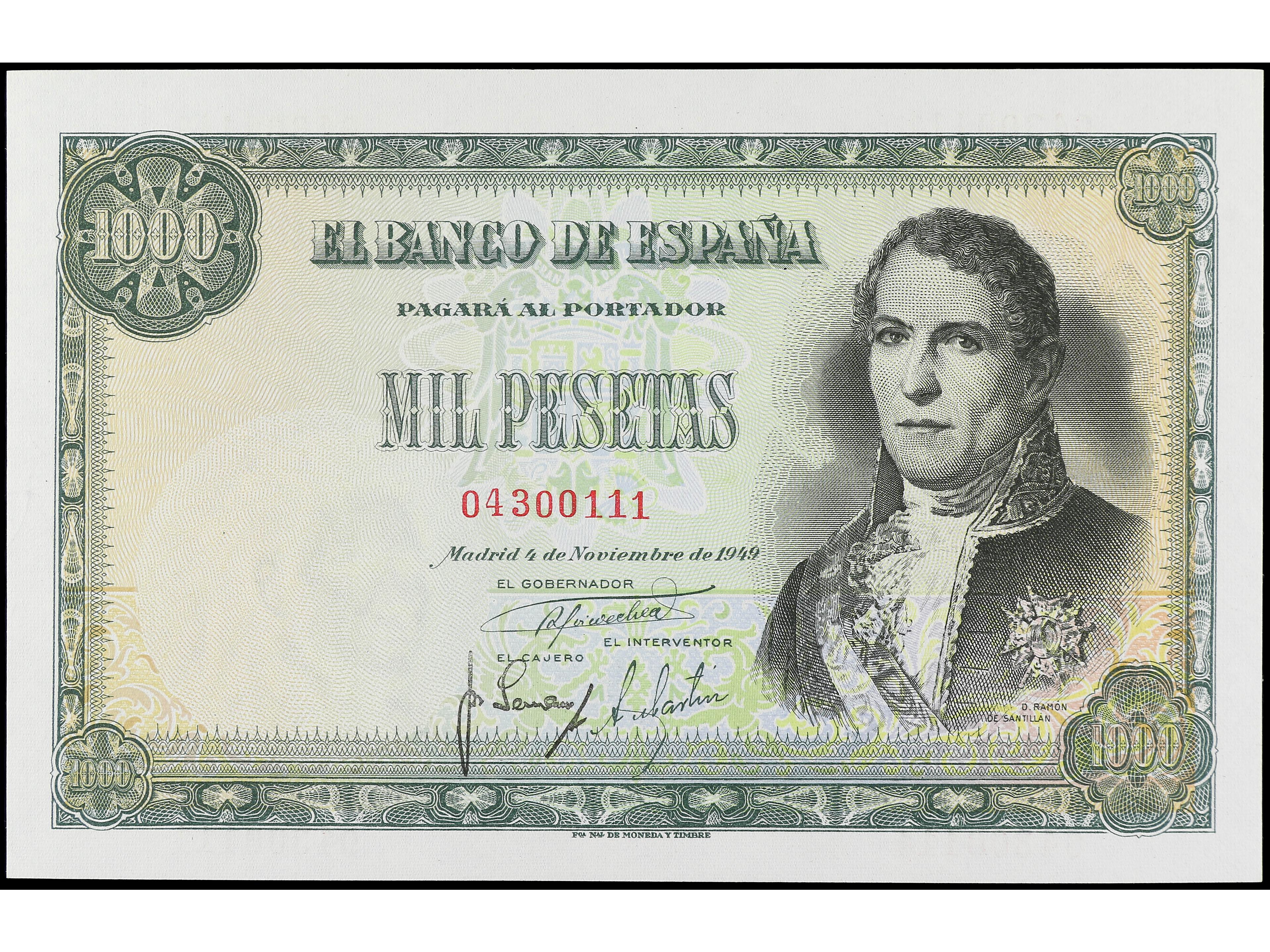 1.000 Pesetas. 4 Noviembre 1949. Ramón de Santillán. (Arruguitas). Ed-458. SC. (Image1) (Image2)