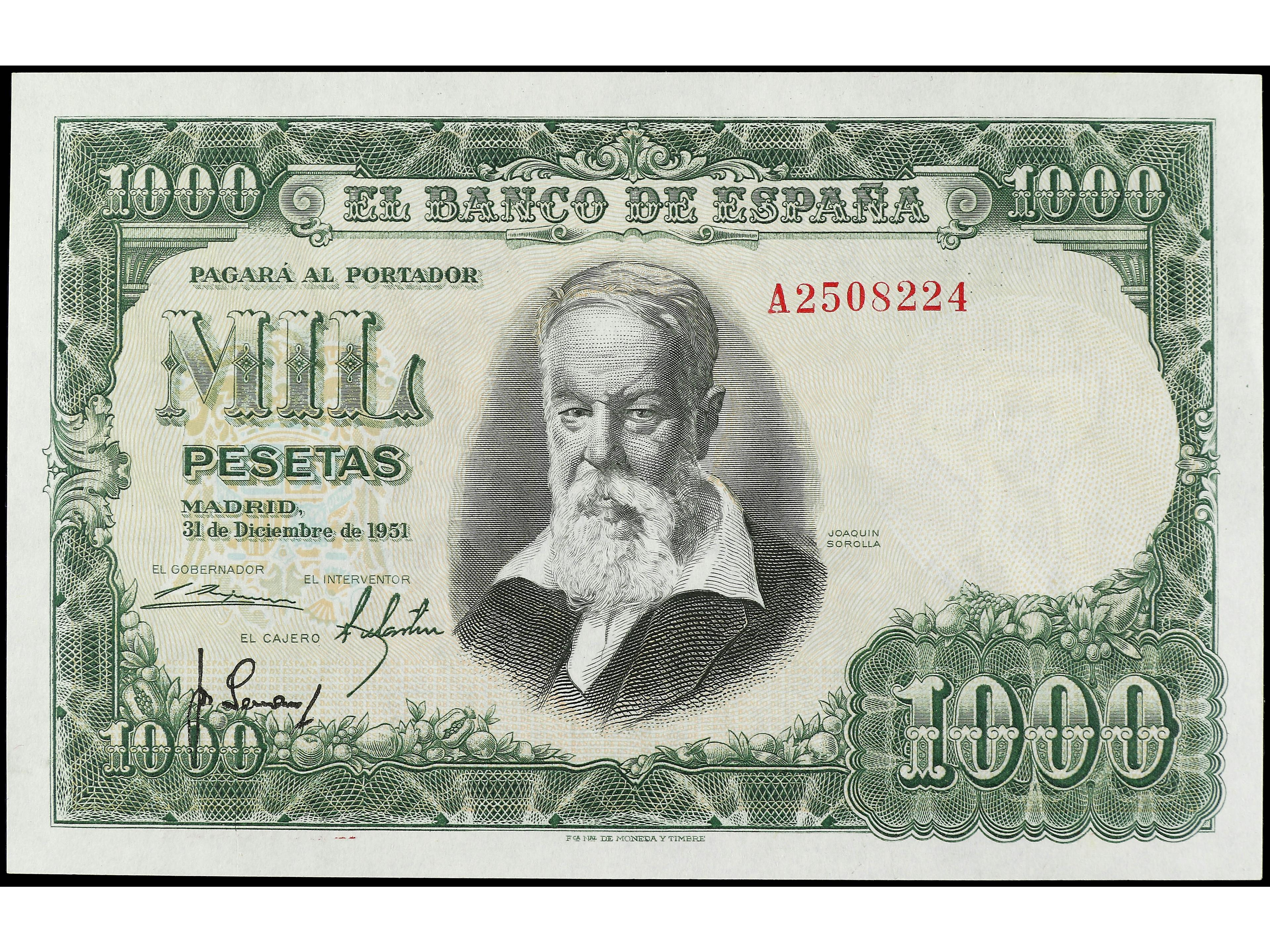 1.000 Pesetas. 31 Diciembre 1951. Sorolla. Serie A. Ed-463a. SC-. (Image1) (Image2)