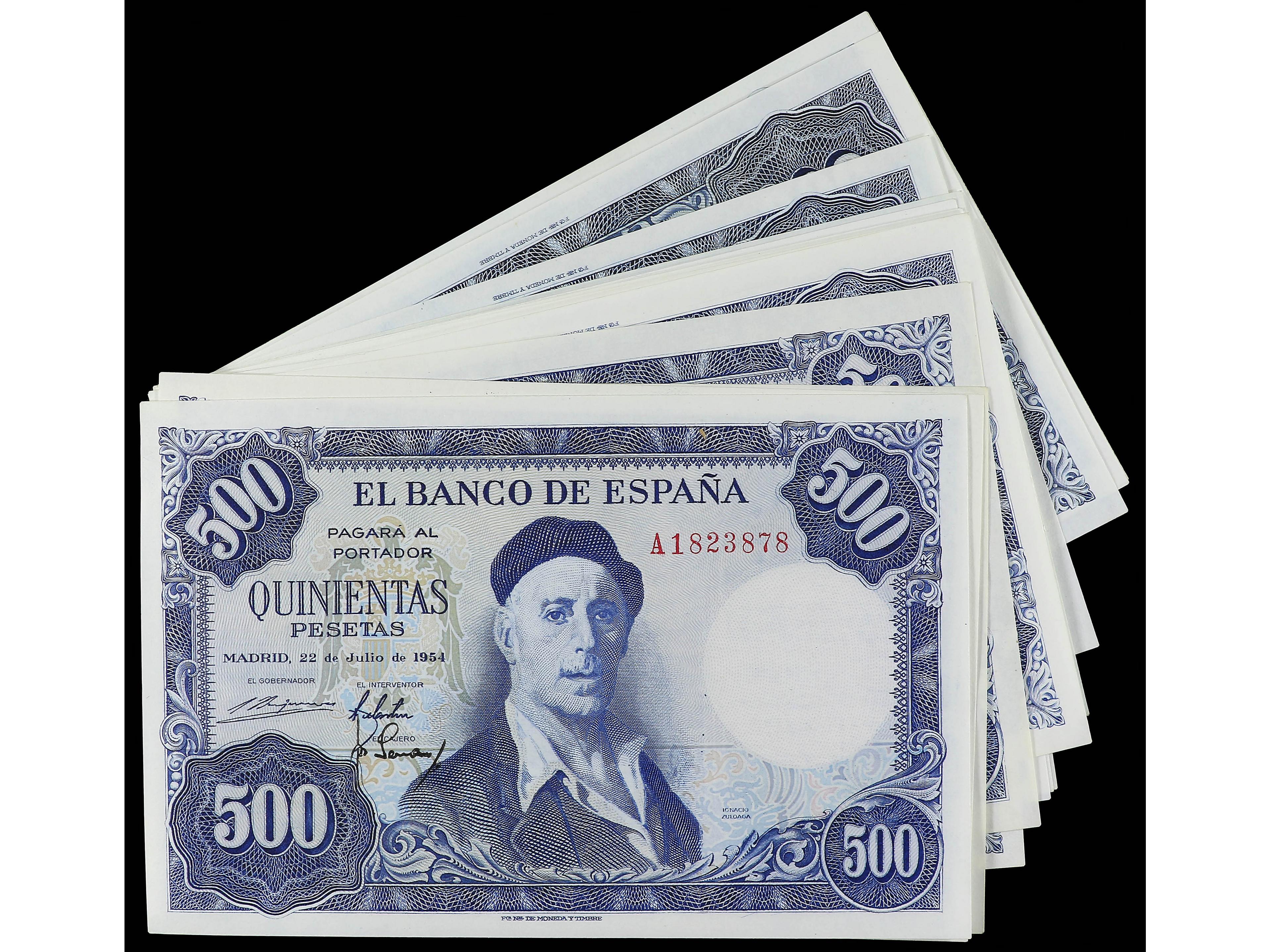 Lote 18 billetes 500 Pesetas. 22 Julio 1954. Zuloaga. Serie A, B, C, D, F, I, J, K, L, M, N, P, Q, R, S, T, U, V. A EXAMINAR. Ed-468a, 468b, 468c. EBC- a SC. (Image1)