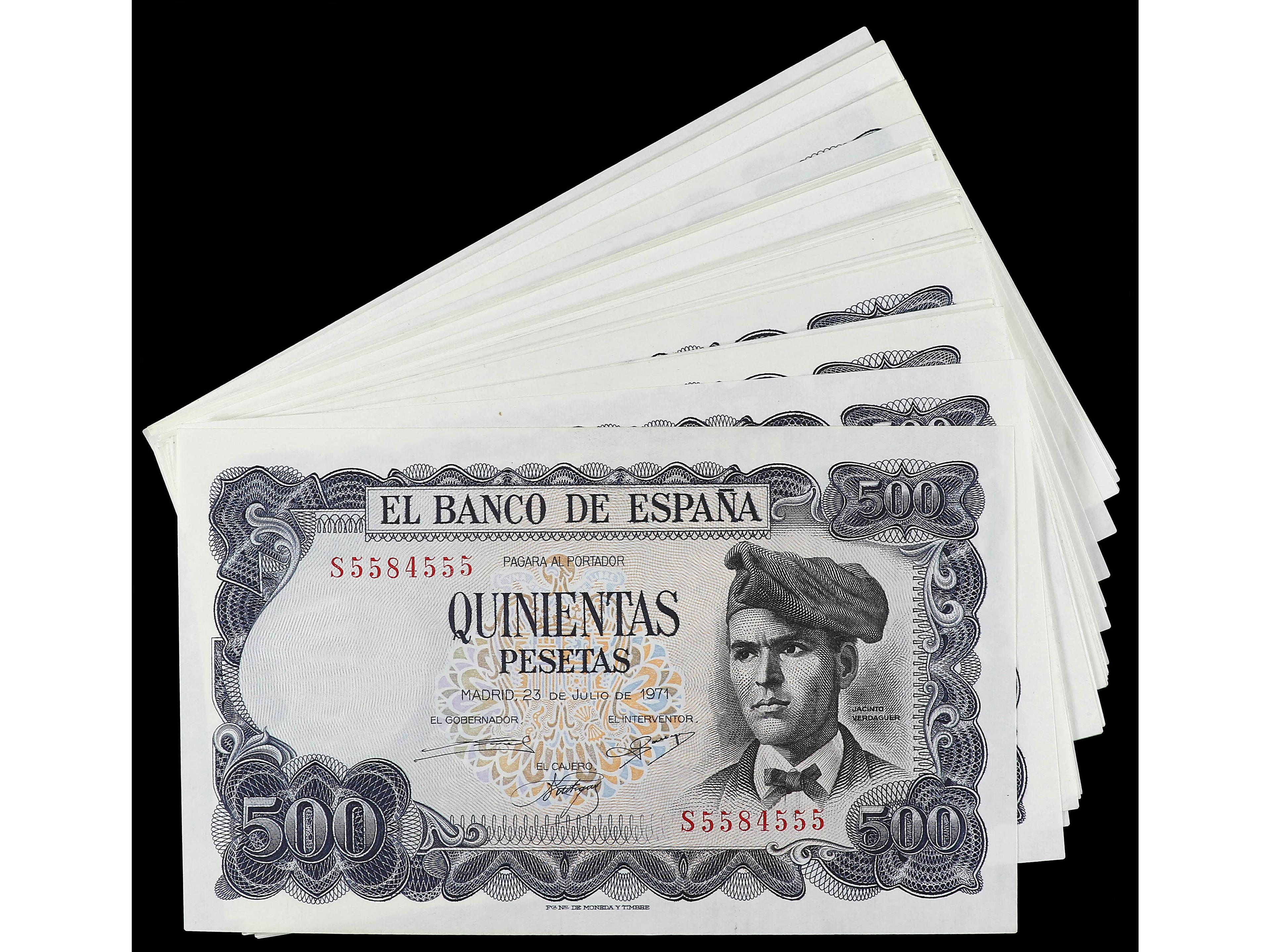 Lote 42 billetes 500 Pesetas. 23 Julio 1971. Verdaguer. Diferentes series. Ed-473, 473a. EBC- a SC. (Image1)