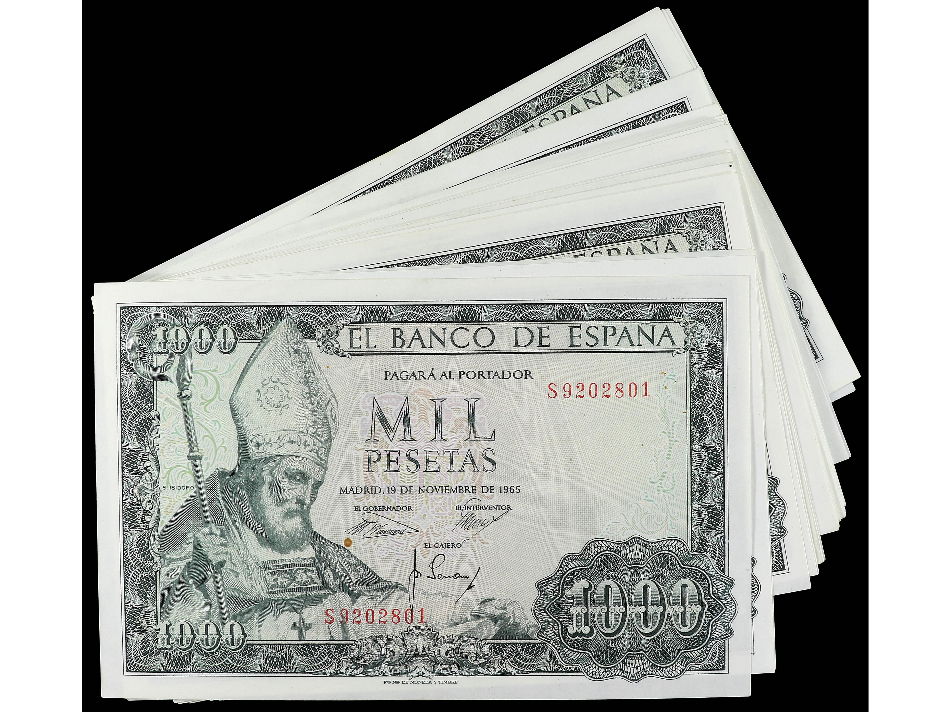 Lote 33 billetes 1.000 Pesetas. 19 Noviembre 1965. San Isidoro. Diferentes series. A EXAMINAR. Ed-471b. MBC+ a SC-. (Image1)