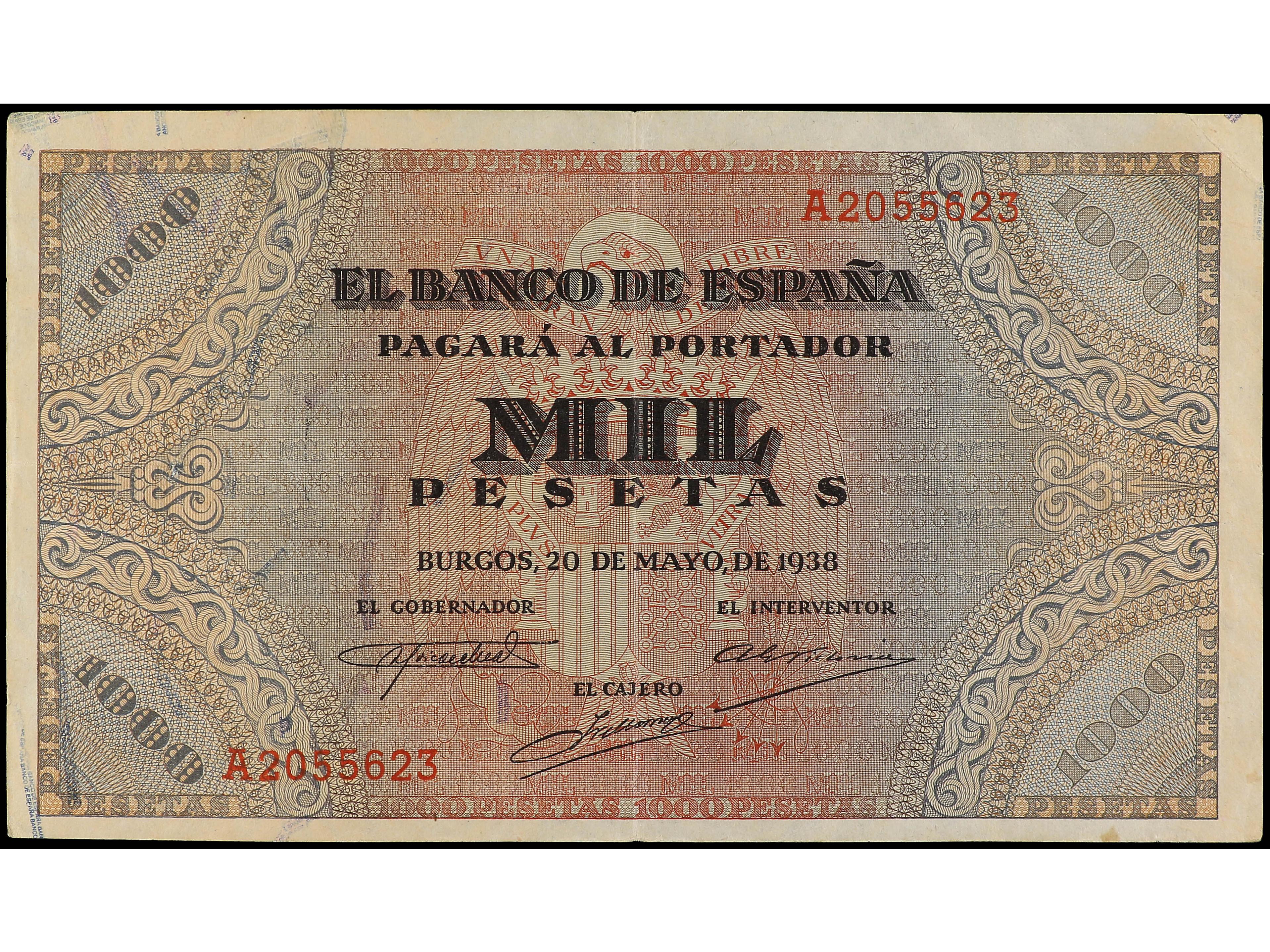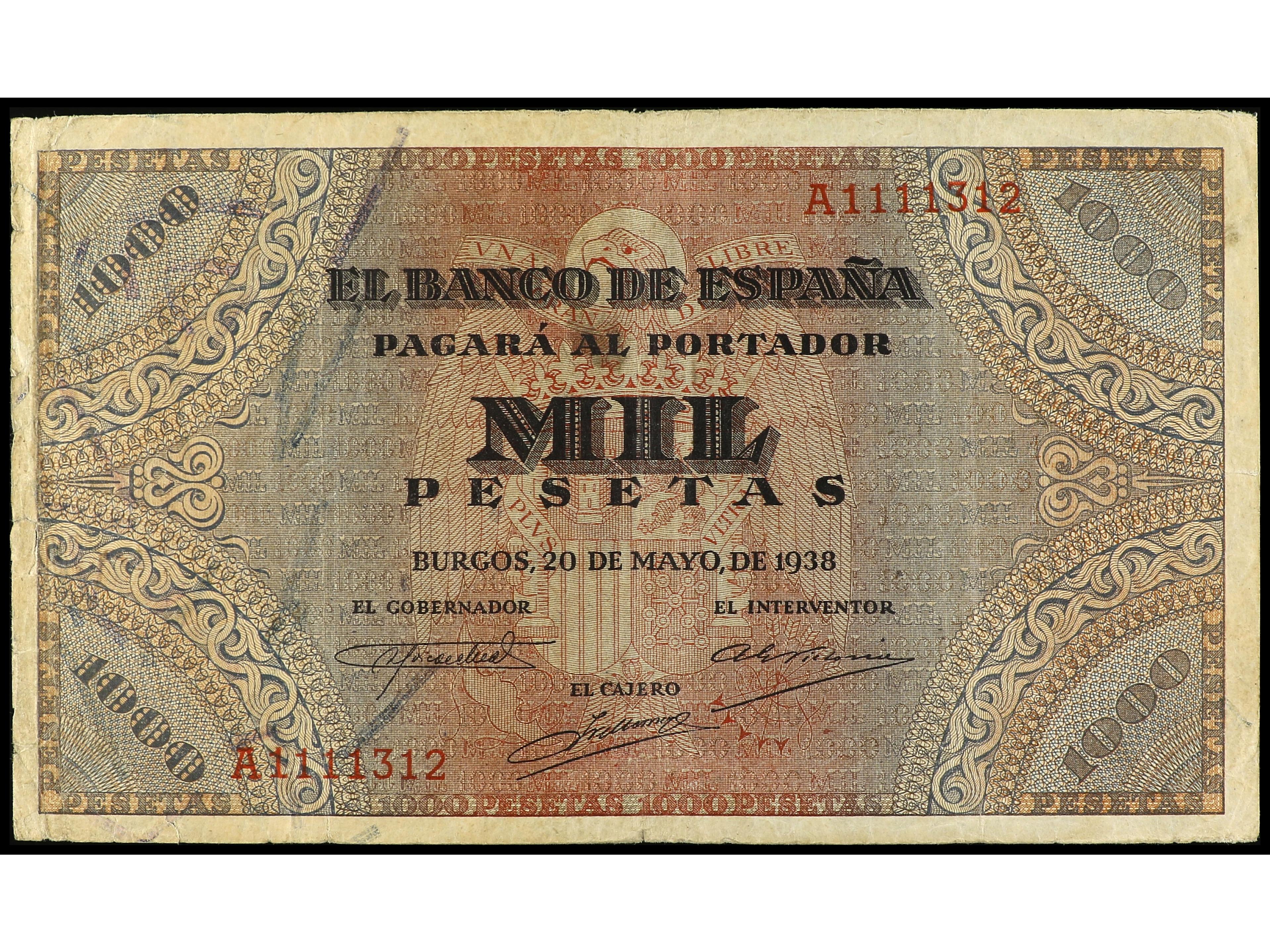1.000 Pesetas. 20 Mayo 1938. Defensa del Púlpito de San Agustín. (Roturas). Ed-434. MBC. (Image1) (Image2)