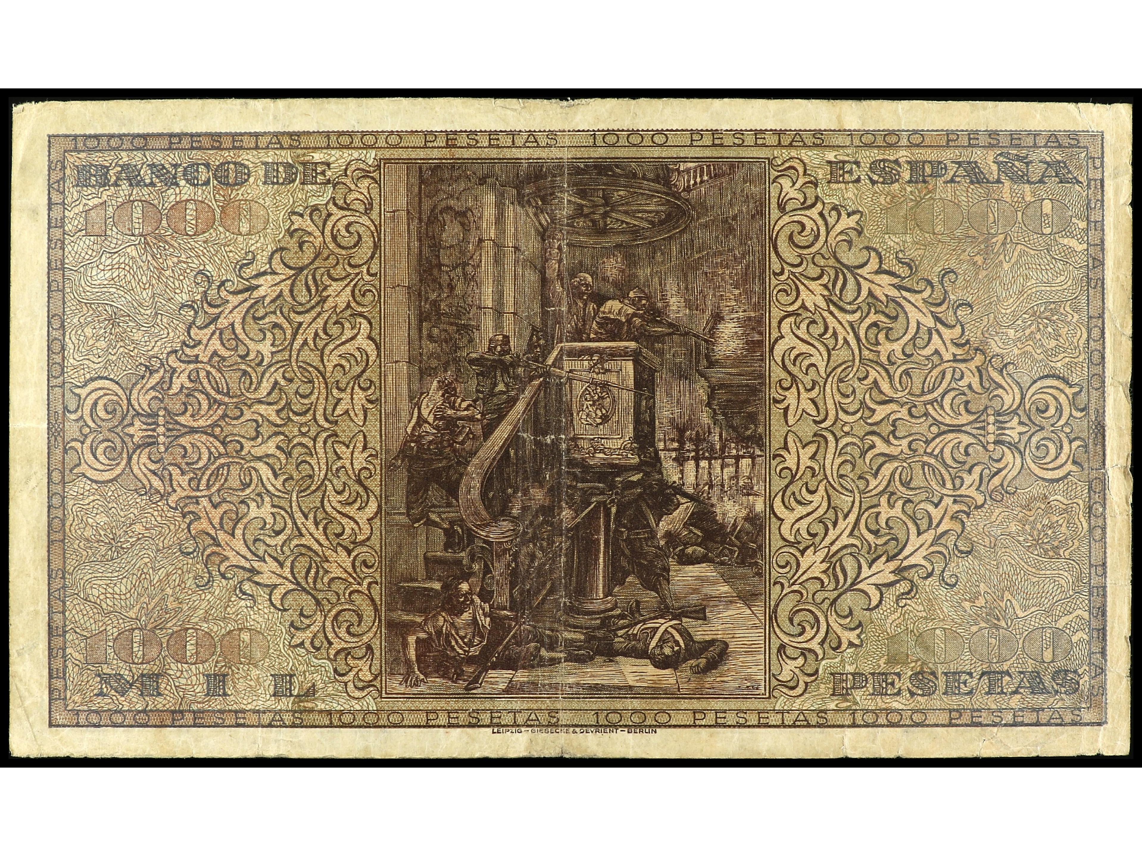 1.000 Pesetas. 20 Mayo 1938. Defensa del púlpito de San Agustín. Ed-434. MBC+. (Image1) (Image2)