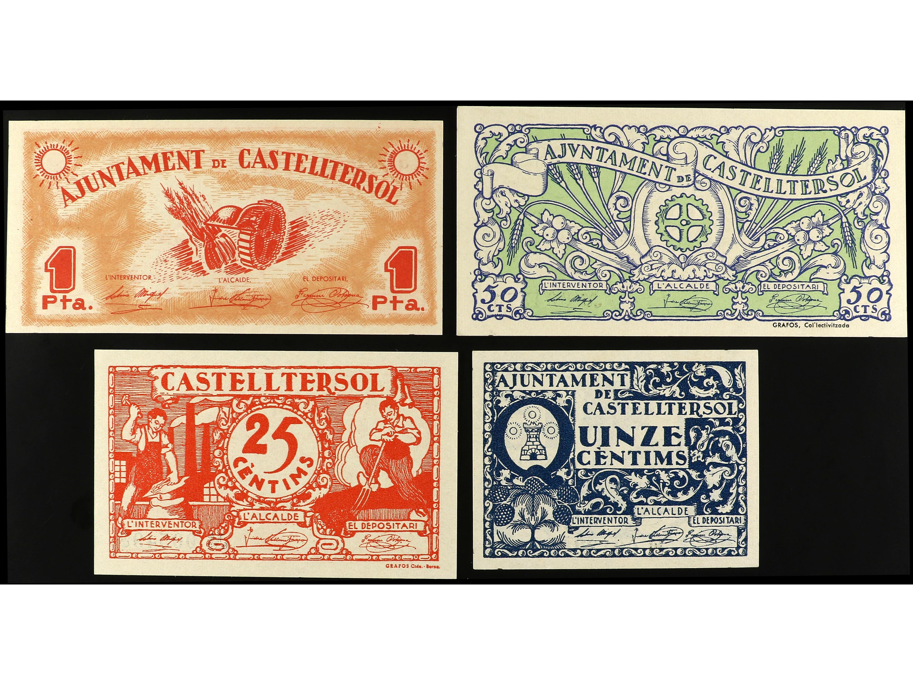 Lote 4 billetes 15, 25, 50 Cèntims y 1 Pesseta. Aj. de CASTELLTERSOL. AT-767/770. EBC+. (Image1)