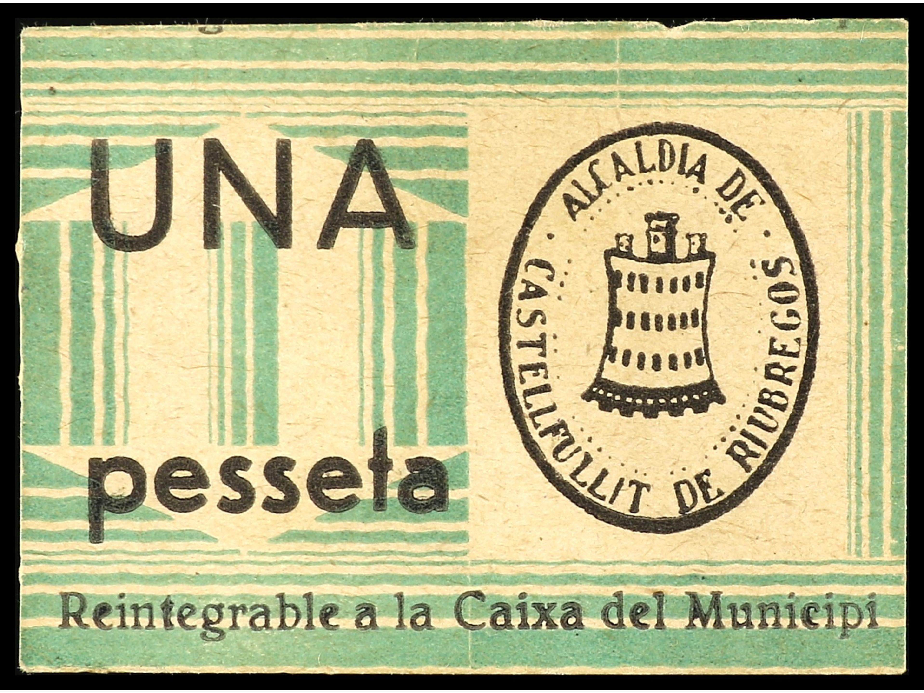 1 Pesseta. CASTELLFULLIT DE RIUBREGÓS. Cartón. AT-728. EBC. (Image1) (Image2)