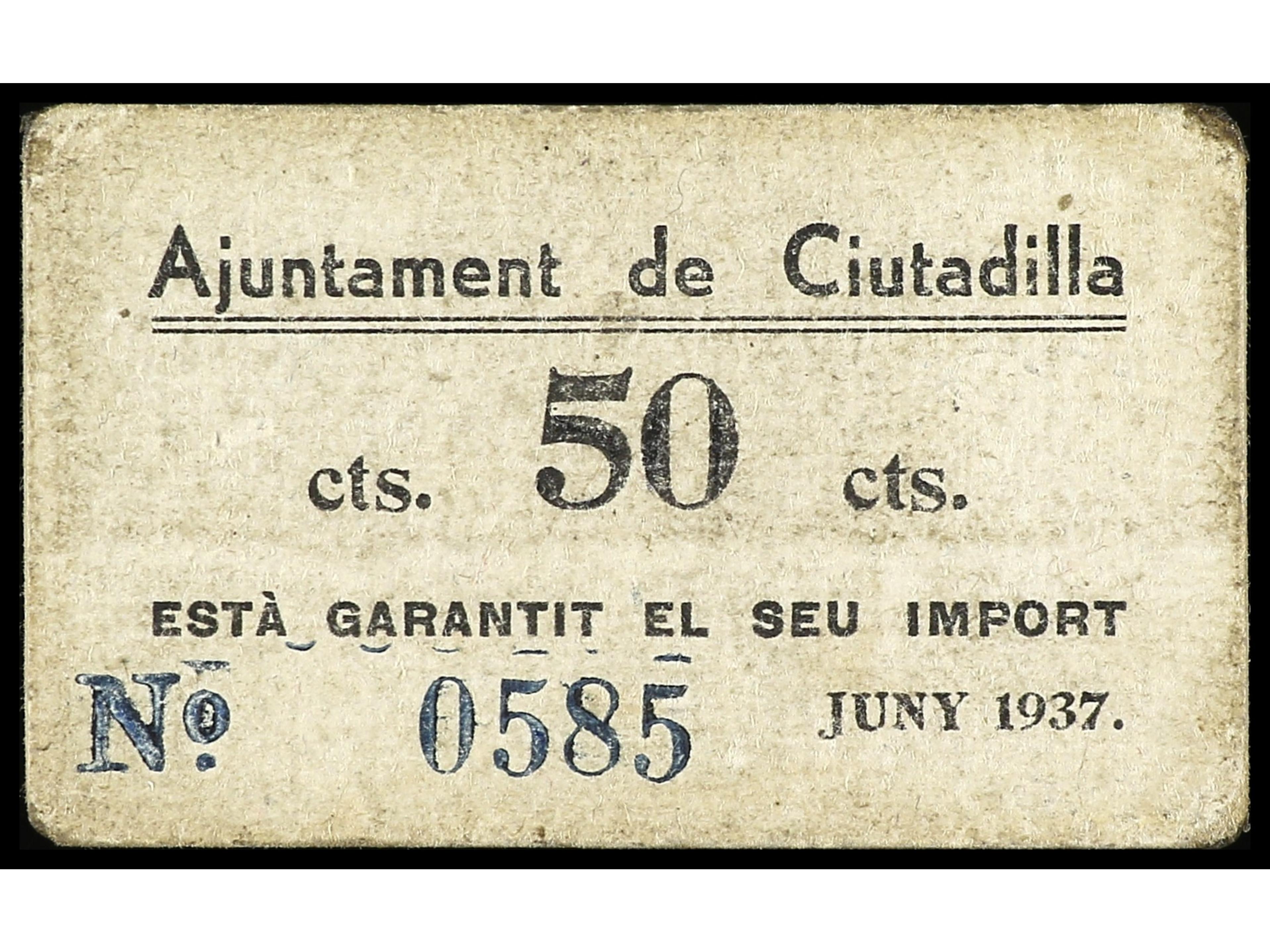 50 Cèntims. Juny 1937. Aj. de CIUTADILLA. Cartón. RARO. AT-832. MBC+. (Image1) (Image2)