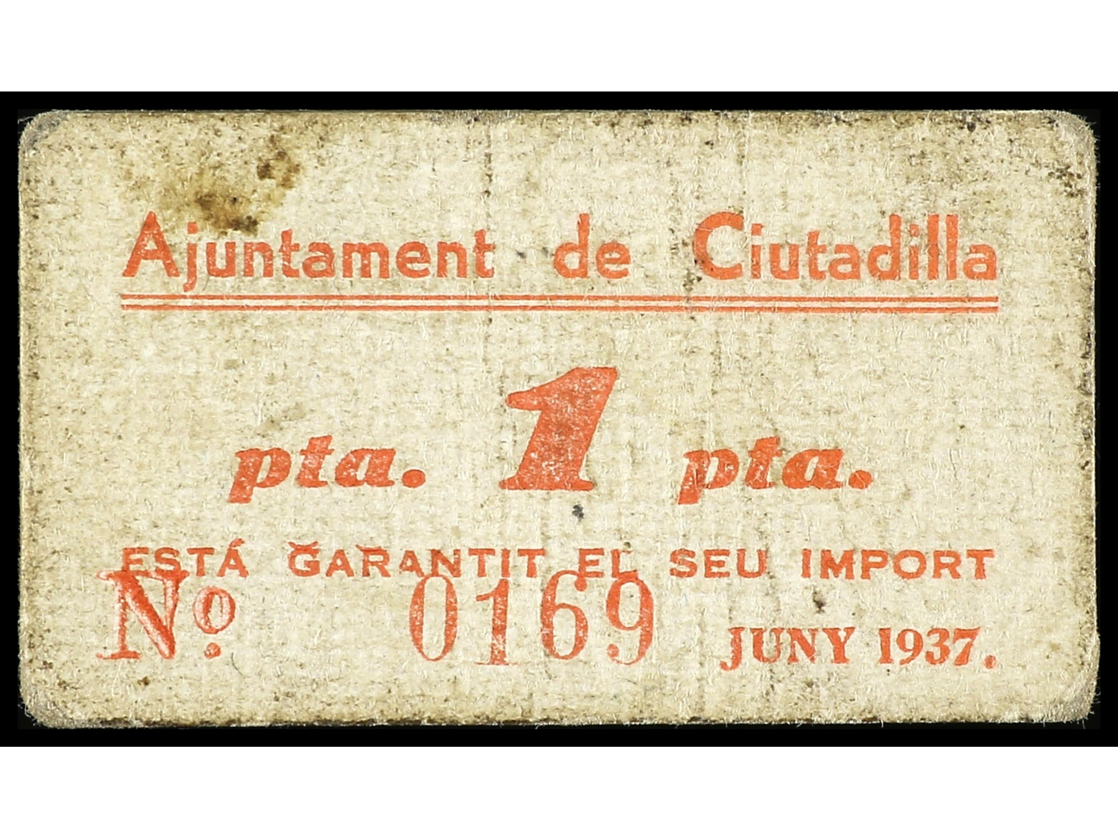 1 Pesseta. Juny 1937. Aj. de CIUTADILLA. Cartón. MUY RARO. AT-831. MBC+. (Image1) (Image2)