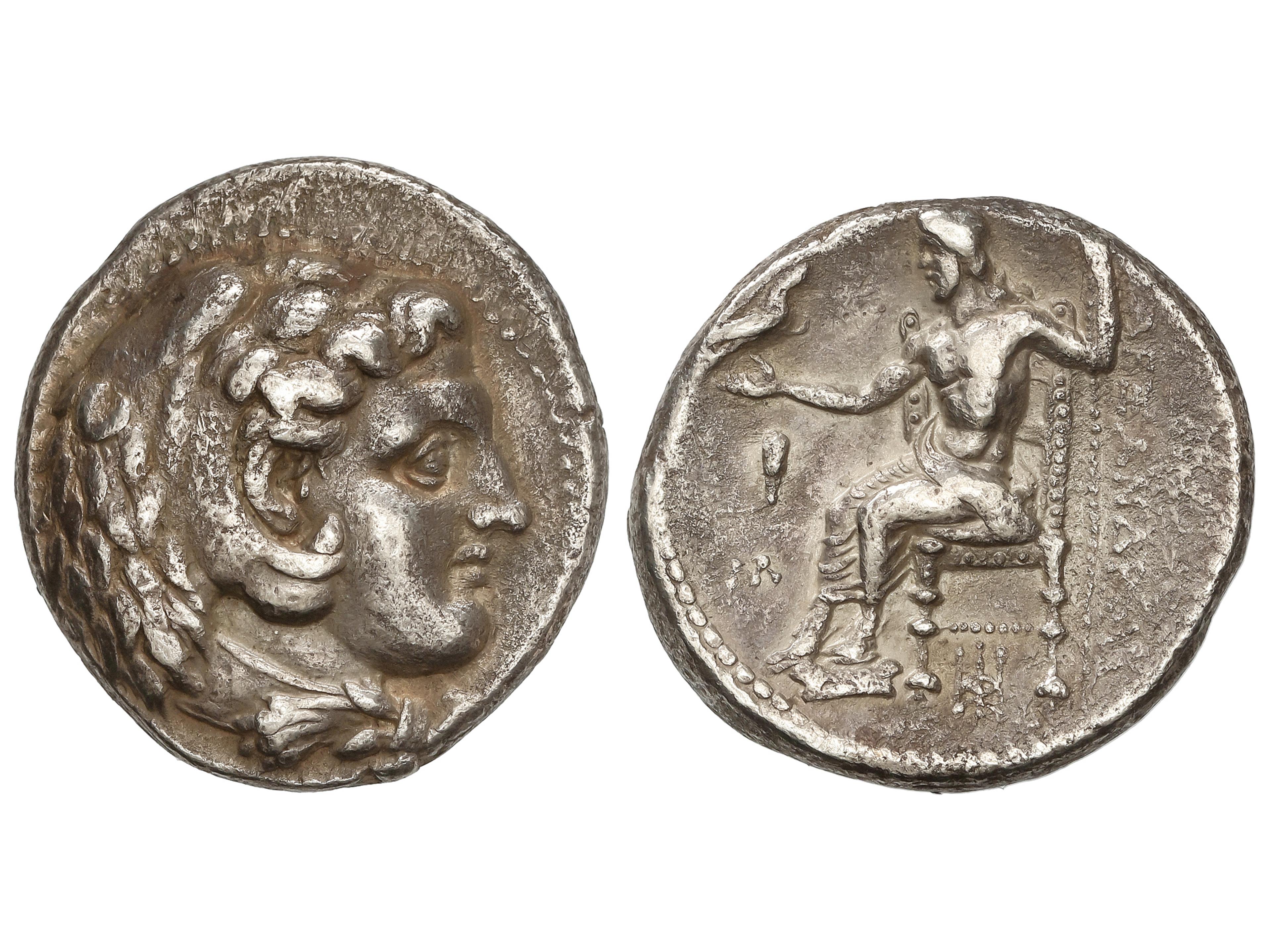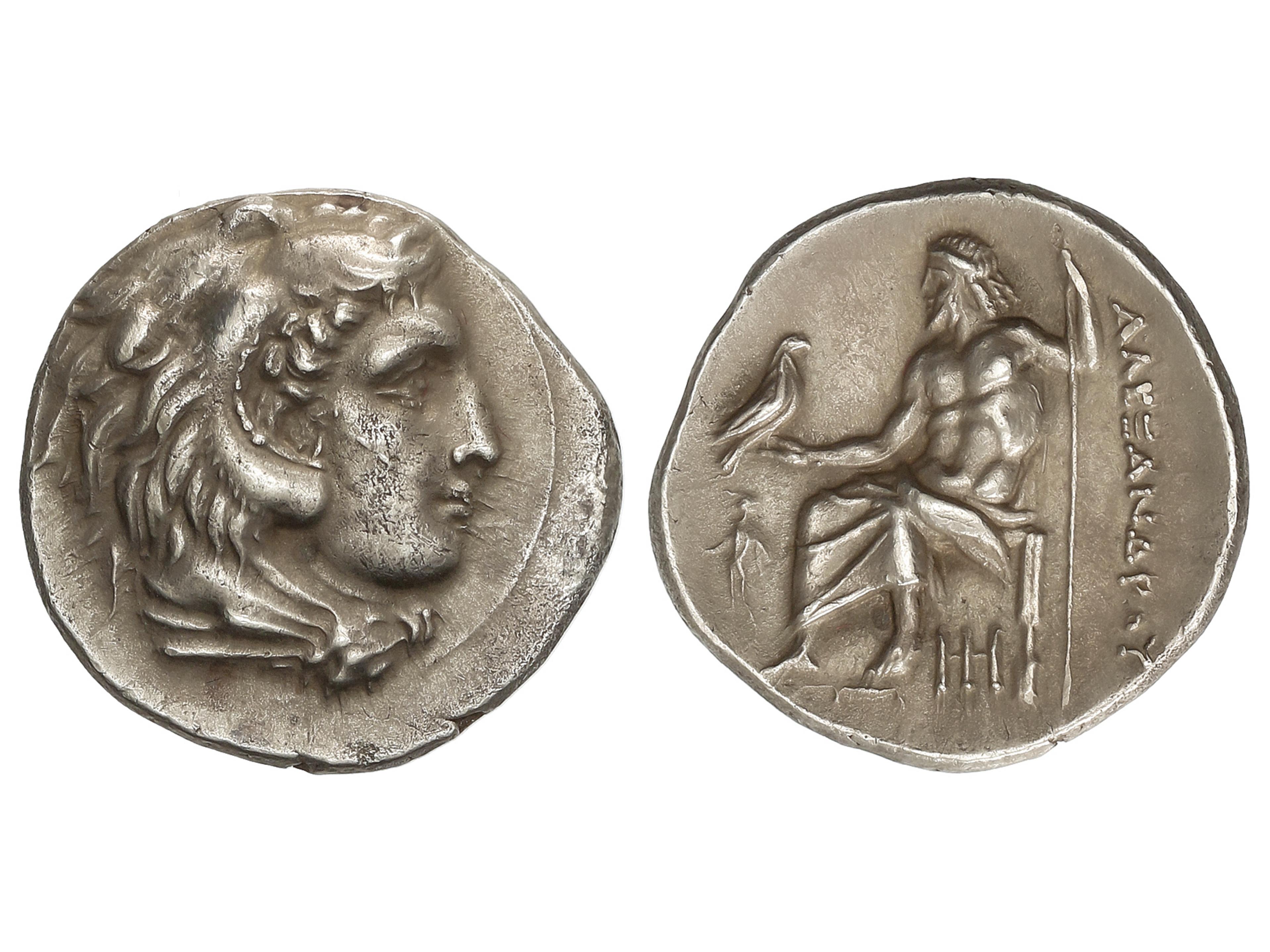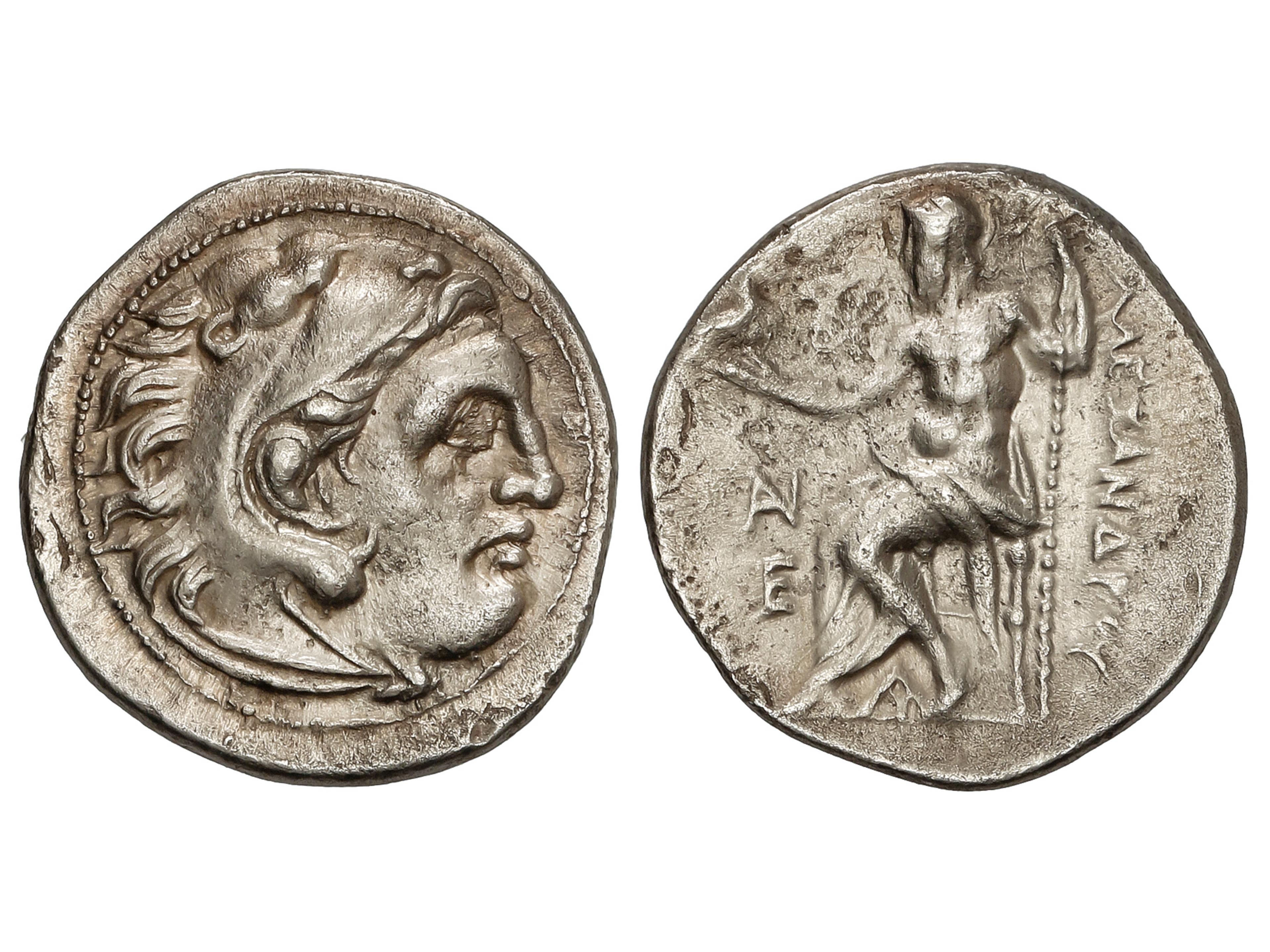 11 imageDracma. 336-323 a.C. ALEJANDRO MAGNO. MAGNESIA AD MAEANDRUM. Anv.: Cabeza de Hércules a derecha con tocado de piel de león. Rev.: Zeus entronizado a izquierda, delante monograma y E, debajo monograma. 4,06 grs. AR. Bonito anverso. Price-1996. EBC-/MBC+. (Image1)