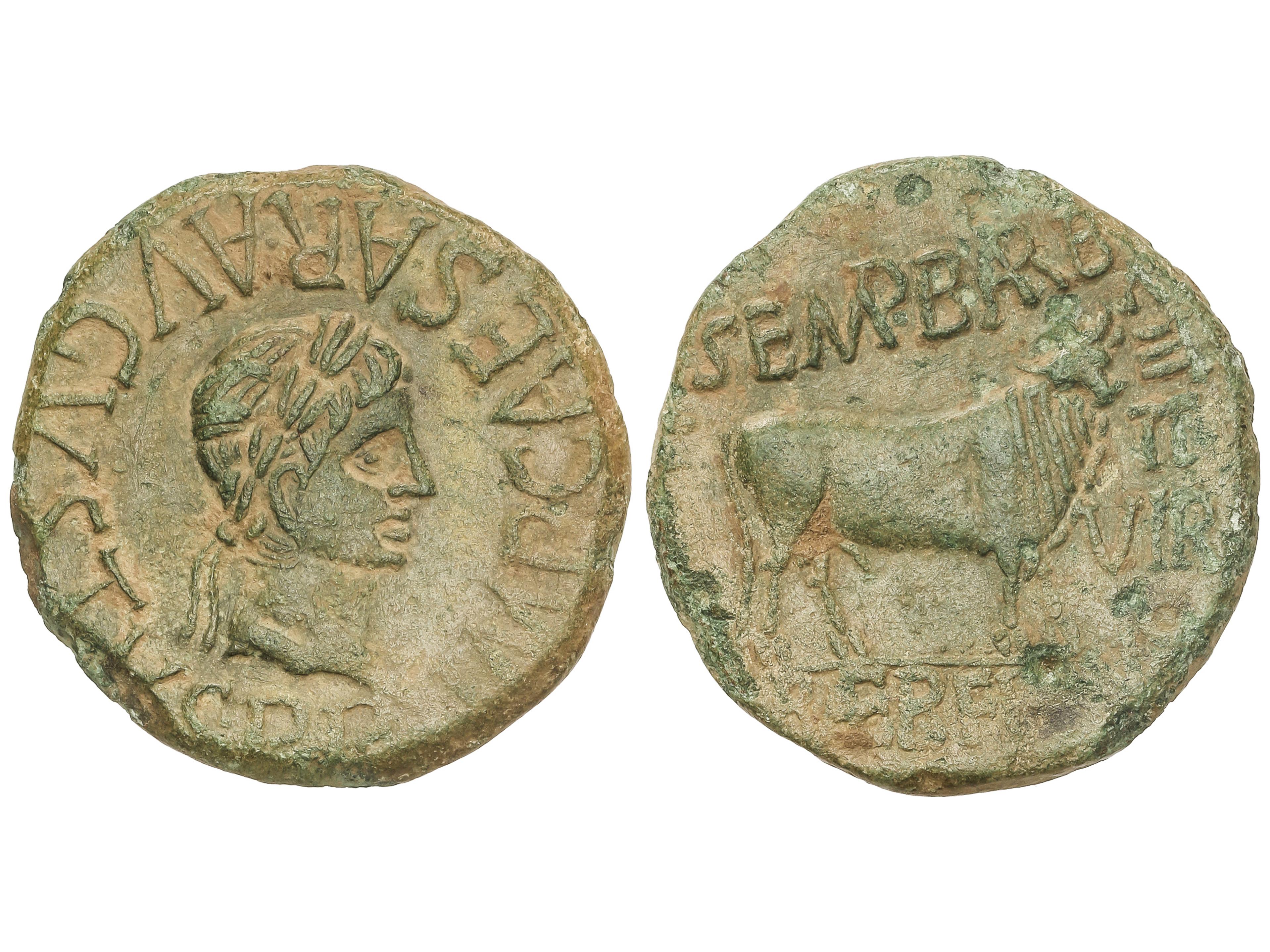 18 imageAs. 27-14 d.C. ÉPOCA DE AUGUSTO. CALAGURRIS (CALAHORRA, La Rioja). Anv.: IMP. CAESAR AVGVSTVS P. P. Cabeza laureada a derecha. Rev.: C. SEMP. BARBA. Q. BAEB. FLAVO M. CAL. III VIR. Toro a derecha. 11,24 grs. AE. AB-424; ACIP-3127. MBC+. (Image1)