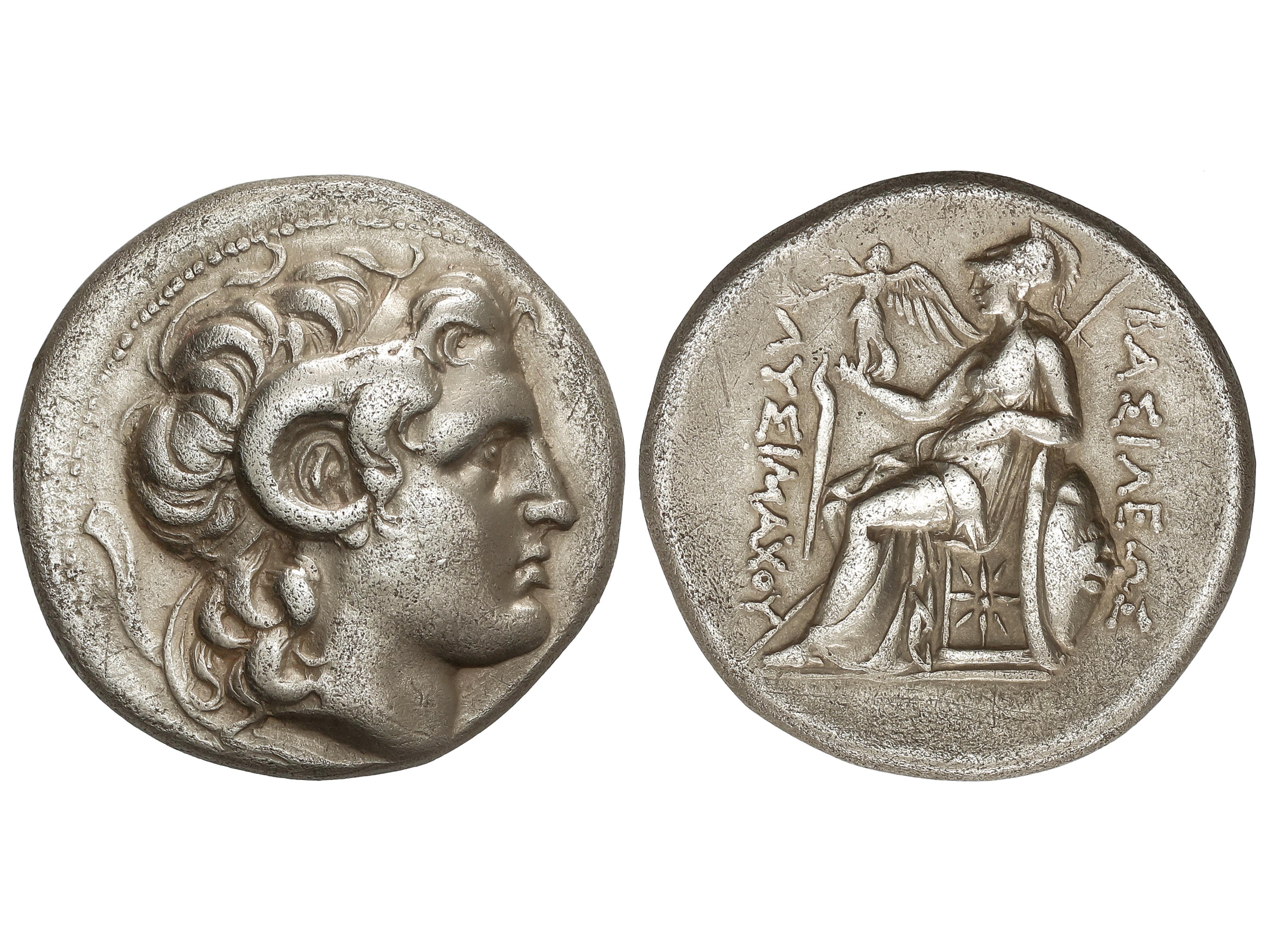 8 imageTetradracma. 297-281 a.C. LISÍMACO. LAMPSAKOS. TRACIA. Anv.: Cabeza diademada de Alejandro Magno con cuerno de Amón a derecha. Rev.: ΛΥΣΙΜΑXΟΥ ΒΑΣΙΔΕΩΣ monograma HP y antorcha. Atenea entronizada a izquierda, sosteniendo a Nike, debajo estrella. 16,60 grs. AR. (Oxidaciones). HGC 3-1750b; Thompson-43. MBC+/MBC. (Image1)
