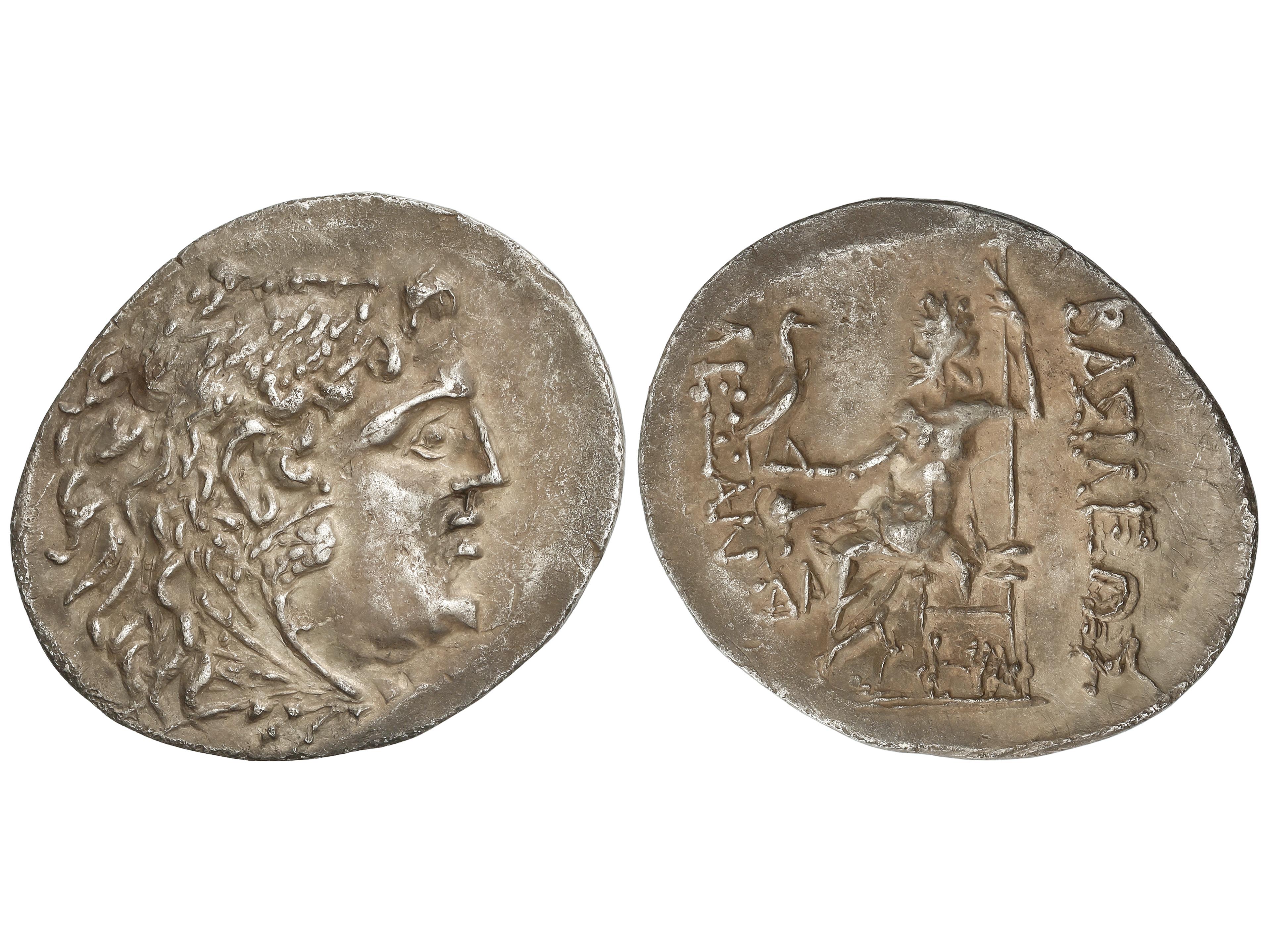 12 imageTetradracma. 325-323 a.C. ALEJANDRO III. Acuñada bajo Stamenes o Archon. REINO DE MACEDONIA. BABILONIA. Anv.: Cabeza de Hércules con piel de león a derecha. Rev.: Zeus entronizado a izquierda, debajo M, alrededor leyenda. 16,68 grs. AR. Price-3640. MBC+. (Image1)