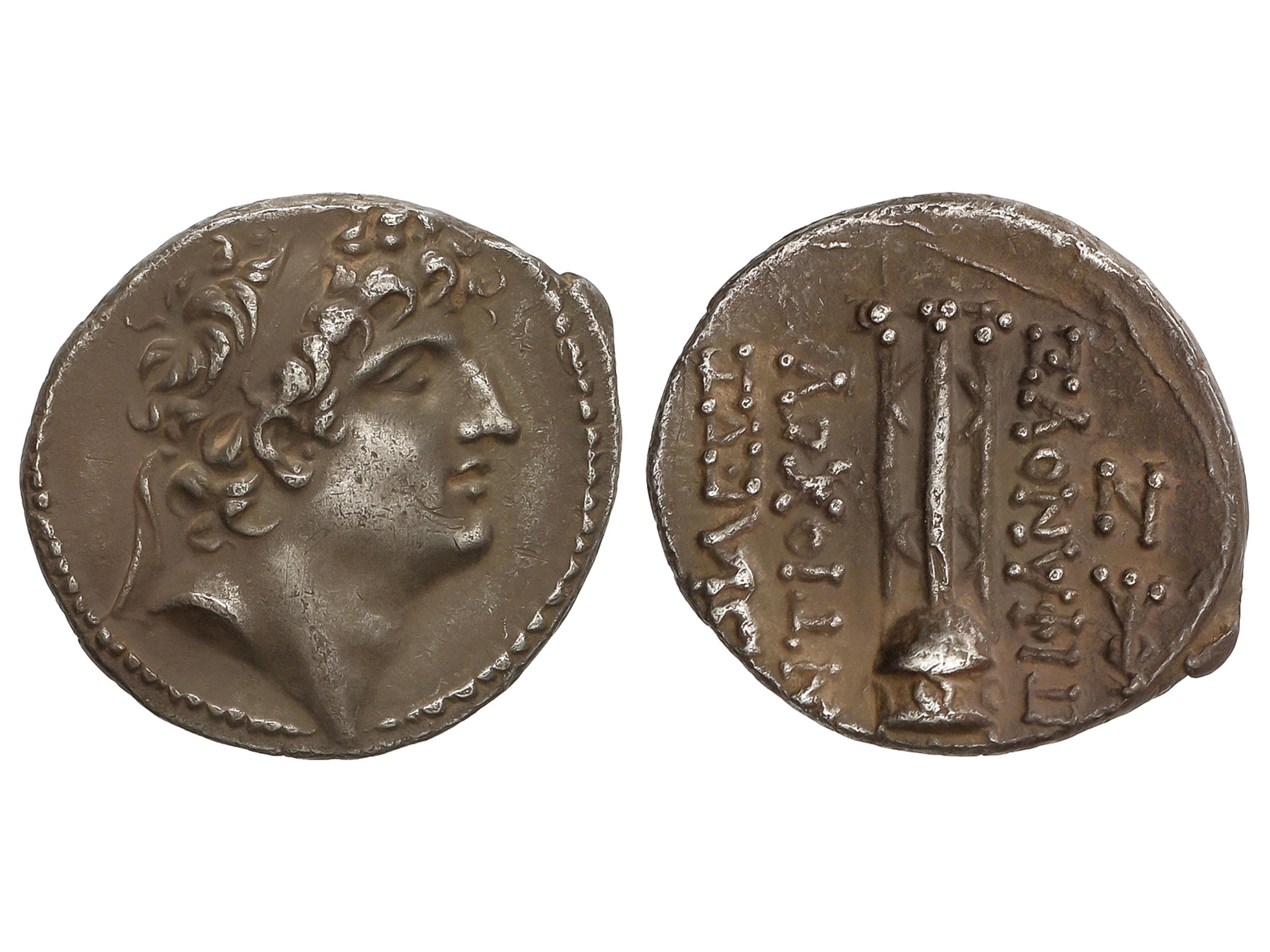 16 imageDracma. 121-96 a.C. ANTIOCO VIII. GRYPUS. ANTIOQUIA. Anv.: Cabeza diademada a derecha. Rev.: Trípode, alrededor leyenda. 3,91 grs. AR. Pátina. Se-7149. EBC-/MBC+. (Image1)