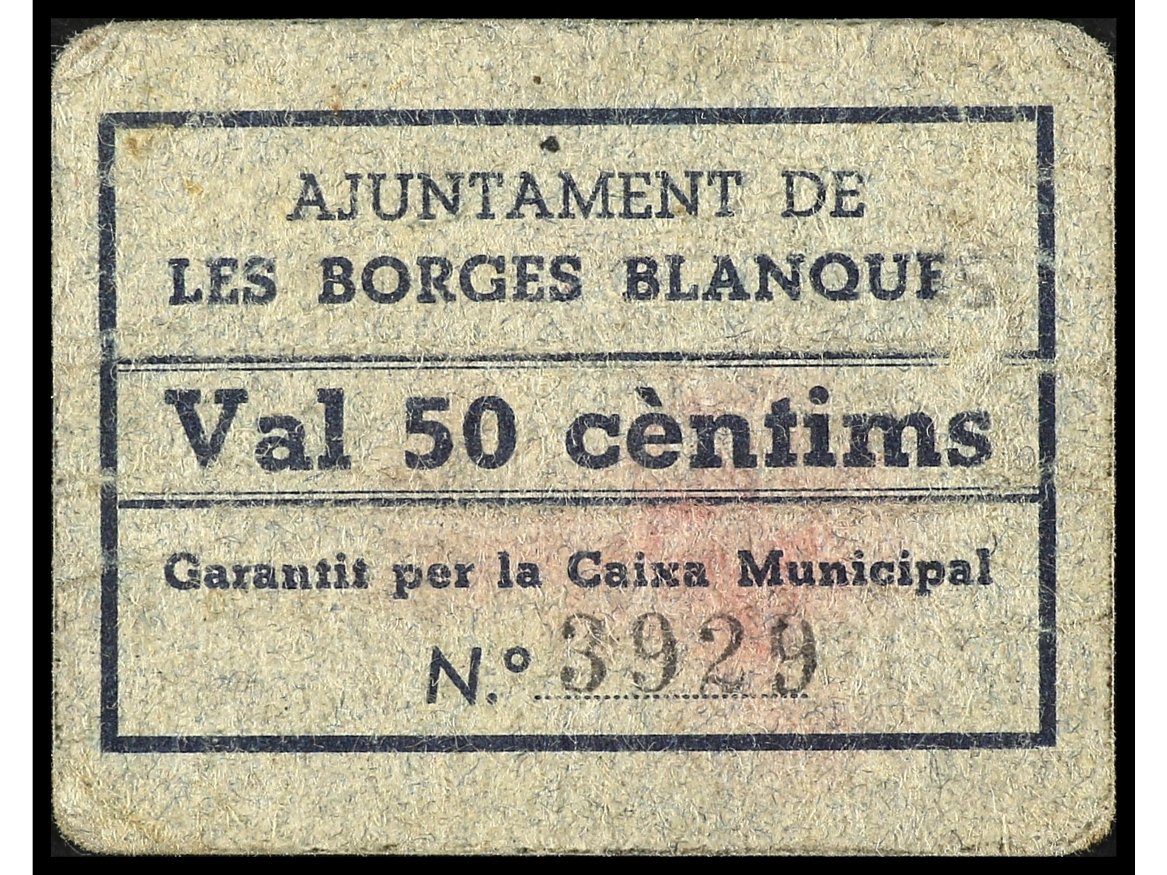 50 Cèntims. Aj. de LES BORGES BLANQUES. Cartón. (Manchita en anverso). AT-493. EBC-. (Image1) (Image2)