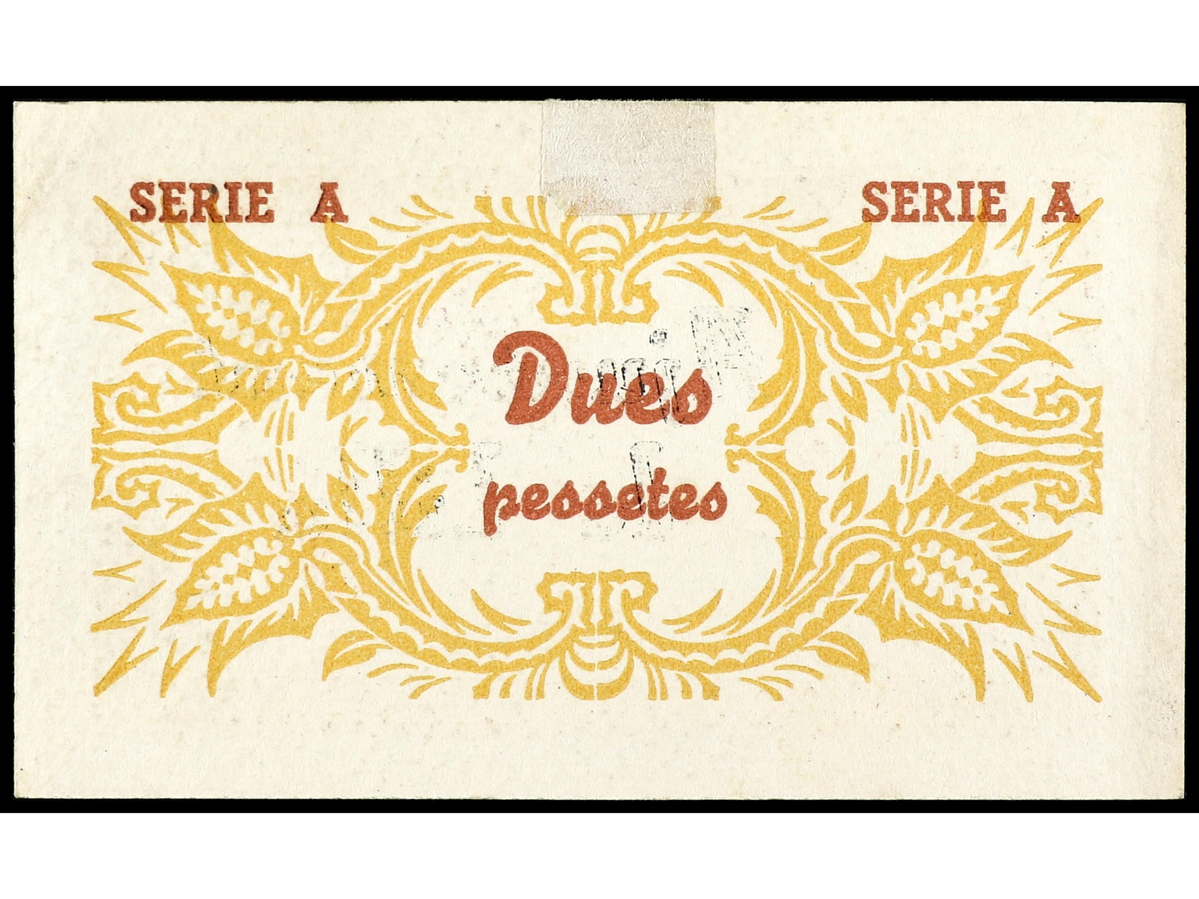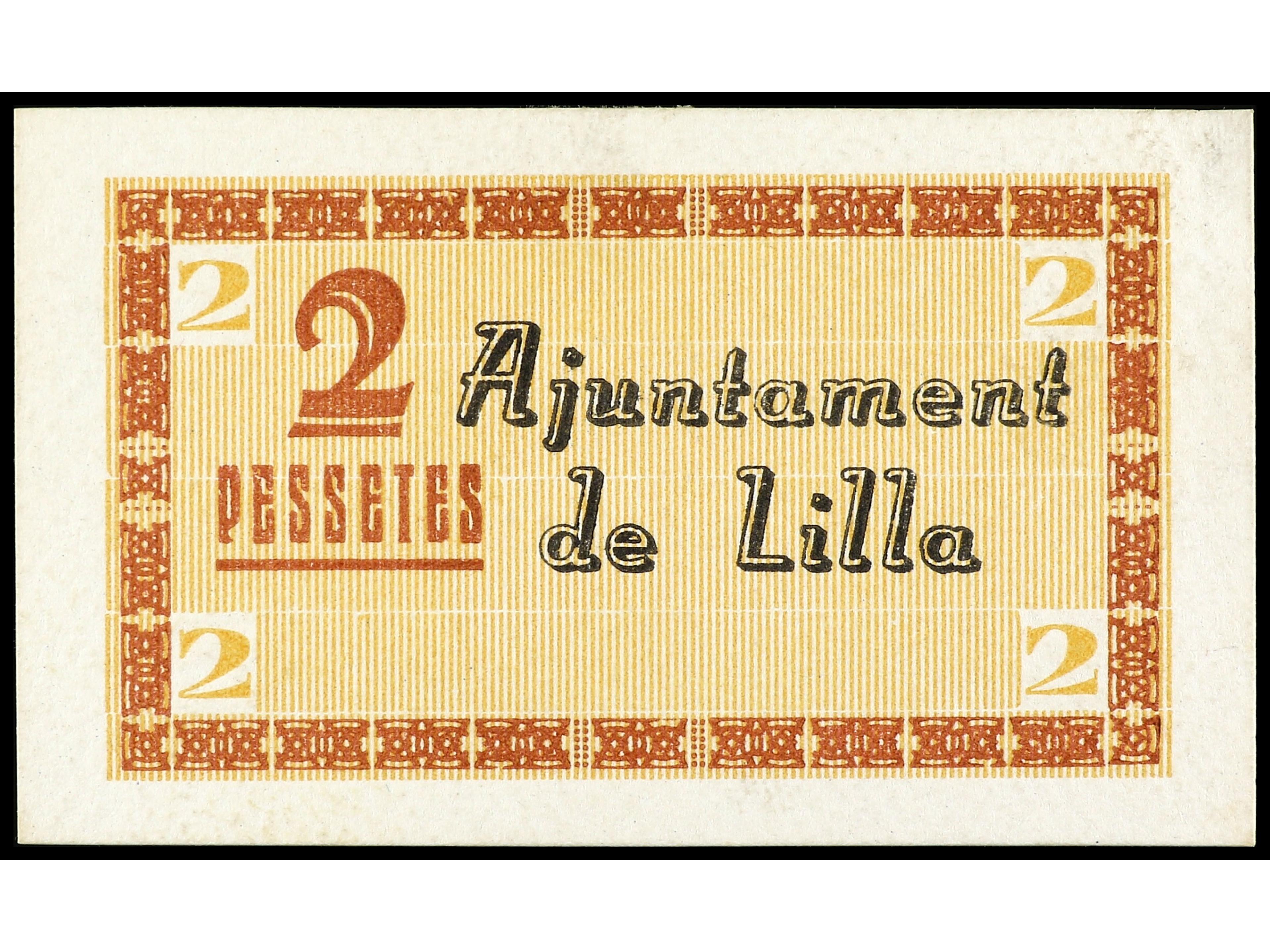 2 Pessetes. Aj. de LILLA. (Adhesivo en reverso). AT-1303a. EBC-. (Image1) (Image2)