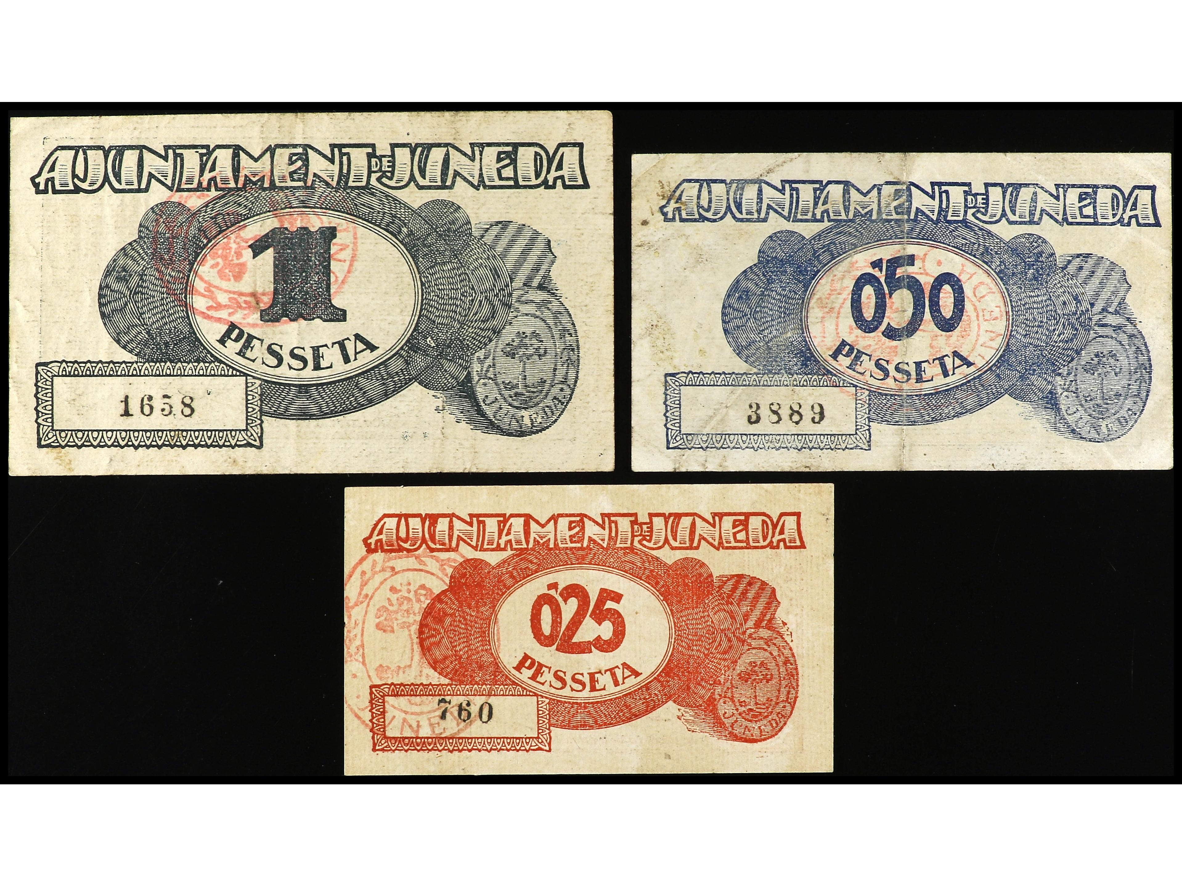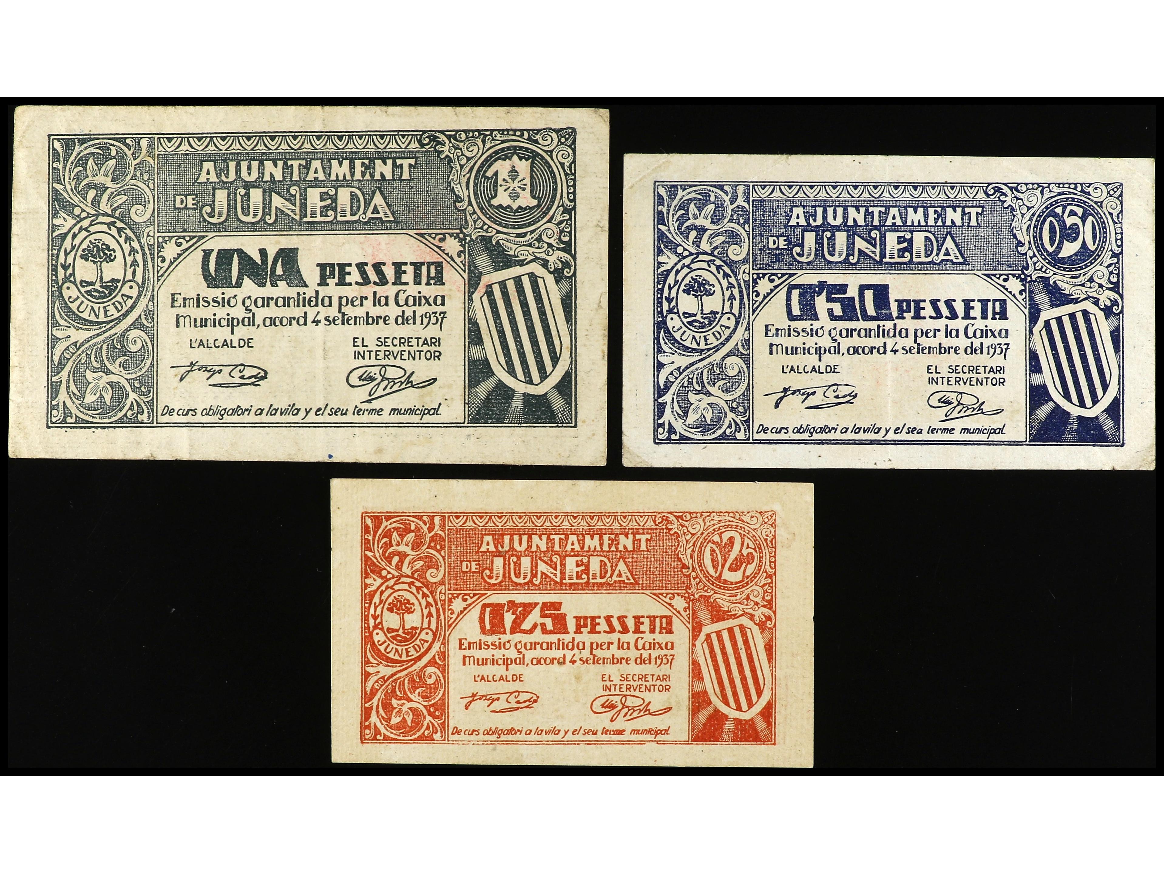 Lote 3 billetes 0,25, 0,50 y 1 Pesseta. 4 Setembre 1937. Aj. de JUNEDA. AT-1293, 1294, 1295. MBC a EBC-. (Image1) (Image2)