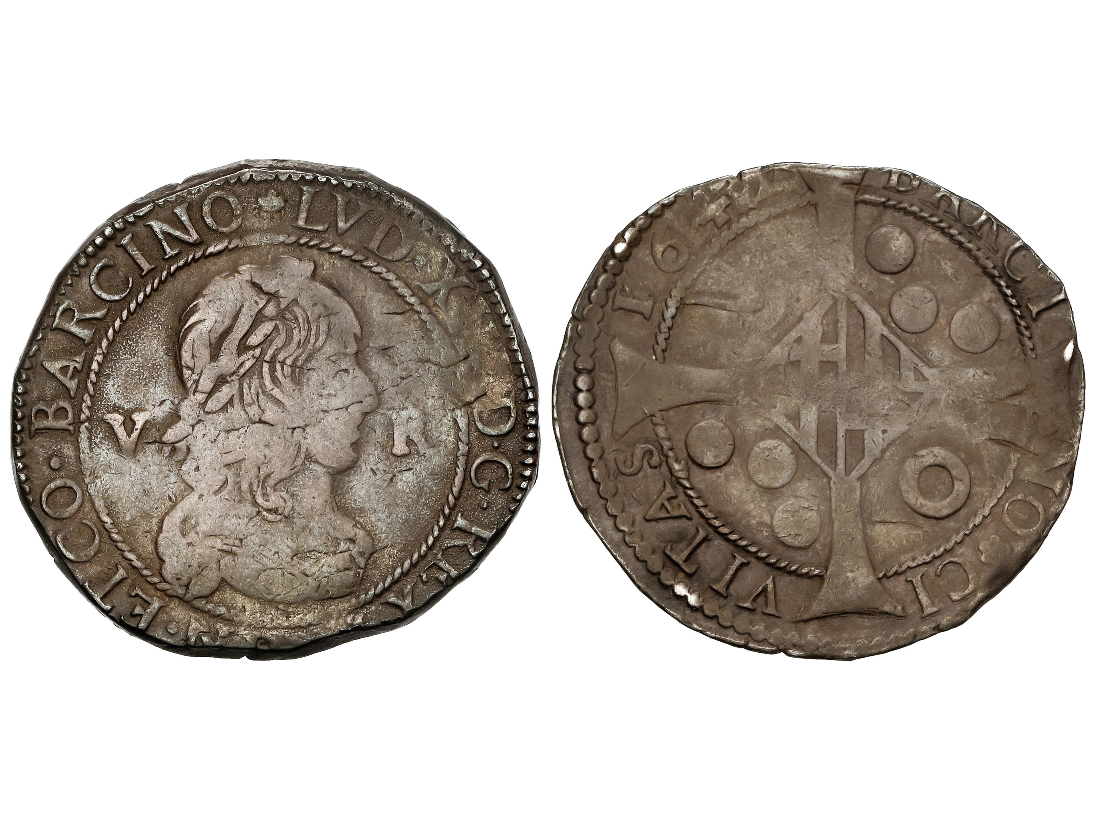 215 image5 Rals. 164(2). LLUÍS XIII. BARCELONA. 11,84 grs. AR. Pátina. AC-69: CruGS-222. MBC-. (Image1)