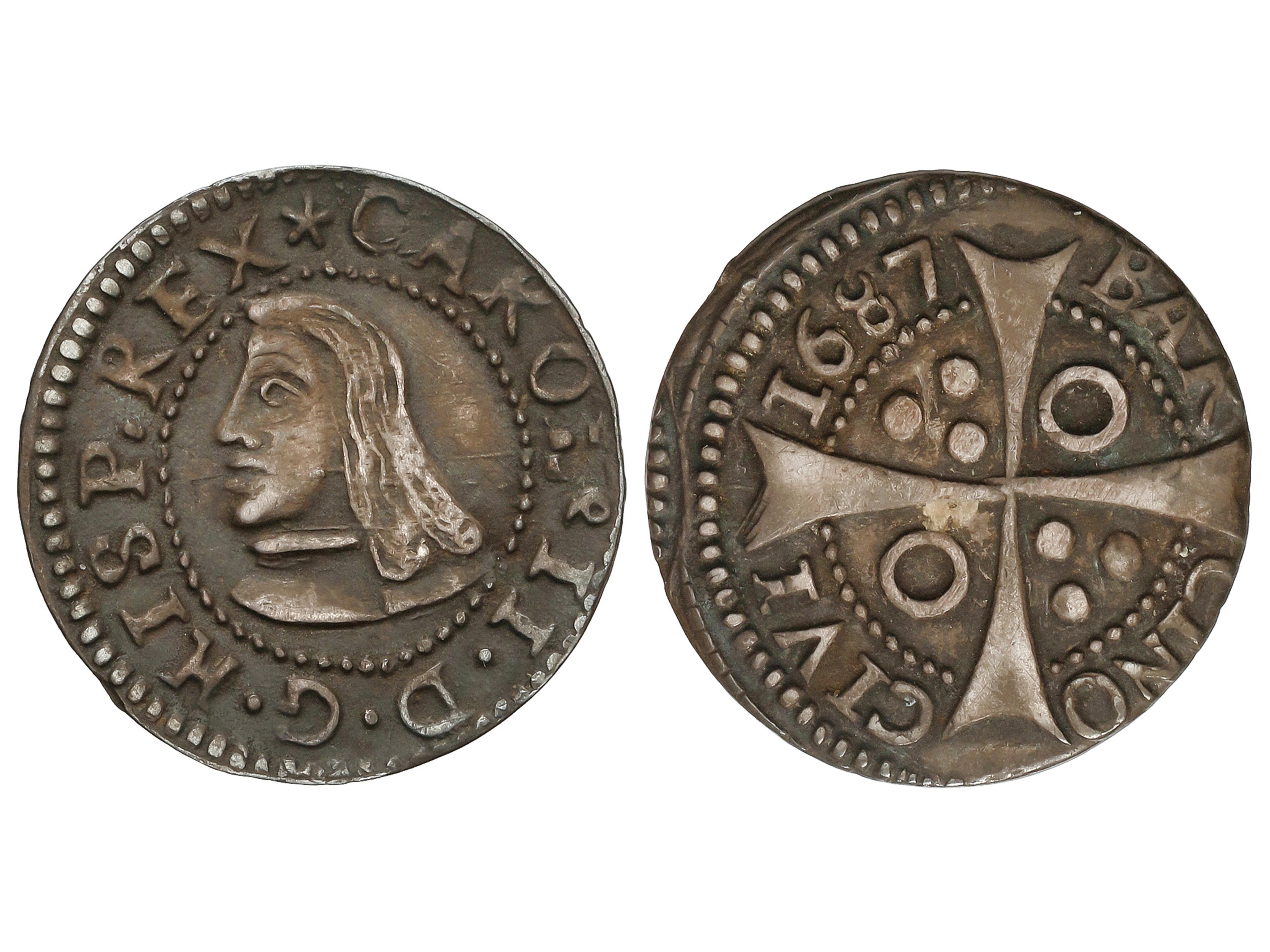 218 imageCroat. 1687. BARCELONA. 2,57 grs. AR. Pátina. AC-210. MBC+. (Image1)