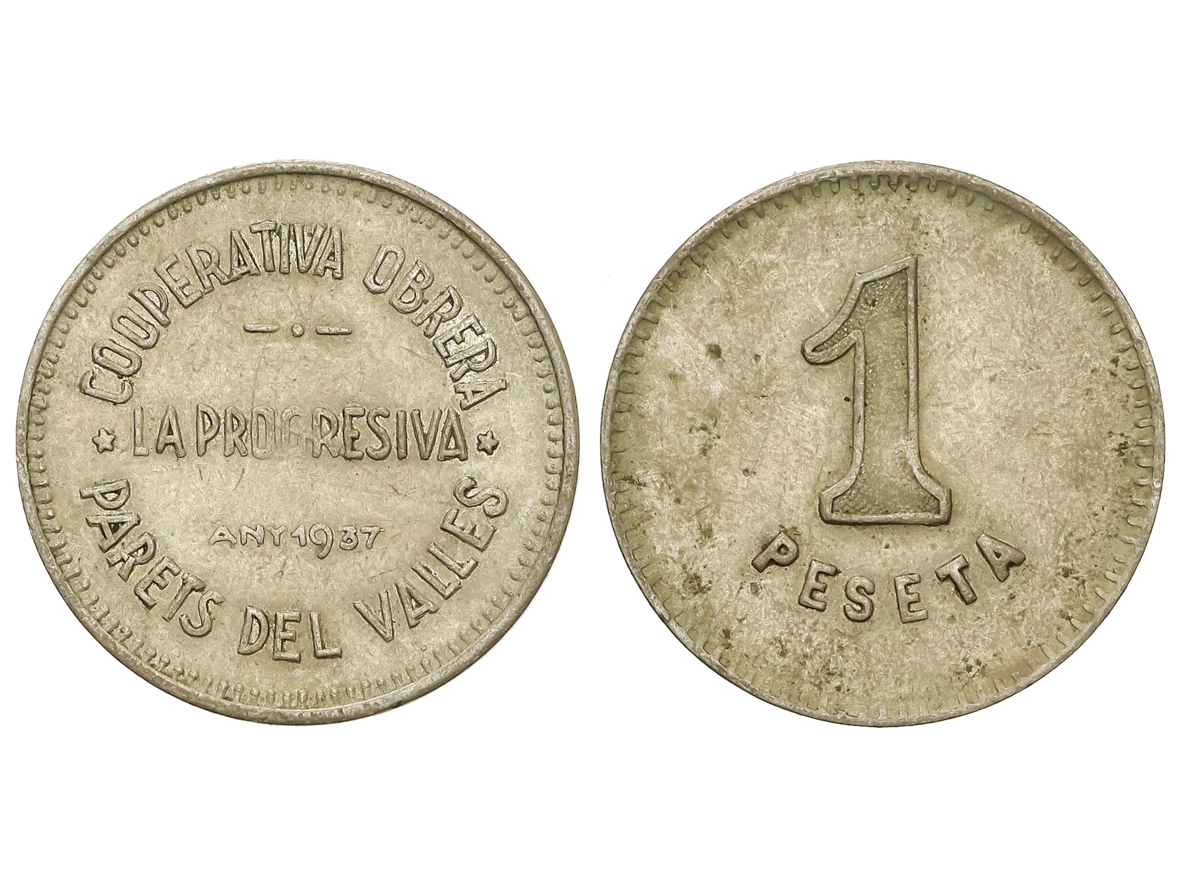 1 Peseta. 1937. PARETS DEL VALLÈS. COOPERATIVA OBRERA LA PROGRESIVA. Ni. T-2058. EBC. (Image1)