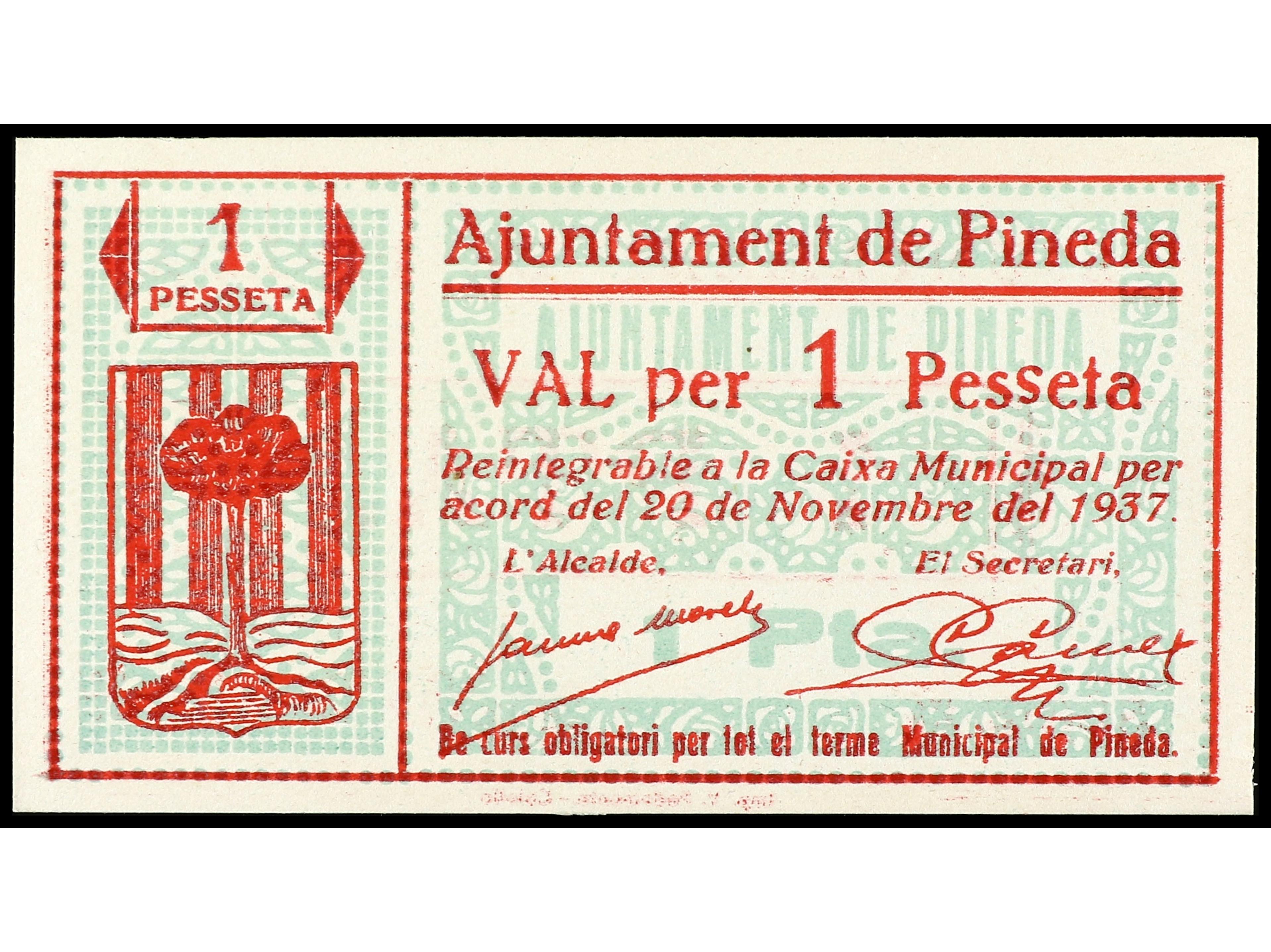 1 Pesseta. 20 Novembre 1937. Aj. de PINEDA. AT-1824b. EBC. (Image1) (Image2)