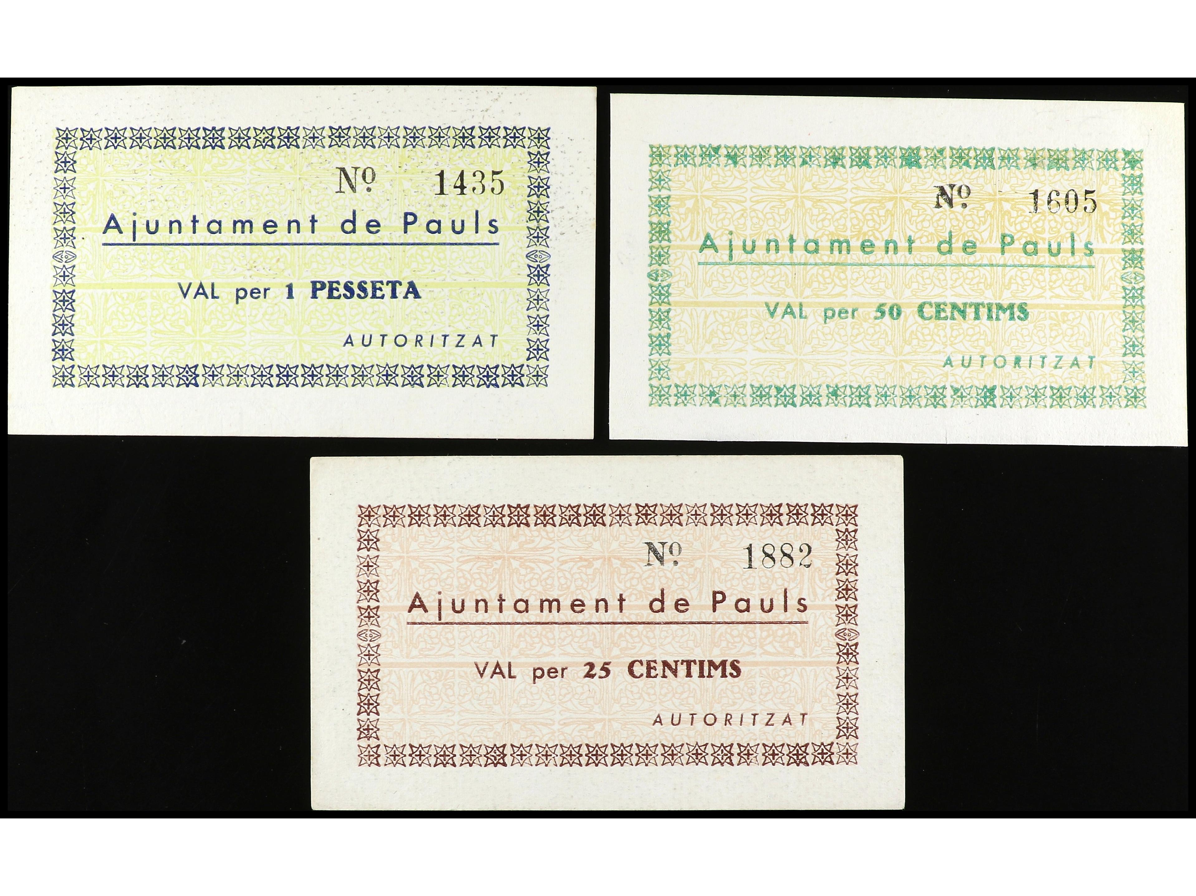 Lote 3 billetes 25, 50 Cèntims y 1 Pesseta. Aj. de PAÜLS. . AT-1793/1795. EBC- a EBC. (Image1) (Image2)