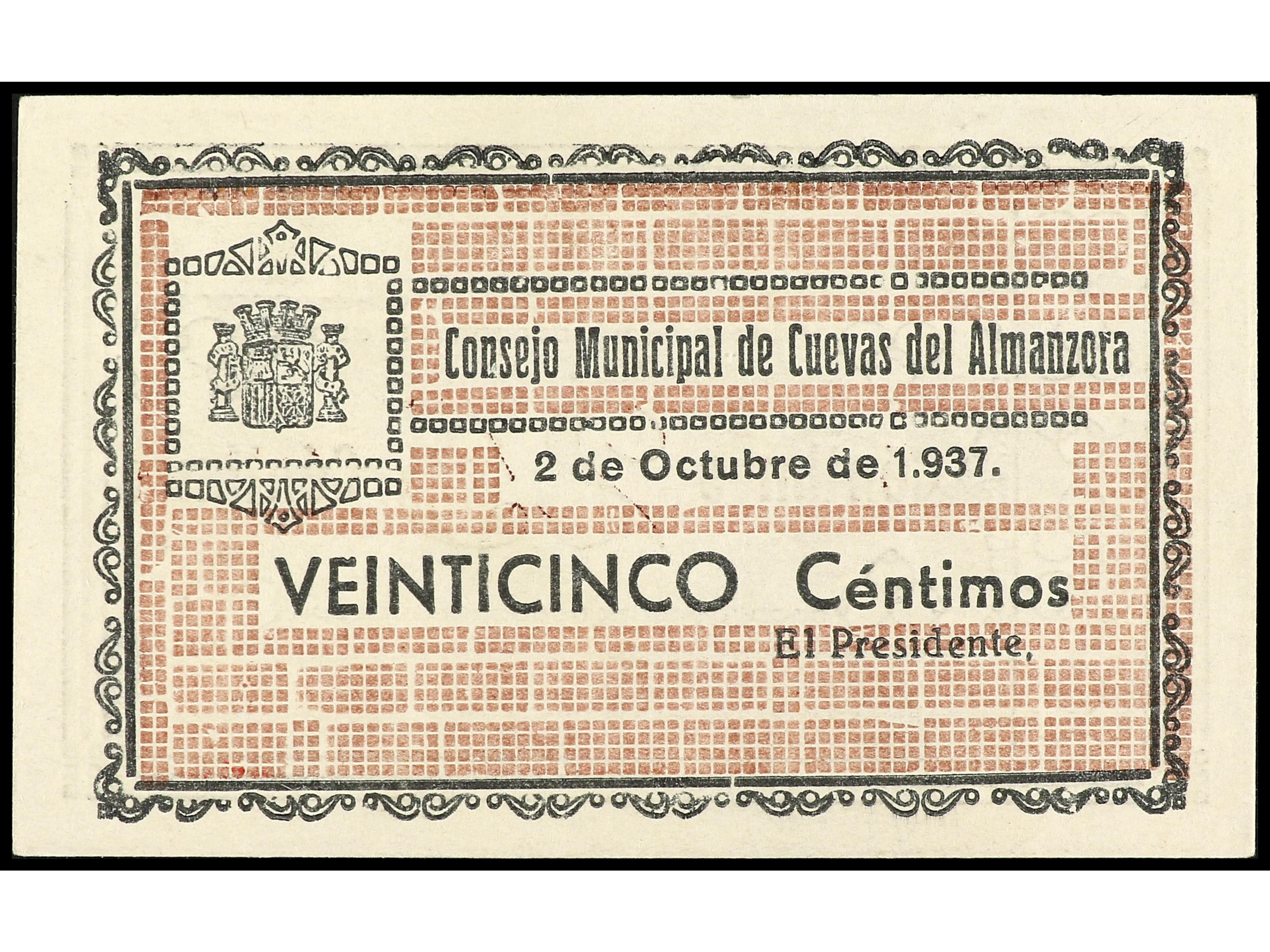 25 Céntimos. 2 Octubre 1937. C.M. de CUEVAS DEL ALMANZORA (Almería). RGH-2140. EBC+. (Image1) (Image2)