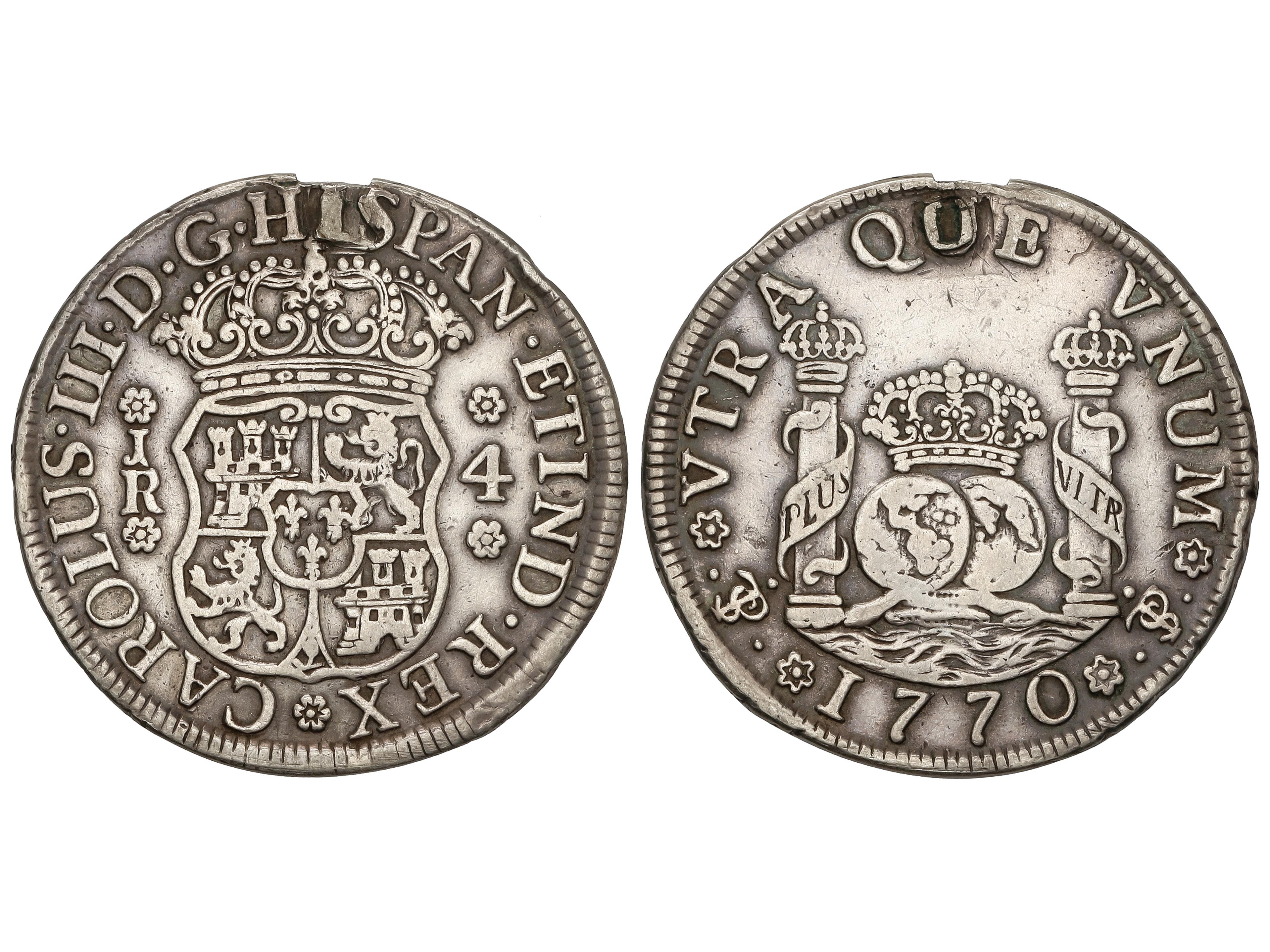 238 image4 Reales. 1770. POTOSÍ. J. R. 13,11 grs. Columnario. (Perforación tapada a las 12h). AC-928. MBC. (Image1)